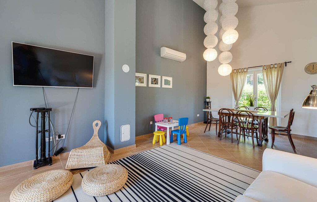 Rummene i jeres feriehus er enkelt indrettet, harmoniske og indbyder straks til velvære. Det moderne køkken byder på plads til fælles madlavning eller små kaffepauser i løbet af dagen. Få jer en hyggelig snak ved spisebordet helt ud på de sene aftentimer, eller slap af med en filmaften på sofaen.