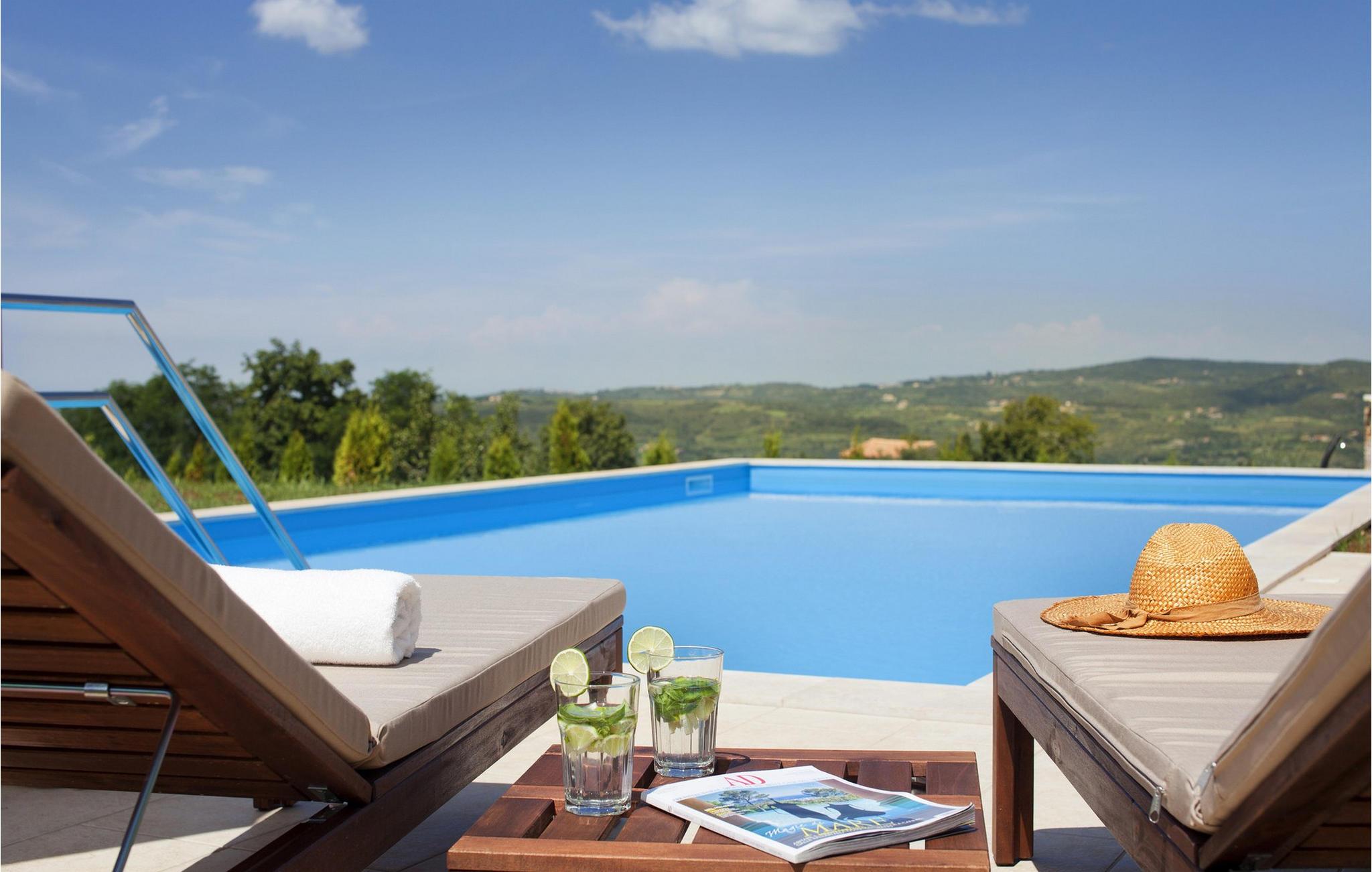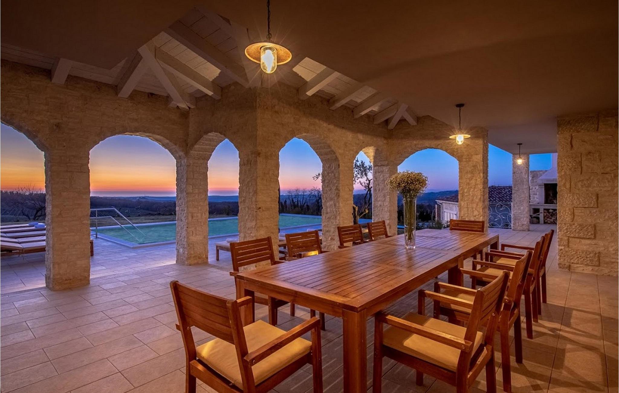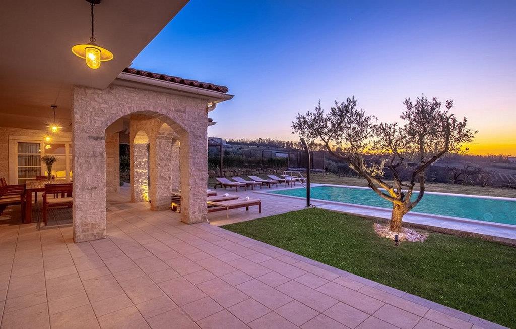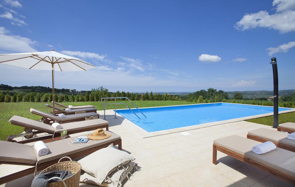 Den smukke Villa Sara ligger i den lille istriske by Bajkini, som byder på et rigt udbud af istrisk vin, intakt natur og en gæstfri befolkning. I det nærliggende Vižinada, 3 km væk, finder du et udvalg af kvalitetsrestauranter, markeder og barer. Den fuldt klimatiserede Villa Sara med centralvarme og et boligareal på 400 m² har 4 luftige og komfortable soveværelser med dobbeltsenge, 4 smukke badeværelser og et separat toilet. Den rummelige stue er direkte forbundet med stenterrassen med udsigt over de nærliggende vinmarker og det krystalklare hav. Køkkenet er moderne og fuldt udstyret med en komfortabel spiseplads til alle gæster. Den smukke 1200m2 have har en udsøgt stor pool (66m2), hvilket gør villaen velegnet til både tidlig og sen sæson ferie. For at tilføje stedets luksuriøse stemning er der et udendørs spabad, hvor gæsterne kan slappe af i fuldstændig fred. Både indendørs og udendørs arealer er udstyret med gratis WiFi, så du kan surfe på internettet uhindret. Villa Sara tilbyder hele den luksuspakke, som enhver gæst helt sikkert vil nyde: smukt hav, fantastiske vinmarker, masser af sjov og en velfortjent ferie i fuldstændig privatliv. Større byer, Porec og Novigrad, ligger kun 10 minutter fra villaen. Denne særlige region er kendt for sine uberørte vinmarker og produktionen af vine i verdensklasse. Kun en kort gåtur fra villaen finder du den berømte Arman Winery, et besøg værd, samt flere topvingårde i umiddelbar nærhed. Kun 5 minutters kørsel væk ligger den smukke middelalderby Motovun, kendt for sin skønhed, rige gastronomiske og turistmæssige tilbud, samt filmfestivalen, der afholdes hver juli. Bemærk venligst, at denne ejendom kun accepterer ungdomsgrupper eller polterabender mod betaling af et refunderbart depositum. En ungdomsgruppe i denne ejendom består af personer under 30 år. Er I en ungdomsgruppe eller polterabend, vil I blive bedt om at betale depositum ved ankomst. Ethvert beløb, der kræves for at reparere eventuelle skader på boligen forårsaget af dig under dit ophold, vil blive trukket fra depositumet og derefter returneret til dig.