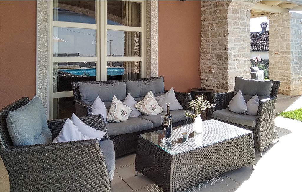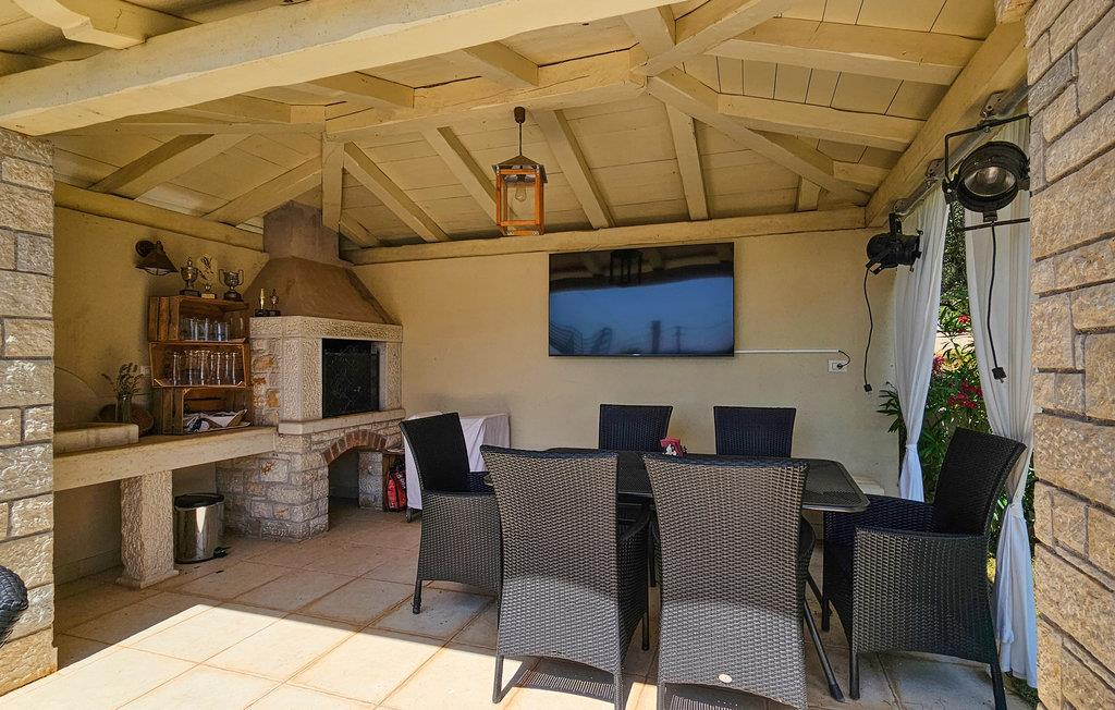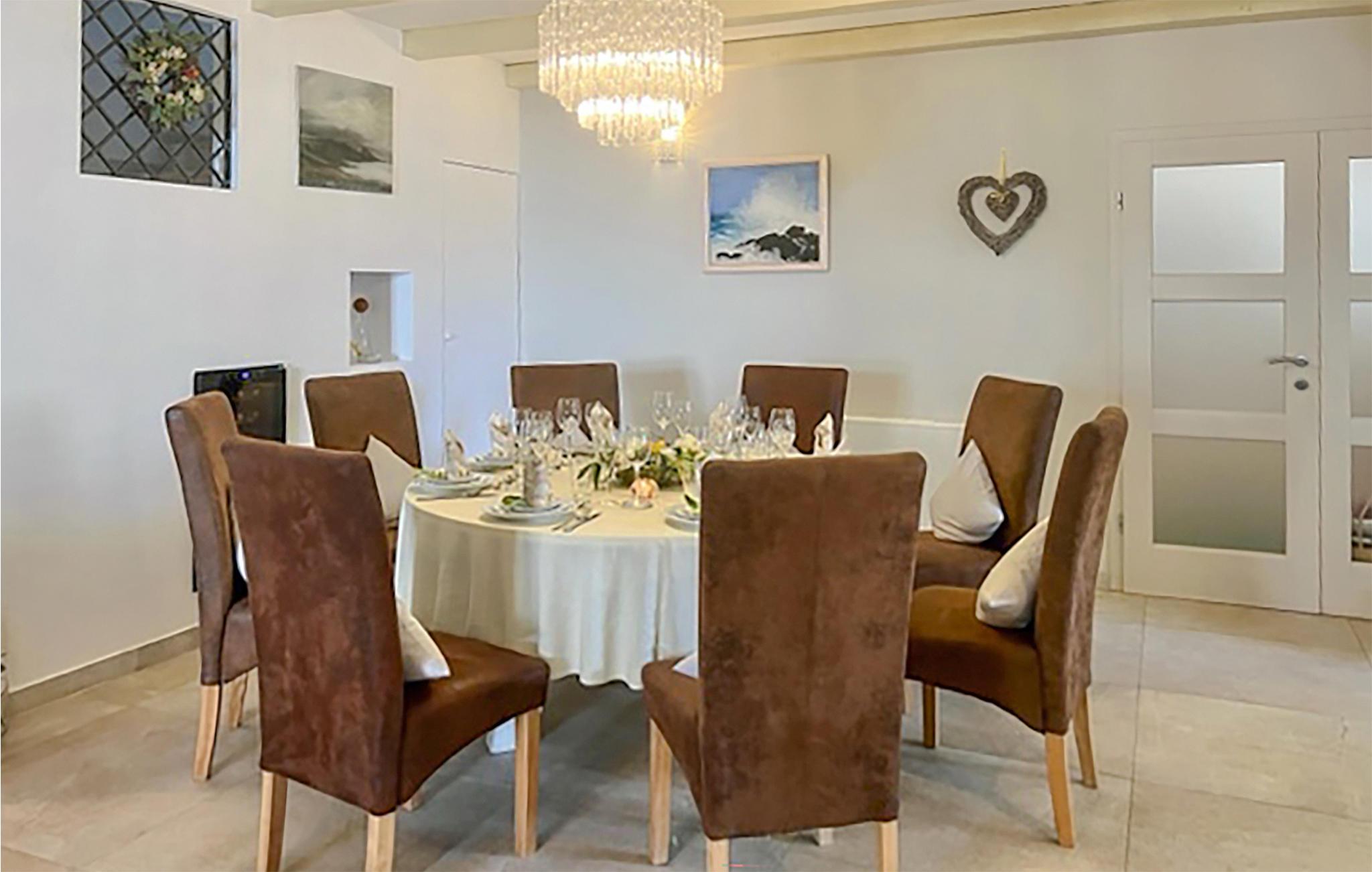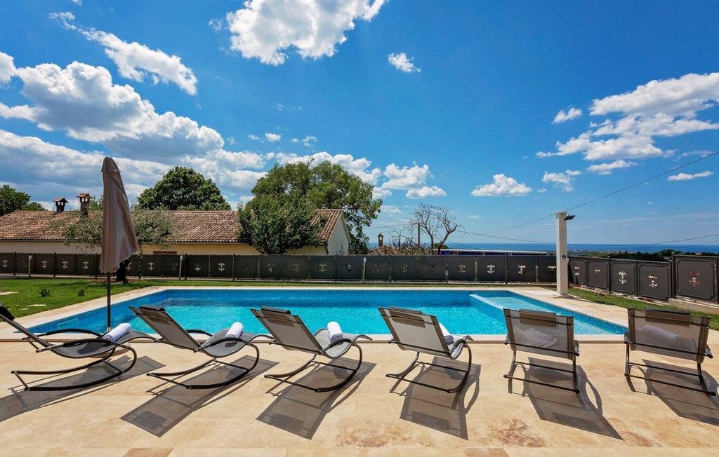 Den imponerende Villa Ginocchetti, bygget i 2018, ligger gemt væk i den istriske by Valentici, en del af Kaštelir kommune. Villaen er omgivet af smuk olivengrønt, hvilket gør din ferie ekstra afslappende. Du kan også slappe af på den stenede strand, som ligger kun 7 kilometer fra villaen. Inde i villaen er der et soveværelse i stueetagen og tre soveværelser på øverste etage, hvoraf det ene har udsigt over rækkerne af oliventræer og de to andre har udsigt til morgensolen og det krystalklare hav. De klimatiserede soveværelser har en dobbeltseng (180 x 200 cm). Hvis du tager dine små med til villaen, er en barneseng (60 x 120 cm) tilgængelig på anmodning. I stueplan er der opholdsstue med TV og køkken, som kan rumme 8 personer i spisestuen. Villaen har fire en-suite badeværelser med bruser. Villaen har også et separat toilet. Kombinationen af moderne indretning og rustik udvendig stil tilbyder dig komfort og luksus under dit ophold. I villaens gårdhave er der en swimmingpool (50 m2), hvor I kan slappe af og nyde udsigten til de smukke oliventræer, der skaber en rigtig rustik atmosfære. Også omkring poolen er der 6 liggestole og et opholdsområde, hvor du kan nyde naturen med dine kære. Der er to parkeringspladser på ejendommen ved siden af villaen og mere end tre uden for ejendommen. Villaen er fuldt indhegnet, så du kan nyde privatlivets fred i det istriske paradis. Valentici ligger nær byen Porec, som har historiske monumenter, der vil transportere dig til den kroatiske kulturarvs fortid. Også i Porec er der smukke strande med krystalklart hav, hvor du kan nyde udsigten over det mediterende åbne hav. Der er tre golfbaner inden for en radius af 20 km. Den nærmeste tennisbane ligger 8 km væk, og der er restauranter og pubber 500 m. Fra næste sæson 2023 vil villaen have en ladestation (vægboks) til elbiler (inkluderet i lejeprisen). Besøg den smukke Villa Ginocchetti med dine kære, som vil give dig hvile og afslapning i smukke Istrien! Kæledyr er tilladt på denne ejendom efter ejerens skøn eller mod et gebyr.