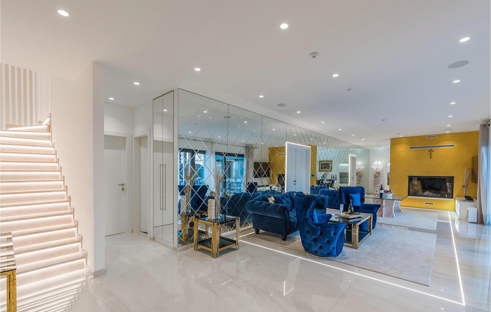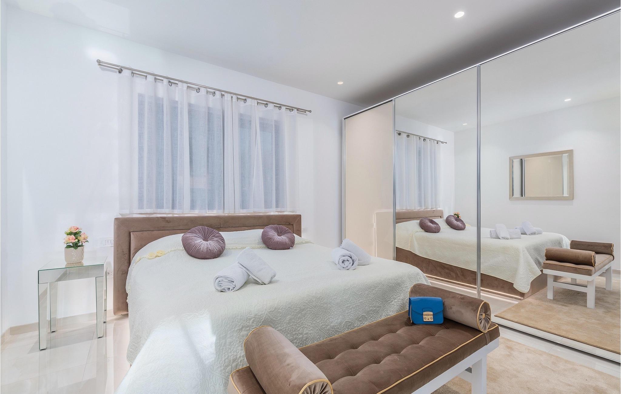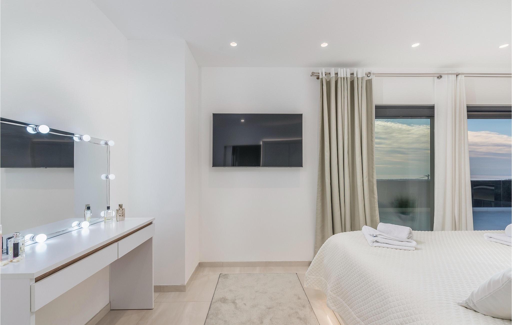 Betreten Sie die Villa über die Terrasse, so treten Sie ein in den modernen, lichtdurchfluteten Wohnraum mit Essbereich und voll ausgestatteter Küche. Mit vielen interessanten Details ausgestattet und dekoriert, ist auch das Interieur ein einziger Wow-Effekt! Im Erdgeschoss befinden sich zwei große, komfortable Schlafzimmer mit Doppelbetten. Drei weitere schicke Schlafzimmer auf der ersten Etage versprechen erholsamen Schlaf und schöne Träume. Jedes Schlafzimmer ist individuell und geschmackvoll eingerichtet und verfügt über ein eigenes wunderschönes Badezimmer, sowie TV und Klimaanlage.