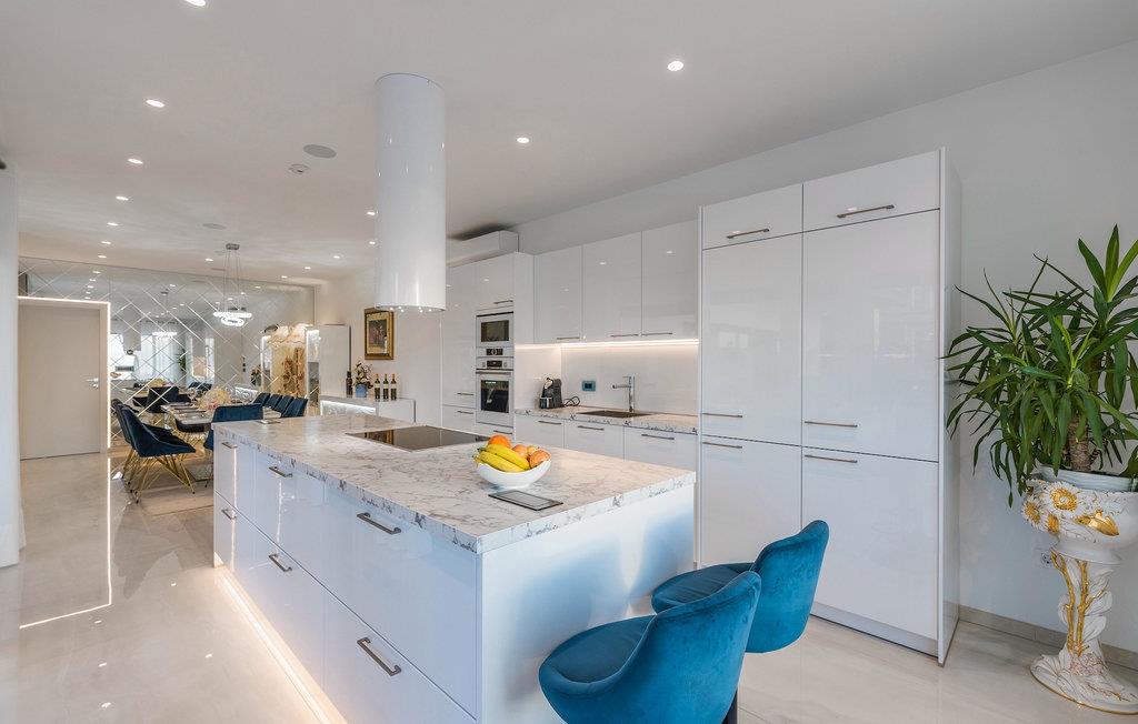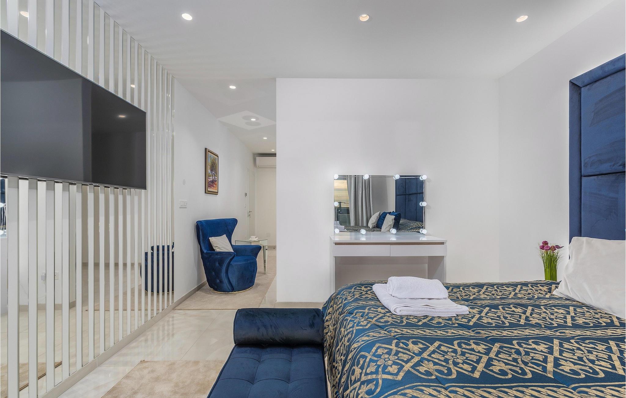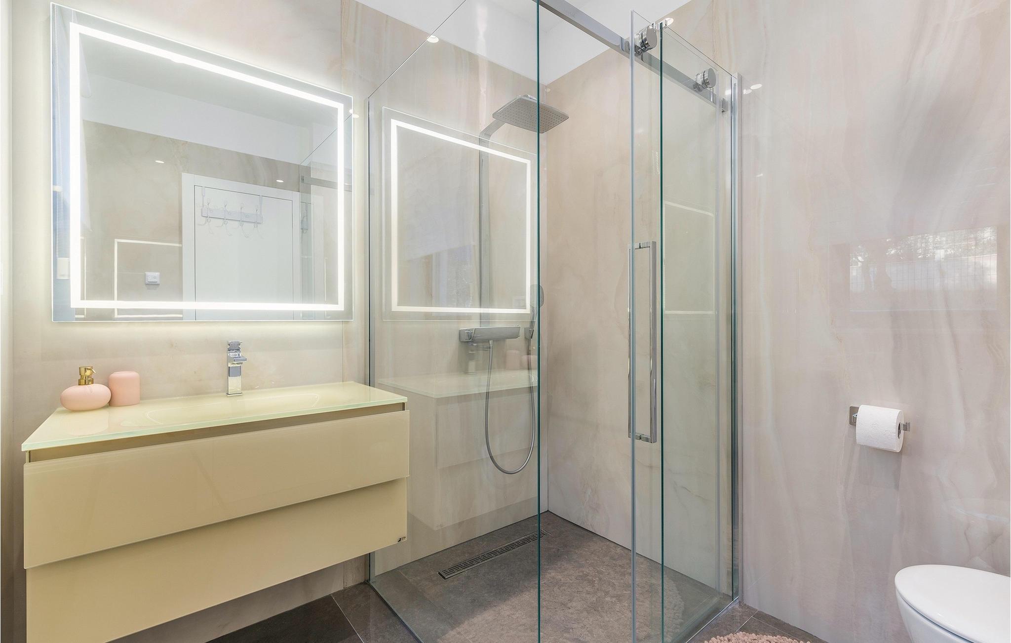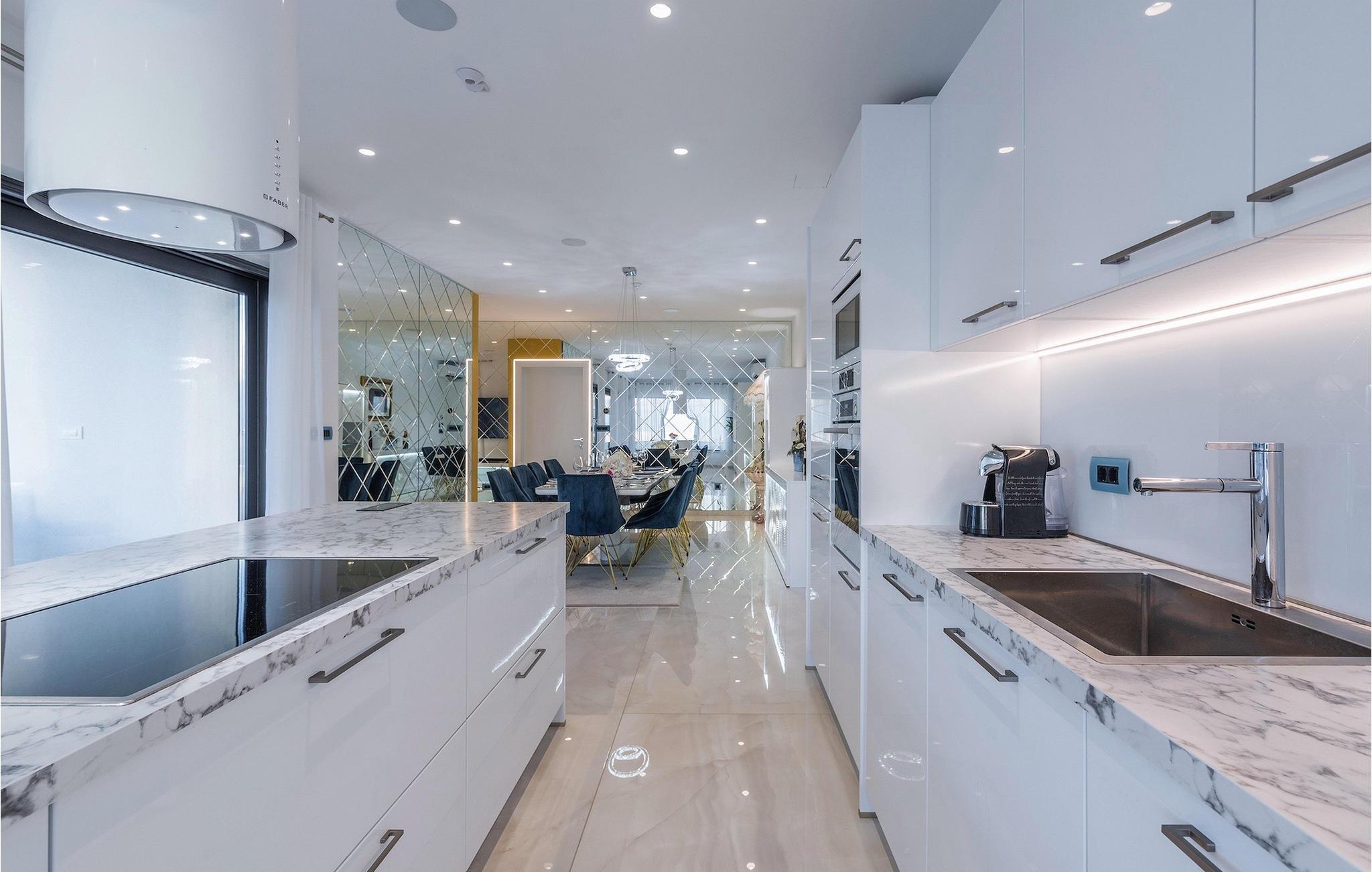 Betreten Sie die Villa über die Terrasse, so treten Sie ein in den modernen, lichtdurchfluteten Wohnraum mit Essbereich und voll ausgestatteter Küche. Mit vielen interessanten Details ausgestattet und dekoriert, ist auch das Interieur ein einziger Wow-Effekt! Im Erdgeschoss befinden sich zwei große, komfortable Schlafzimmer mit Doppelbetten. Drei weitere schicke Schlafzimmer auf der ersten Etage versprechen erholsamen Schlaf und schöne Träume. Jedes Schlafzimmer ist individuell und geschmackvoll eingerichtet und verfügt über ein eigenes wunderschönes Badezimmer, sowie TV und Klimaanlage.