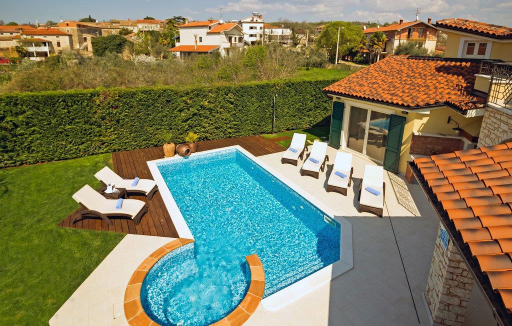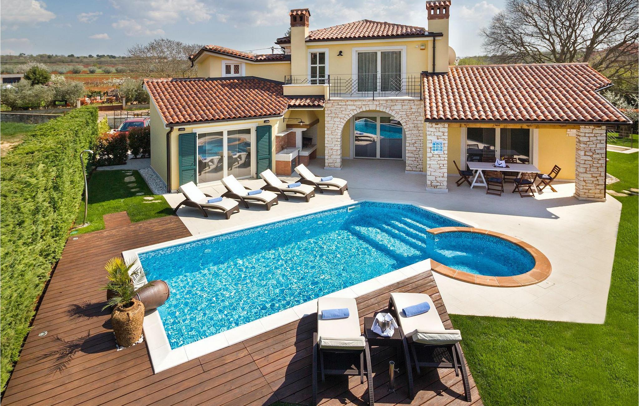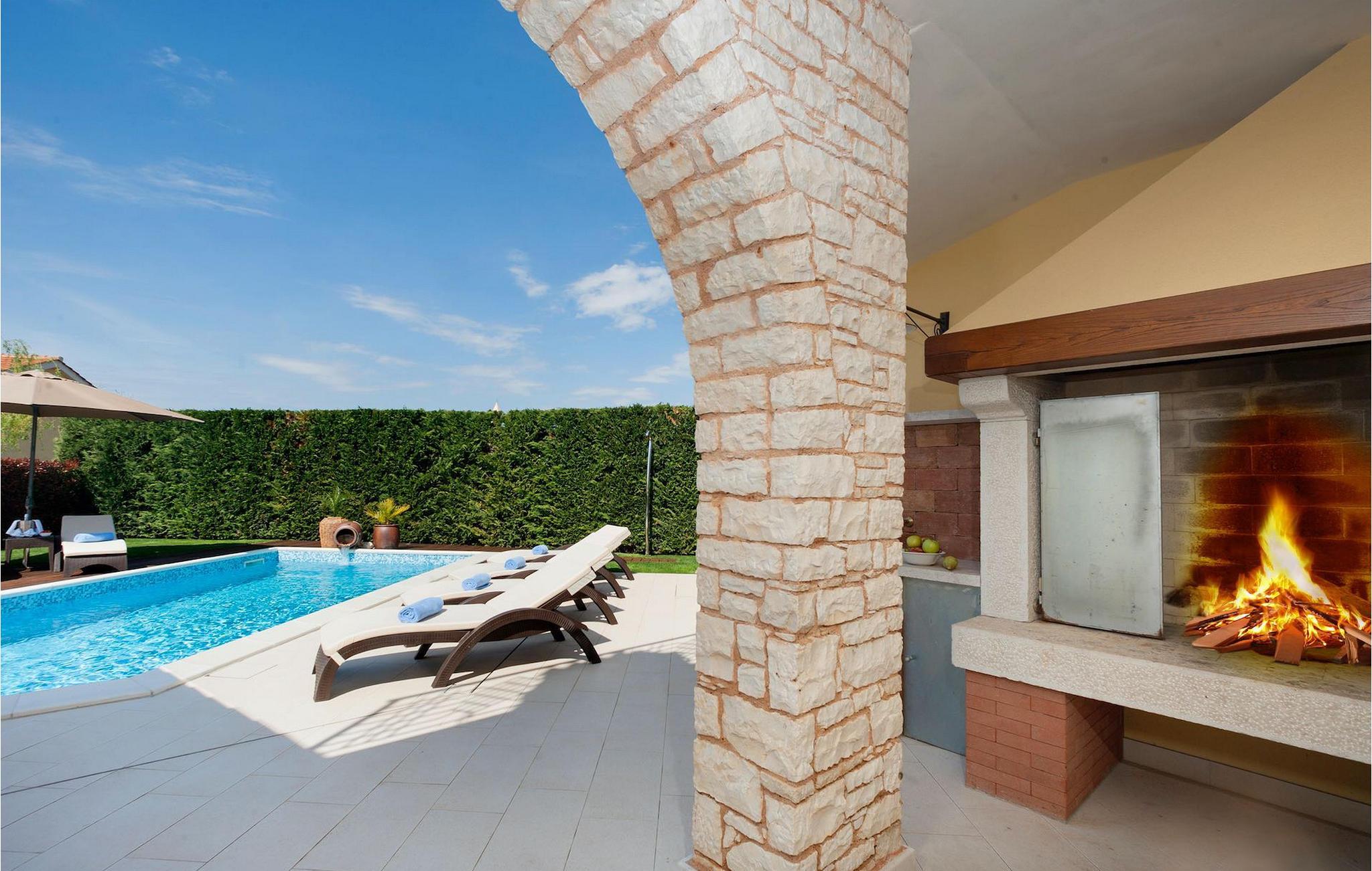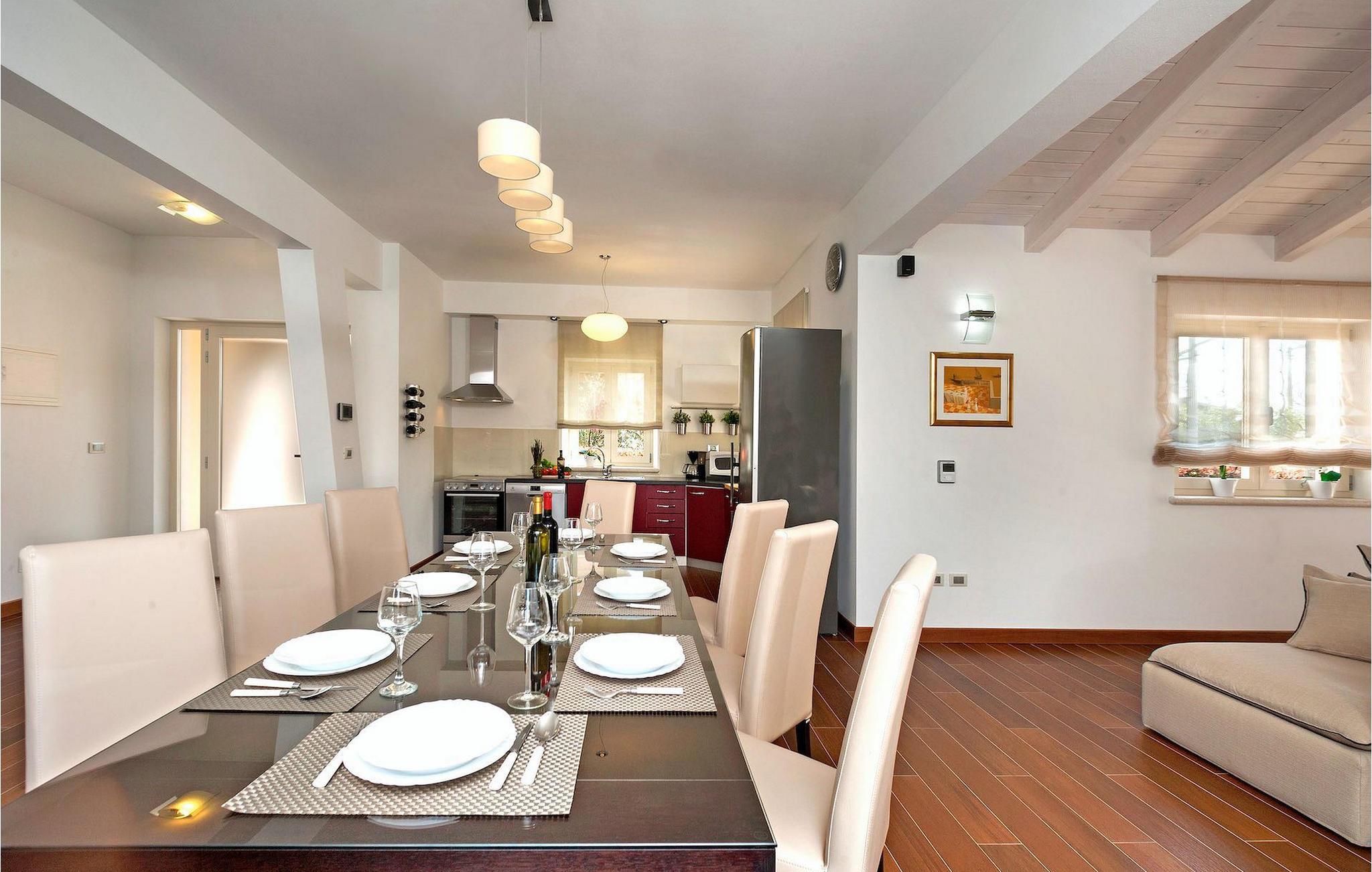 Denne dejlige villa nær Kastelir er ideel for dem, der gerne vil tilbringe en afslappende familieferie i fredelige omgivelser, men samtidig kun være en kort køretur væk fra kystturist-hotspots som Porec og Novigrad. Villa Santa Domenica har meget at byde på, både udvendigt og indvendigt. Værelserne er fordelt på tre etager indrettet med omhu og sans for detaljer. I stueetagen finder du en stor stue, der strækker sig ind i et fuldt udstyret køkken med spiseplads. Villaen har 3 soveværelser og kan rumme op til 6 gæster. To soveværelser, hvoraf det ene har eget badeværelse, er placeret i stueetagen. Her finder du også et ekstra badeværelse. Et hyggeligt soveværelse og et badeværelse er på øverste etage. For ekstra komfort vil du på øverste etage også bemærke et galleri, hvor du enten kan slappe af eller bruge pladsen som en ekstra sovemulighed. For at gøre din ferie endnu bedre, vil du i den nederste etage finde en taverna udstyret med et poolbord og bordfodbold. Udendørsområdet er ikke mindre bemærkelsesværdigt, og du kan få adgang til det direkte fra stueetagen. Nyd solen ved poolen eller udforsk Istrias landskab.Villa Labinci ligger i Labinci, en lille landsby, kun en kort køretur fra Porec. Porec er det berømte turistcenter i Istrien, kendt for sine smukke strande samt rige kulturarv. Når det kommer til kulturarv, er denne istriske juvel mest kendt for Euphrasian-basilikaen, som anses for at være et af de smukkeste kunstværker i verden. Porec har en række strandklubber, kaffebarer og natklubber, men du kan også vælge mellem mange forskellige restauranter, hvor du kan prøve lækre istriske retter. I nærheden af Porec finder du en af de bedste vandlande i Istrien - Aqualandia, der sikrer en sjov dag for hele familien. Hvis du gerne vil udforske det centrale Istrien, skal du blot besøge nogle af dets charmerende bakketopbyer som Groznjan eller Motovun, hvor du kan nyde udsigten over det fantastiske landskab.
