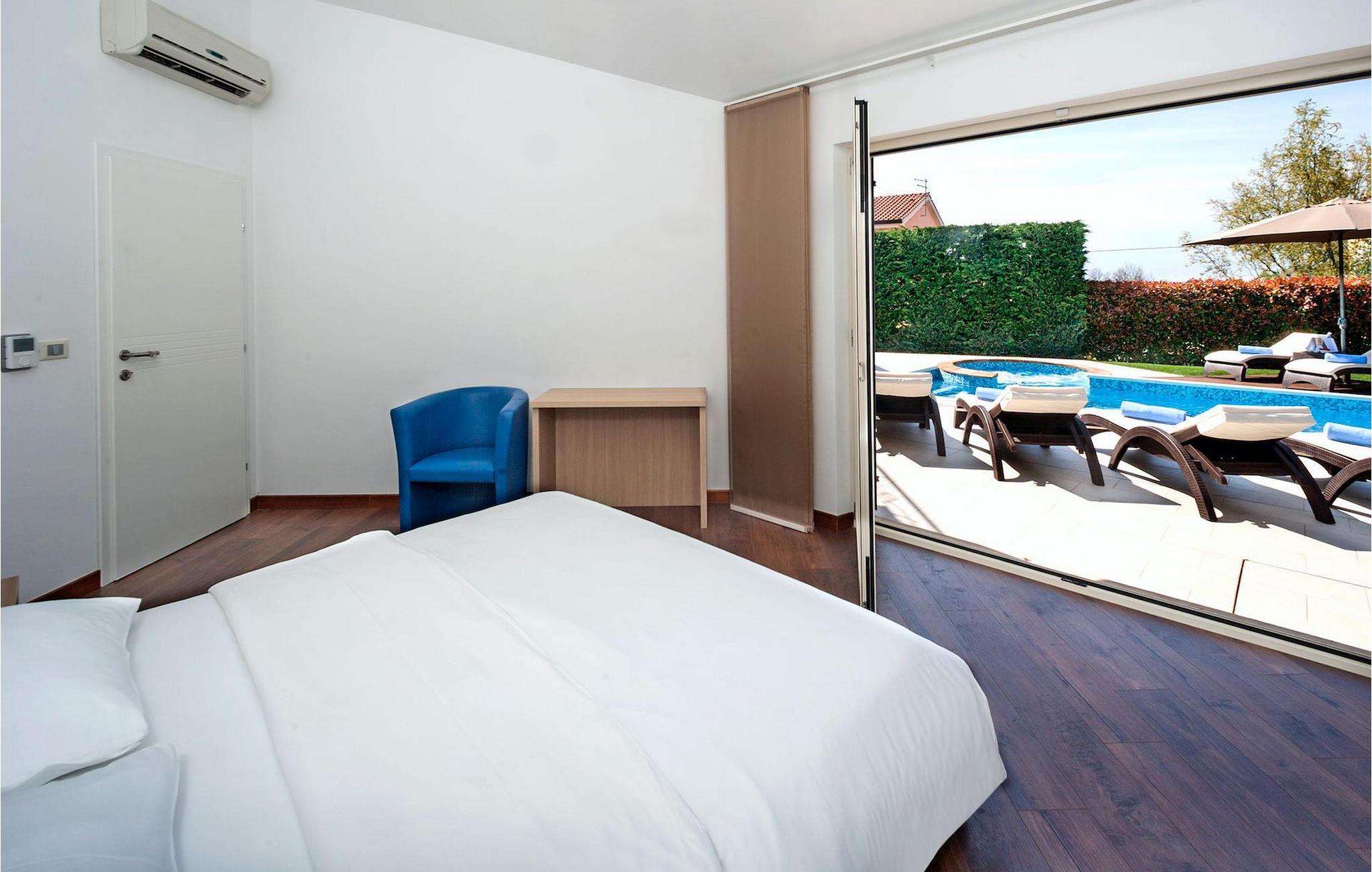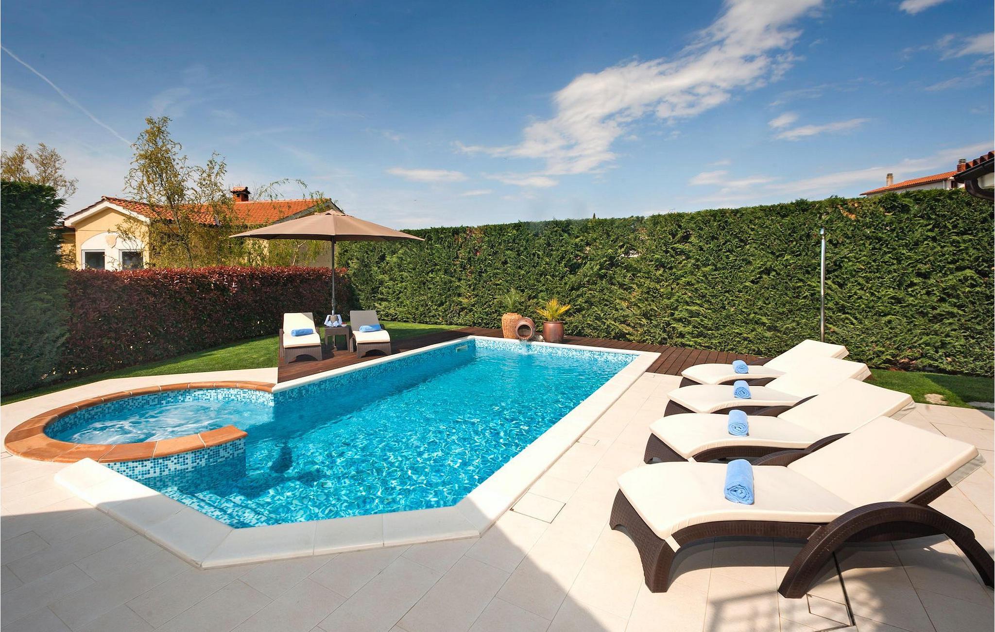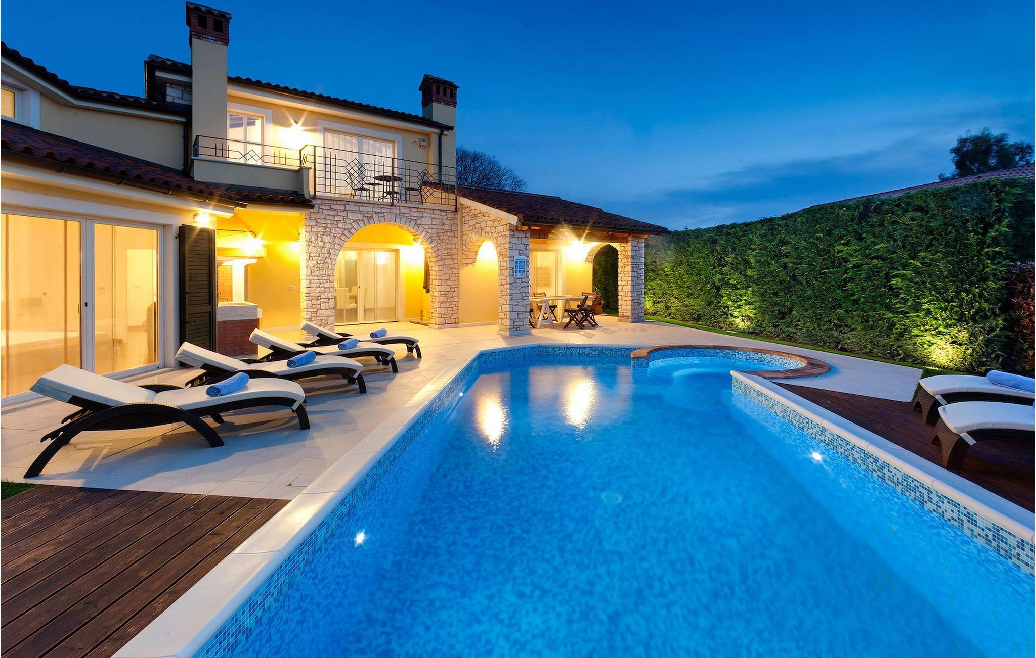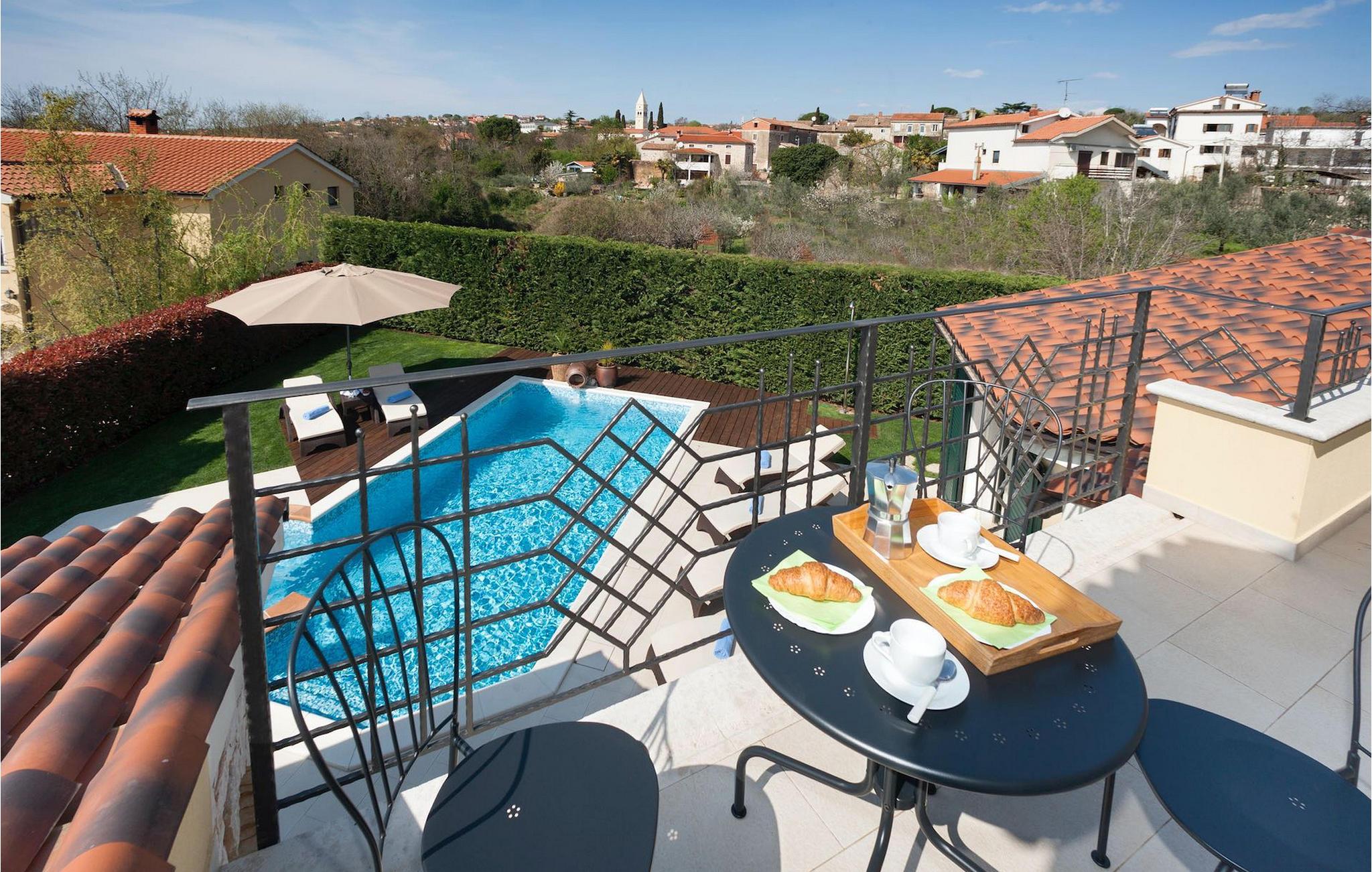 Denne dejlige villa nær Kastelir er ideel for dem, der gerne vil tilbringe en afslappende familieferie i fredelige omgivelser, men samtidig kun være en kort køretur væk fra kystturist-hotspots som Porec og Novigrad. Villa Santa Domenica har meget at byde på, både udvendigt og indvendigt. Værelserne er fordelt på tre etager indrettet med omhu og sans for detaljer. I stueetagen finder du en stor stue, der strækker sig ind i et fuldt udstyret køkken med spiseplads. Villaen har 3 soveværelser og kan rumme op til 6 gæster. To soveværelser, hvoraf det ene har eget badeværelse, er placeret i stueetagen. Her finder du også et ekstra badeværelse. Et hyggeligt soveværelse og et badeværelse er på øverste etage. For ekstra komfort vil du på øverste etage også bemærke et galleri, hvor du enten kan slappe af eller bruge pladsen som en ekstra sovemulighed. For at gøre din ferie endnu bedre, vil du i den nederste etage finde en taverna udstyret med et poolbord og bordfodbold. Udendørsområdet er ikke mindre bemærkelsesværdigt, og du kan få adgang til det direkte fra stueetagen. Nyd solen ved poolen eller udforsk Istrias landskab.Villa Labinci ligger i Labinci, en lille landsby, kun en kort køretur fra Porec. Porec er det berømte turistcenter i Istrien, kendt for sine smukke strande samt rige kulturarv. Når det kommer til kulturarv, er denne istriske juvel mest kendt for Euphrasian-basilikaen, som anses for at være et af de smukkeste kunstværker i verden. Porec har en række strandklubber, kaffebarer og natklubber, men du kan også vælge mellem mange forskellige restauranter, hvor du kan prøve lækre istriske retter. I nærheden af Porec finder du en af de bedste vandlande i Istrien - Aqualandia, der sikrer en sjov dag for hele familien. Hvis du gerne vil udforske det centrale Istrien, skal du blot besøge nogle af dets charmerende bakketopbyer som Groznjan eller Motovun, hvor du kan nyde udsigten over det fantastiske landskab.