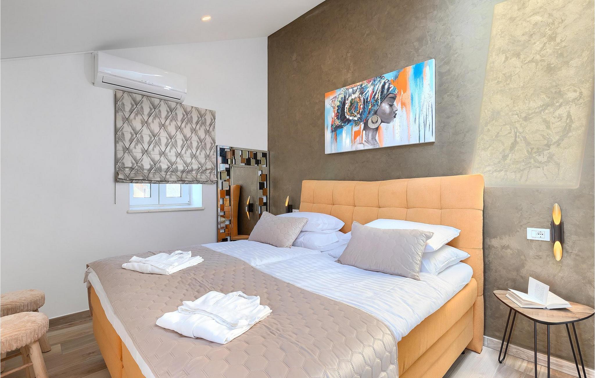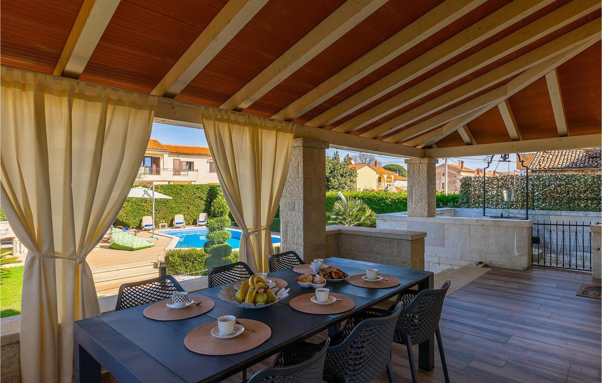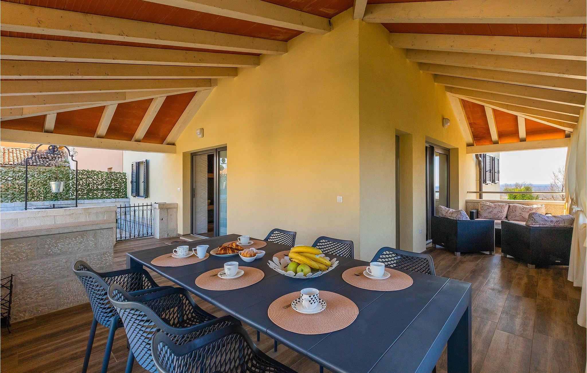 Et helt særligt højdepunkt er værtshuset i stueetagen med åben pejs, køkken, bar og et stort træbord til fantastiske aftener . Dit personlige wellness-rum med sauna og spabad ligger også på samme niveau. Nyd den velfortjente ferie med familien og slap af fra hverdagen i den smukke Villa Anabel. Kastelir er en lille og fredelig landsby, der ligger kun få kilometer uden for kystbyerne Porec og Novigrad. Porec er en stor kystby og turisthotspot på den vestlige kyst af Istrien. Det er en gammel romersk by med en 2000 år gammel bykerne fyldt med historiske vartegn. I den historiske gamle bydel ligger Euphrasian Basilica-komplekset fra det 6. århundrede, berømt for sine perlebesatte byzantinske mosaikker, og der er mange flere gamle vartegn, der er værd at udforske i byen. Porec er også kendt for sit udvalg af gode restauranter og bistroer, perfekt til madelskere og ønologientusiaster. Novigrad er et mindre turisthotspot, engang en fiskerby. Gennem årene er det blevet et overbevisende turistmål. Novigrad er ikke bare en turistby, det er en ægte arkitektonisk perle fyldt med forbløffende historiske seværdigheder, rig arv og bevaret naturlig skønhed. Novigrad er også en af de bedste gourmetdestinationer i Istrien, hvor man kan smage mange gastronomiske lækkerier fra middelhavskøkkenet.