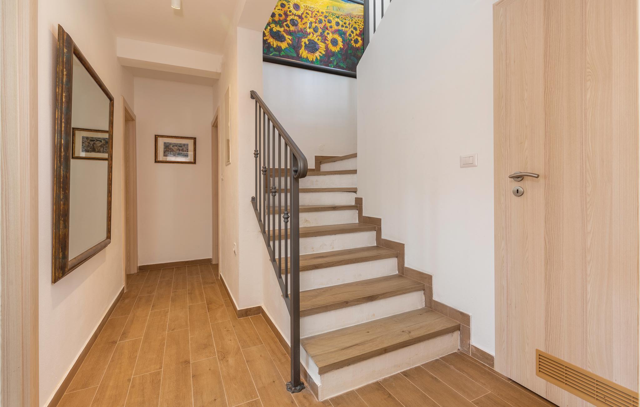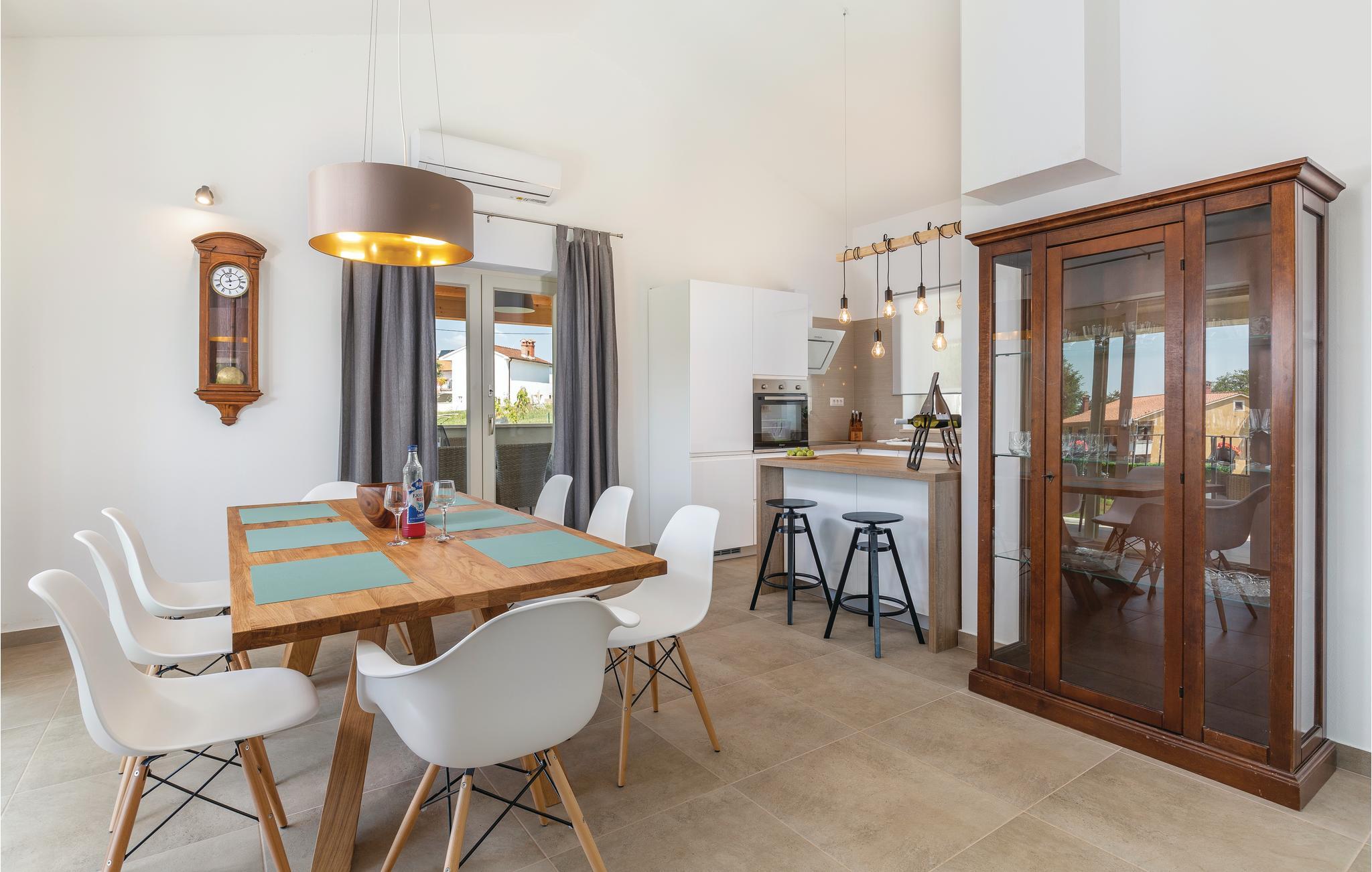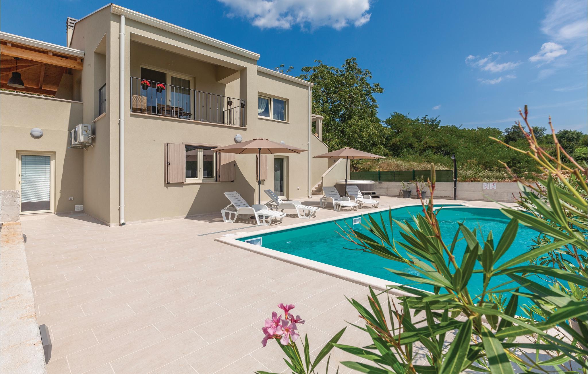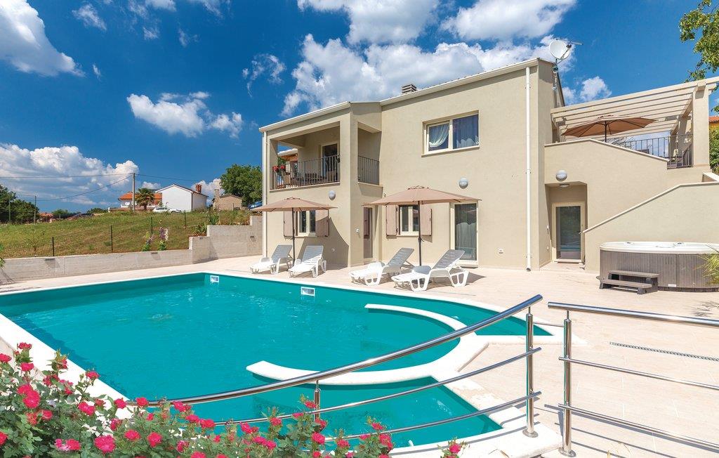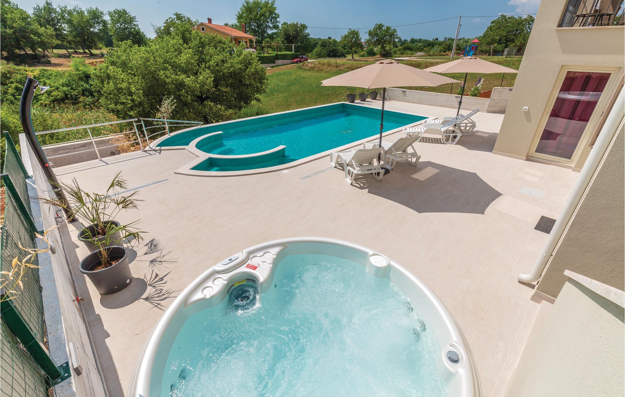 Dette attraktive feriehus med pool ligger i en lille by, i nærheden af det skønne Porec. Det rummelige domicil strækker sig over to etager og er charmerende og stilfuldt indrettet. I kan også glæde jer til sauna, fitnessrum og til whirlpoolen til fire personer der står på terrassen. Hop en tur i poolen lige når I har lyst og lav lækker mad på husets grill. Der er god plads til leg og boldspil i husets indhegnede have. Vi kan anbefale besøg i den lille by Višnjan, med sit udsigtstårn af sten, samt i byen Porec, hvor der afholdes mange interessante former for underholdning.