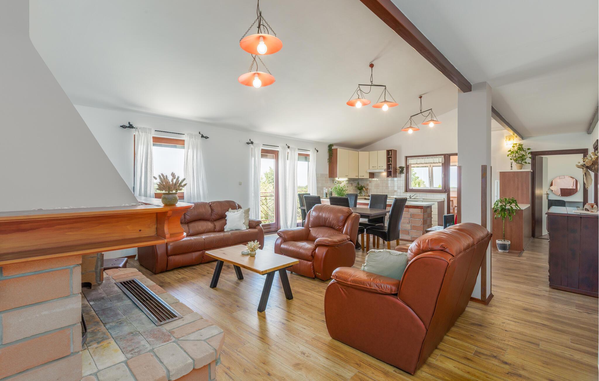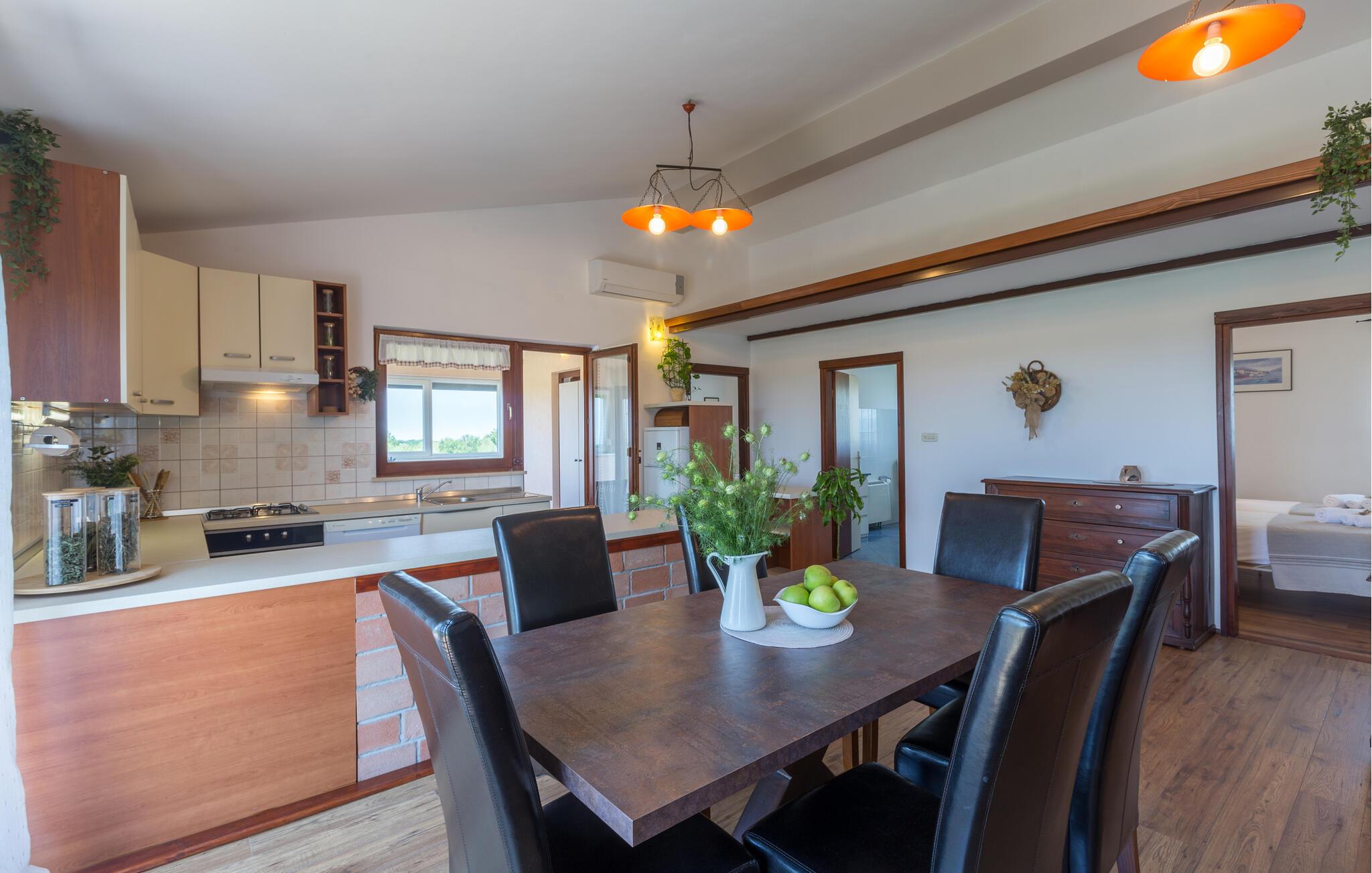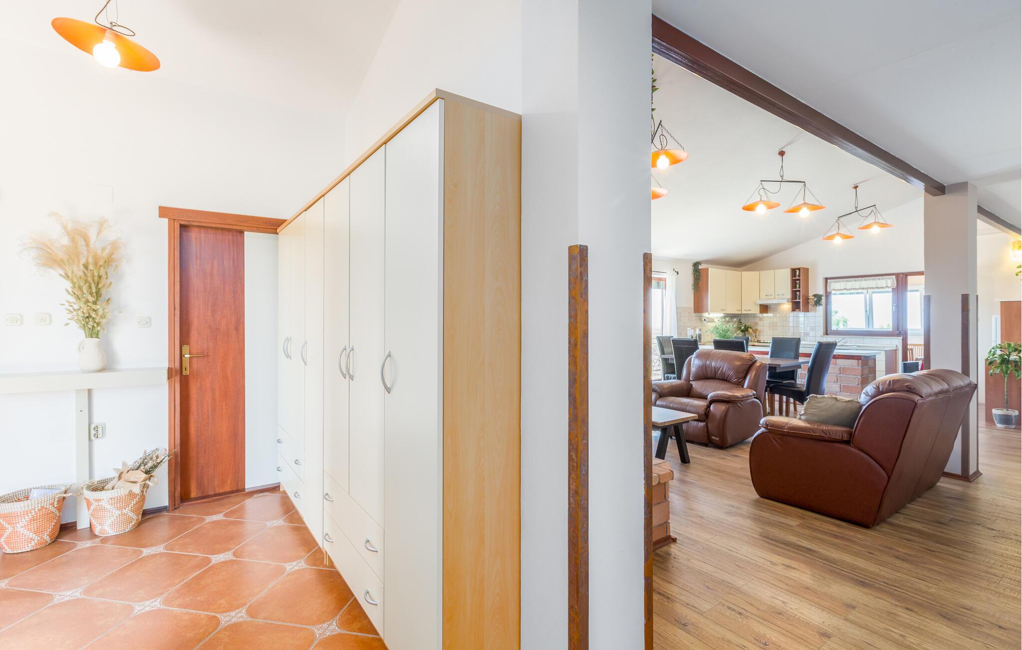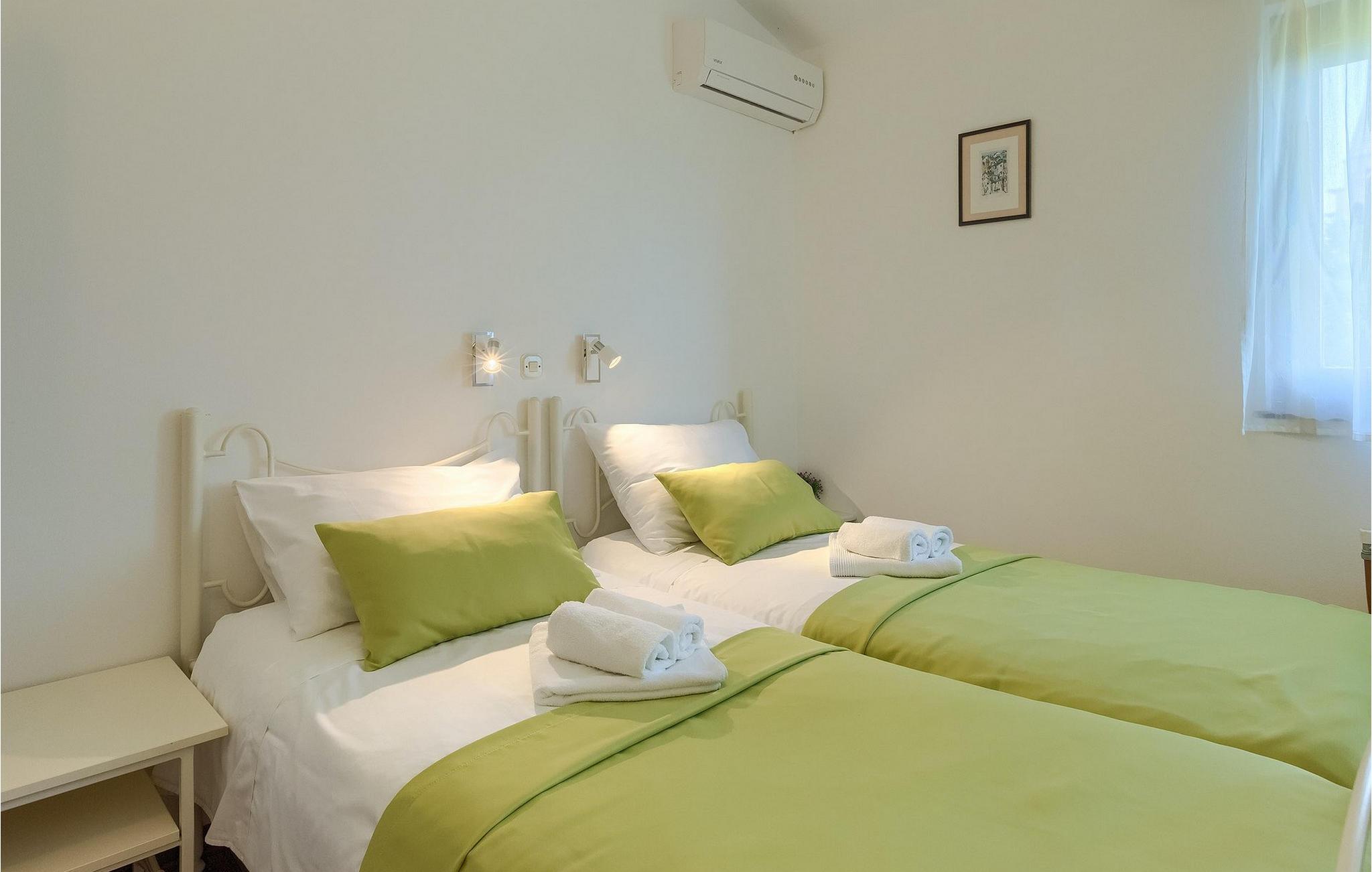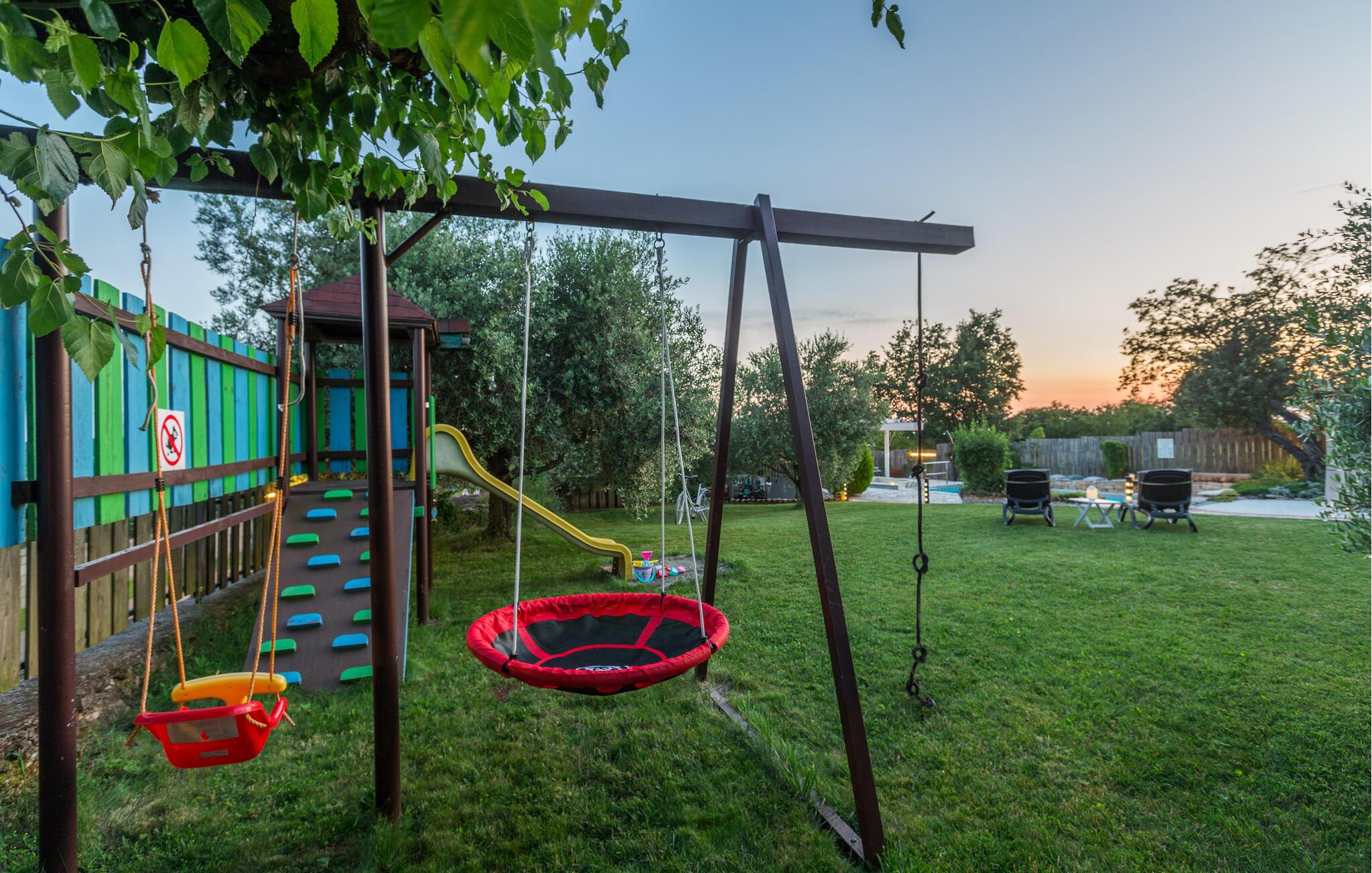 Dette charmerende feriehus med 4 soveværelser tilbyder privatliv og en flot udsigt til afslappende familieferier. Fra ejendommen kan du hvile dig, mens du nyder den fjerne havudsigt, Alperne i Italien og Ucka-bjerget. Haven er velholdt, og interiøret er pænt dekoreret med opmærksomhed på den traditionelle istriske arv. I stueetagen, ved siden af poolområdet, er et sommerkøkken med et stort spisebord. For yngre gæster er der en sandkasse med legetøj for at holde dem glade. På øverste etage (for at komme ind via en udvendig trappe) finder du stuen, som er hyggelig, rummelig og forbundet med køkken og spiseplads. Der er i alt 4 soveværelser, også placeret på øverste etage - hvoraf det ene har en dobbelt king-size seng, to har 2 enkeltsenge hver og et har en sovesofa, der giver ekstra sovemulighed for 2 gæster. Det store soveværelse har udgang til overdækket terrasse, og der er i alt to badeværelser og to ekstra toiletter på ejendommen. Et af badeværelserne har jacuzzi, hvor du kan slappe af. Ejendommen er veludstyret og har aircondition, en højhastigheds-internetforbindelse er gratis tilgængelig for gæster. På ejendommen er der cykler til din rådighed - den bedste måde at udforske omgivelserne på, og de er selvfølgelig også gratis. Omkring 3 kilometer fra ejendommen passerer den såkaldte 'Parenzana' - den første istriske jernbane, som forbandt Trieste med Porec. Denne jernbane blev for nylig omdannet til en cykelsti. For dem, der elsker mountainbike eller gåture, er det det ideelle sted. Denne ejendom er beliggende i en fredelig beliggenhed i en lille istrisk landsby kaldet Ritosin Brig. Denne lille og charmerende landsby tilbyder privatlivets fred for perfekte familieferier såvel som denne indhegnede ejendom. På den anden side er Villa Vital kun 15-20 minutter væk fra Porec - det største turistområde i Istrien. Hvis du leder efter aktivitet, bemærkelsesværdige oplevelser og rig kulturarv, er Porec med sine 100 års erfaring inden for gæstfrihed og turisme stedet for dig.