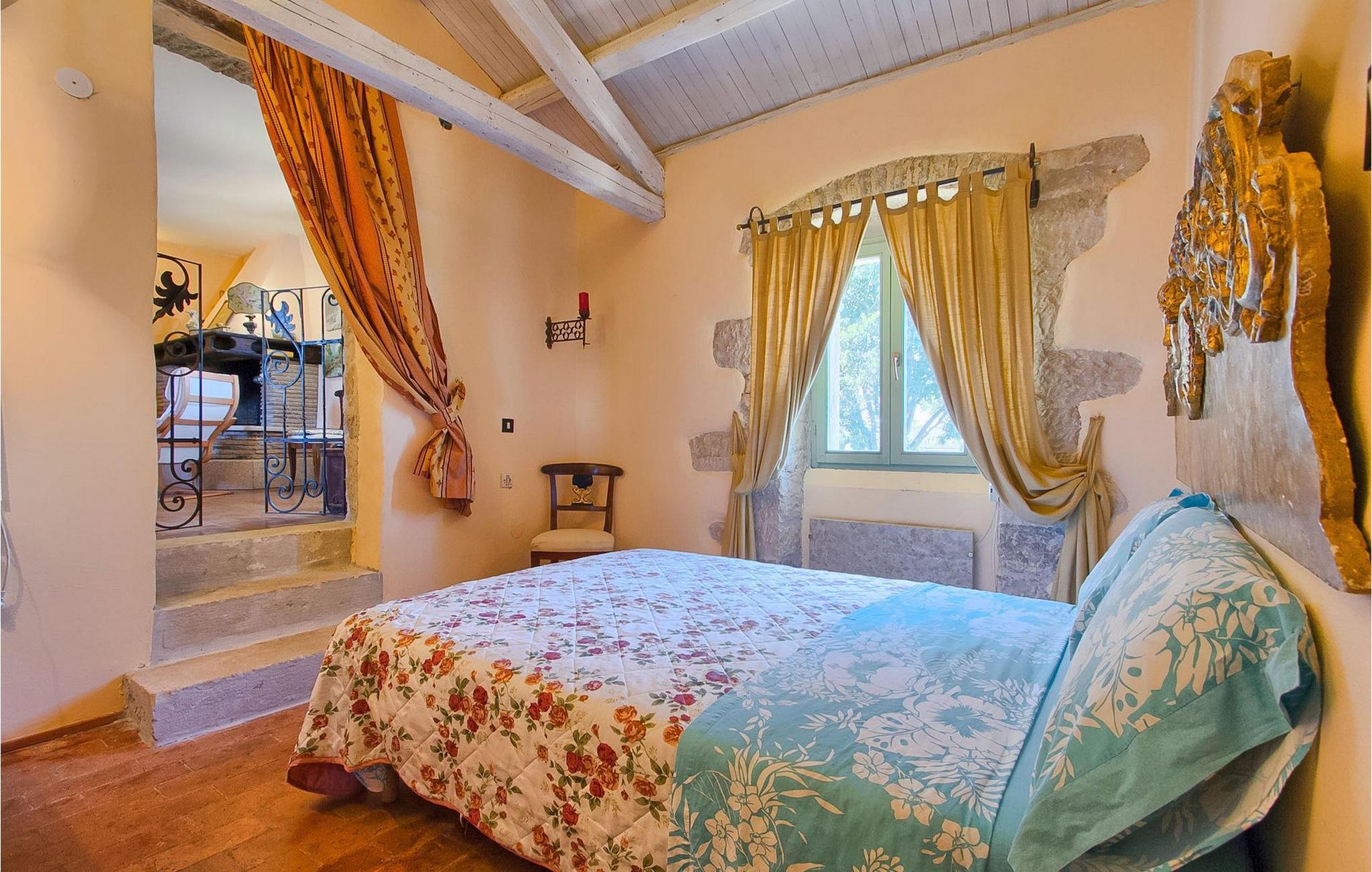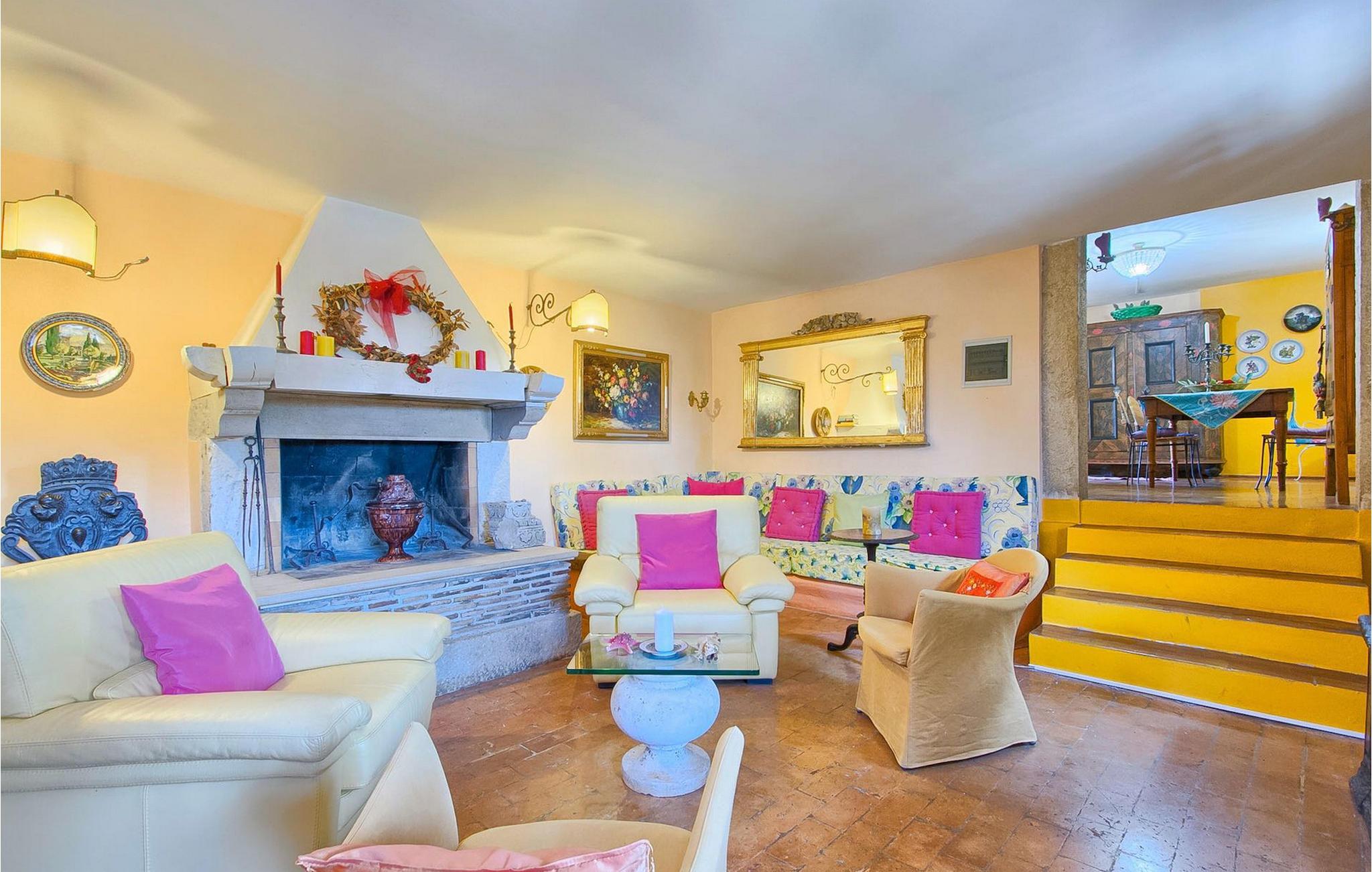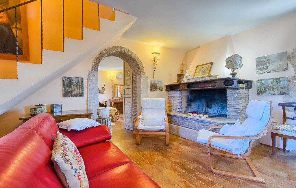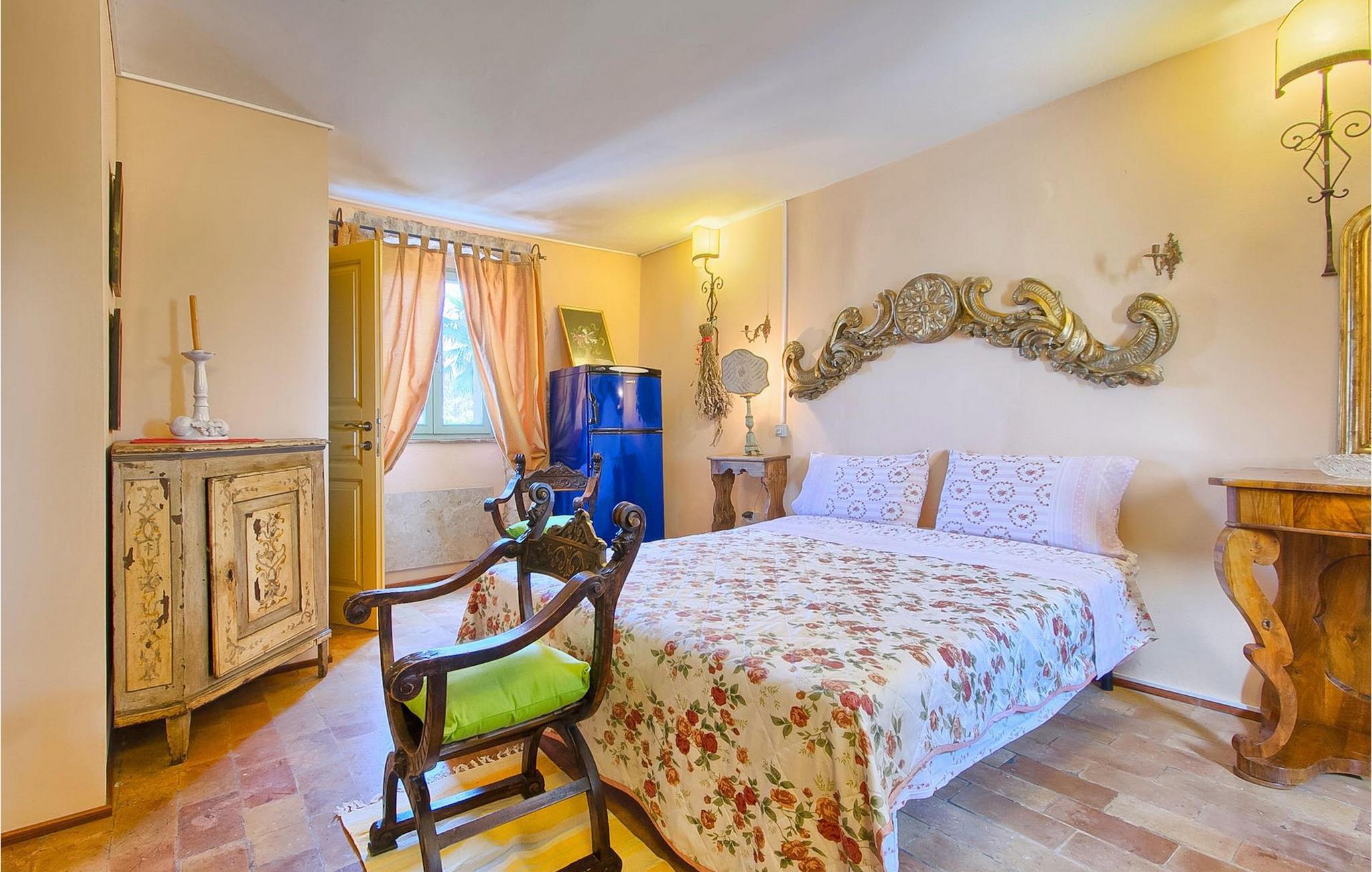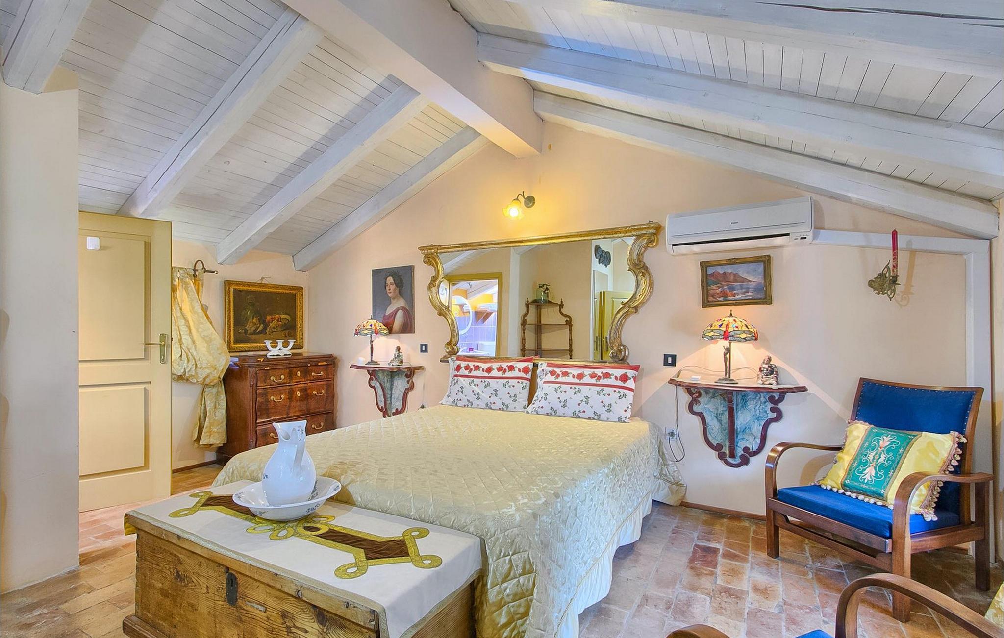 På første sal kan du tilbringe fredelige nætter i et soveværelse med en dobbeltseng og et ensuite badeværelse med bruser. Her kan du også finde endnu et soveværelse med dobbeltseng, samt endnu et badeværelse med bruser. Derudover er der et opholdsrum med udgang til den øverste terrasse, hvor du kan tilbringe tid med din familie foran en pejs.