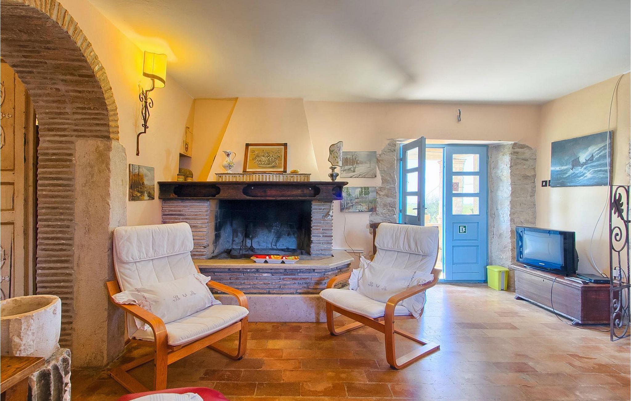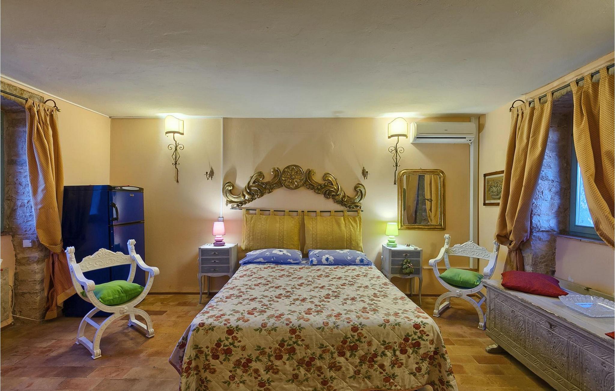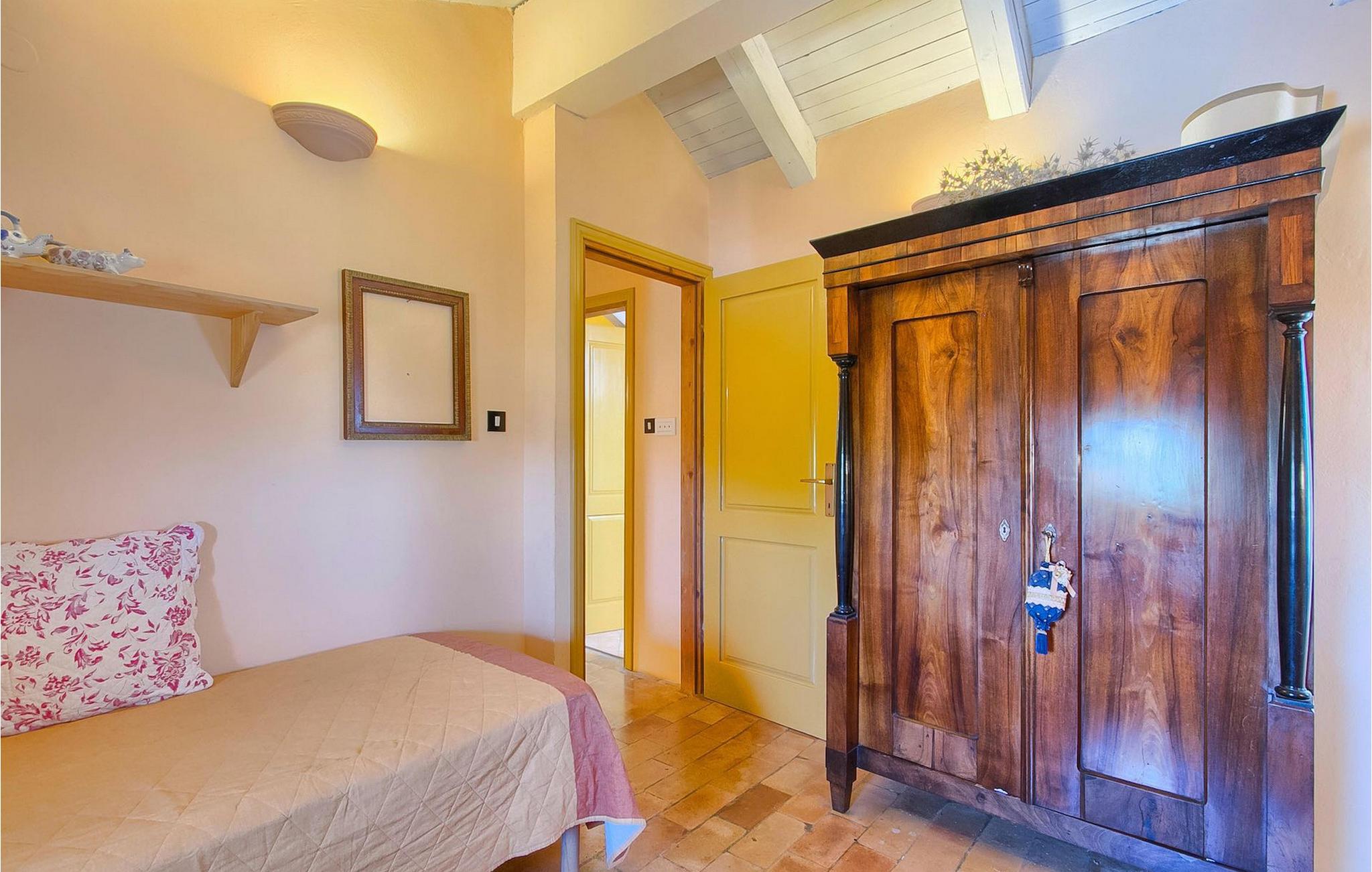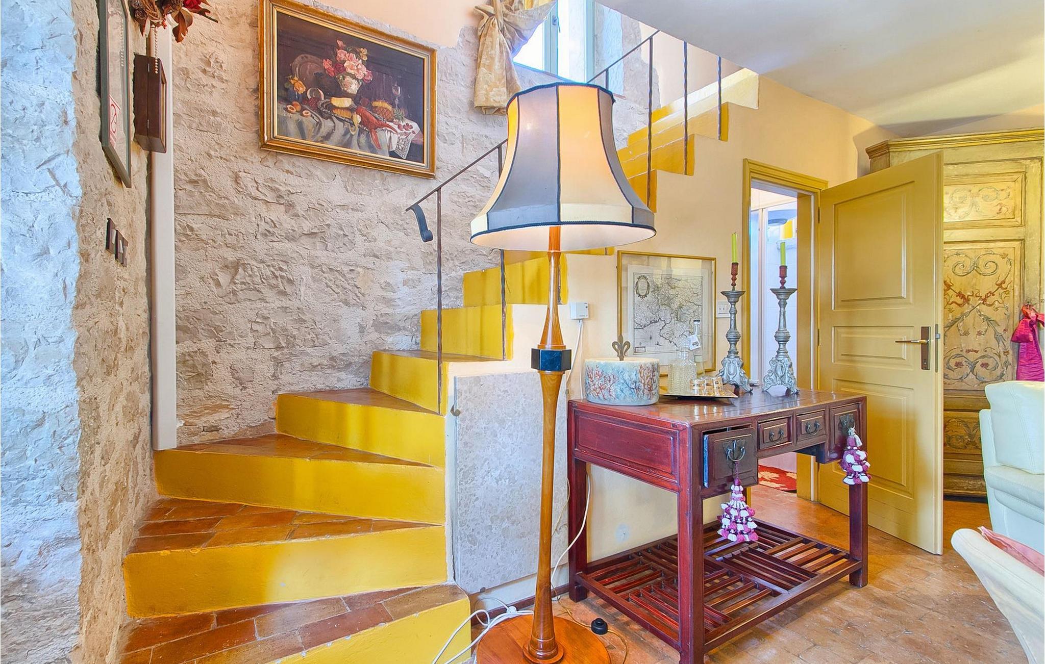 På første sal kan du tilbringe fredelige nætter i et soveværelse med en dobbeltseng og et ensuite badeværelse med bruser. Her kan du også finde endnu et soveværelse med dobbeltseng, samt endnu et badeværelse med bruser. Derudover er der et opholdsrum med udgang til den øverste terrasse, hvor du kan tilbringe tid med din familie foran en pejs.