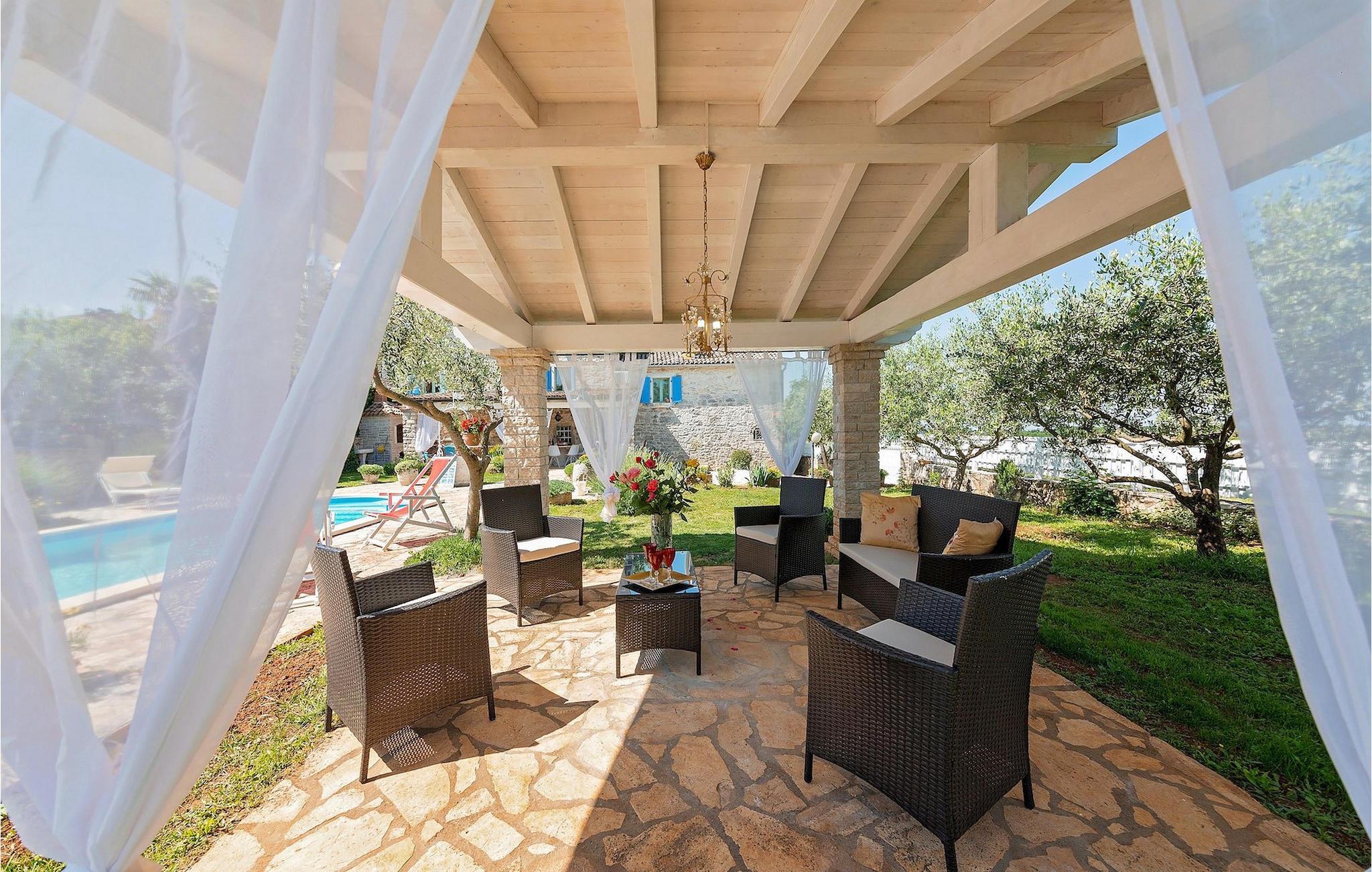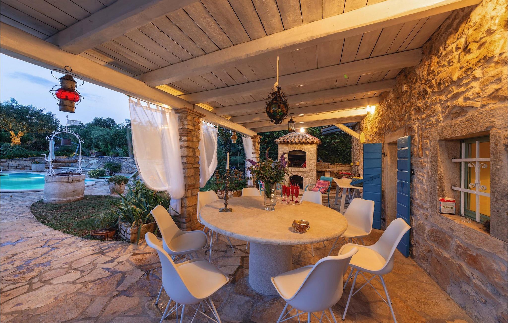 I haven kan du også finde en ekstra spiseplads med grill, hvor du kan tilbringe varme aftener med din familie og tilberede traditionelle istriske retter.