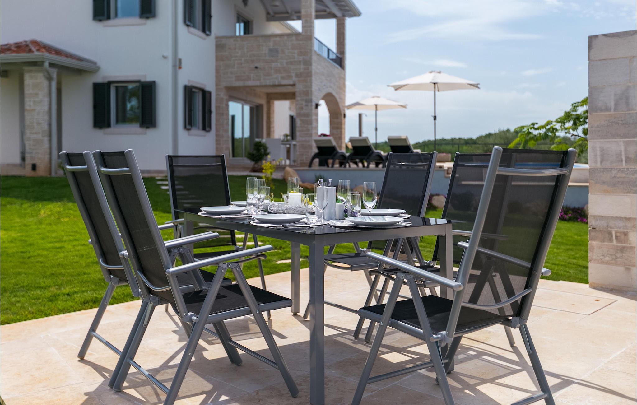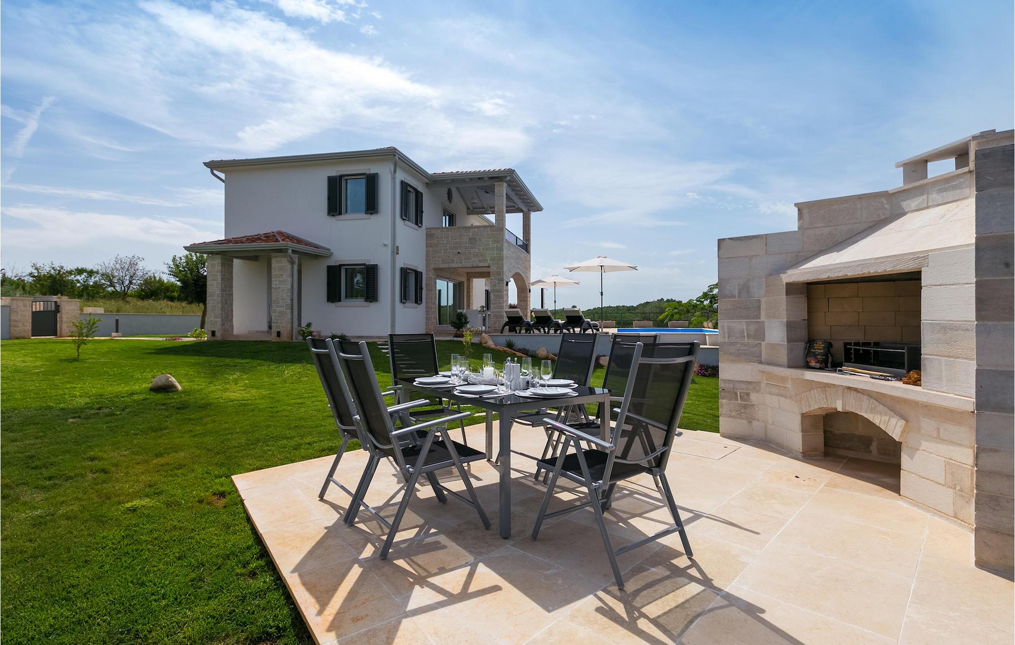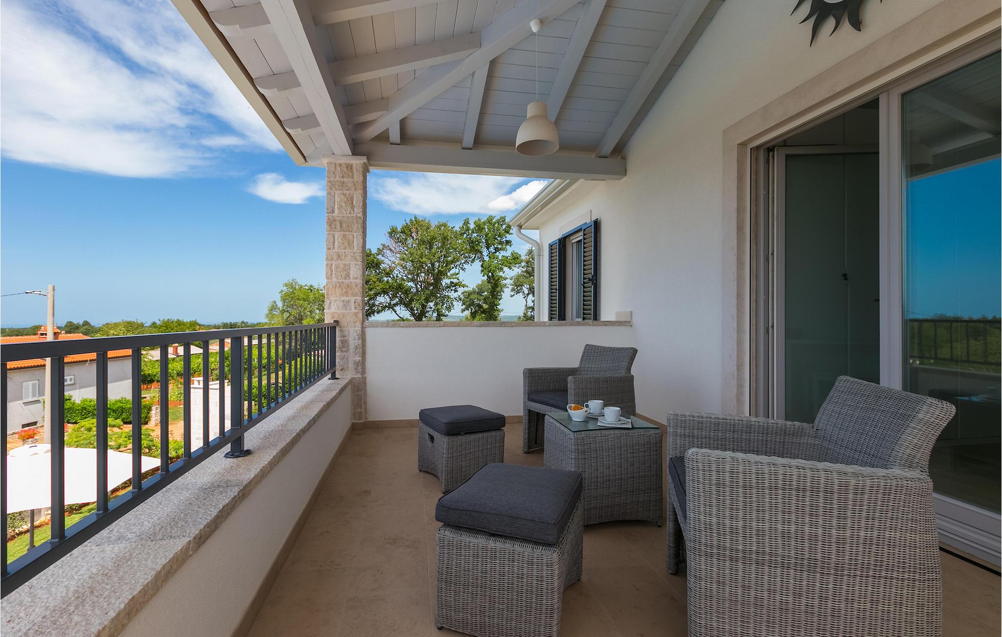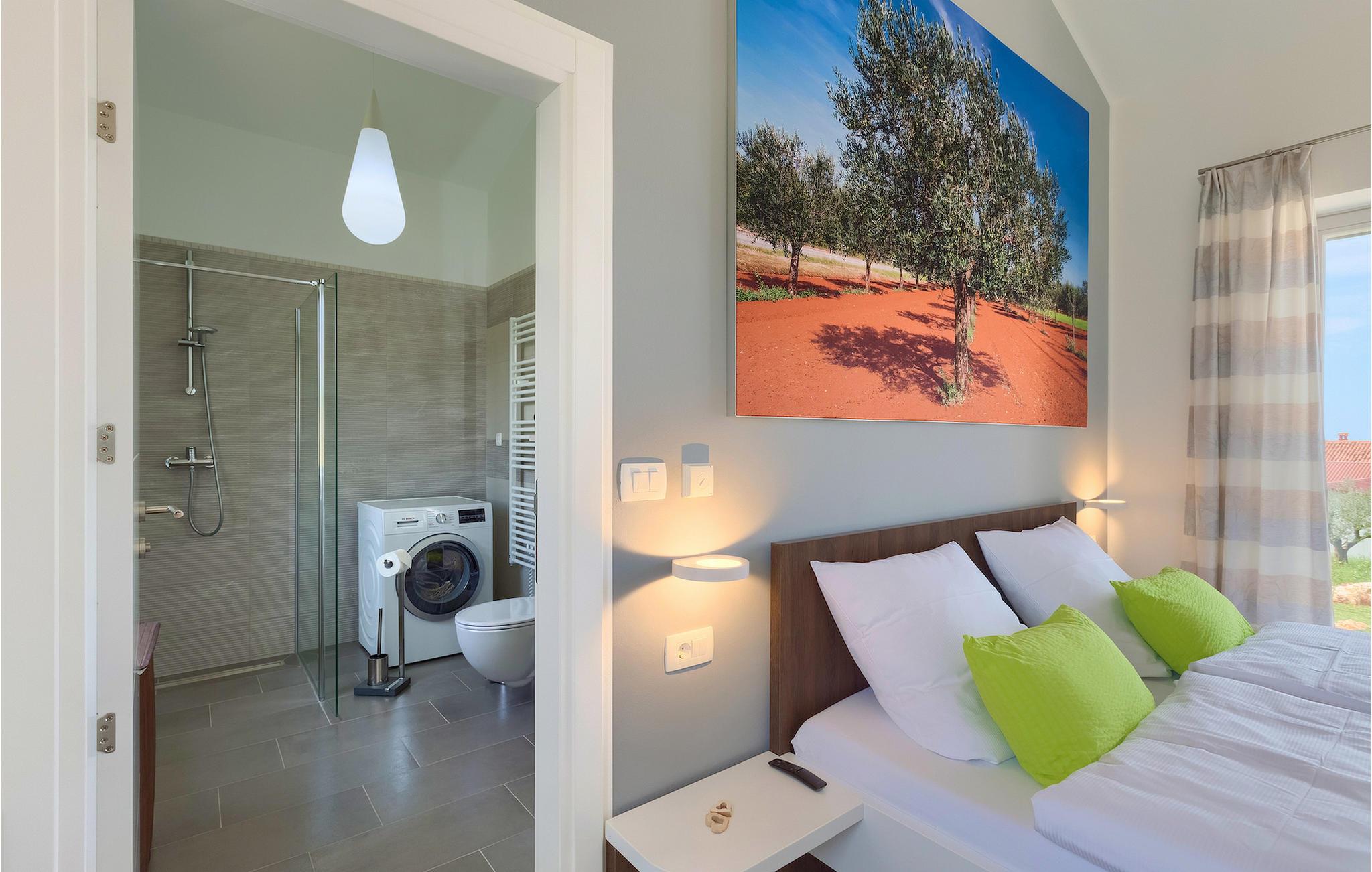 Drømmer du om en afslappet ferie i Istriens bagland, ikke langt fra havet i en moderne, dejligt møbleret villa? Villa Marika er dit perfekte valg! I stueetagen finder du et rummeligt åbent konceptværelse, der forbinder stue og spisestue med et fuldt udstyret køkken. Herfra kan du overse den indbydende pool og tilberede måltider til det skyggefulde udendørs spiseområde. I den adskilte del af den plejede have finder du et dejligt hjørne, der er ideelt til udendørs spisning, lige ved siden af grillen, hvor du også kan nyde et glas istrisk Malvazija. Stueetagen byder også på et soveværelse med dobbeltseng og eget badeværelse. På første sal finder du overnatning i 2 soveværelser også udstyret med eget badeværelse, tv og klimaanlæg. På denne etage finder du en terrasse, som er det ideelle sted at få din første te eller kaffe. Hvis vejret er godt, kan du nyde udsigten mod havet i baggrunden. Rundt om poolen er der talrige liggestole til at slappe af eller solbade. Udforsk de smukke omgivelser i villaen med cyklerne, enten du besøger vinstier eller tager en tur langs Parenzana. Villa Marika venter på dig! Villa Marika ligger i en charmerende lille landsby Vizinada. Herfra kan du nyde den vidunderlige udsigt over Mirna-dalen, bakkerne i Istriens bagland og andre små (sten)byer i det fjerne, som smukke Motovun. Ifølge legenden er Vizinada en 1000 år gammel landsby, hvor romerne byggede Via Flavia og nutidens cykel- og vandresti Parenzana. Ikke langt fra villaen kan du også komme til andre turistede byer som Porec eller Novigrad (begge omkring 16 km væk). Porec er i dag et af de vigtigste turistcentre med dens imponerende Eufrasiusbasilika, som har været en del af Unesco-arven siden 1997. Hvis du rejser med børn, kan du besøge den nærliggende Aquapark Istralandia, kun 20 minutters kørsel væk fra villa. Du bør også besøge den charmerende naboby Novigrad. Denne hyggelige lille by var engang en kendt fiskerby, der stadig har bevaret sin typiske atmosfære fra en middelhavsby. Her kan du besøge forter, gamle kirker og adskillige museer, barer og restauranter. Udforsk området for vinveje, olivenoliestier og den autentiske smag af de værdifulde, indenlandske produkter i Istrien.