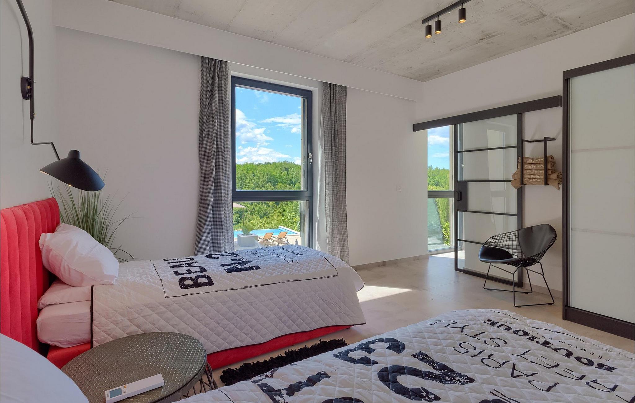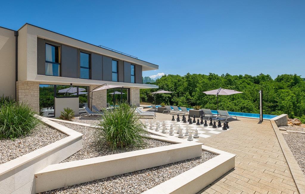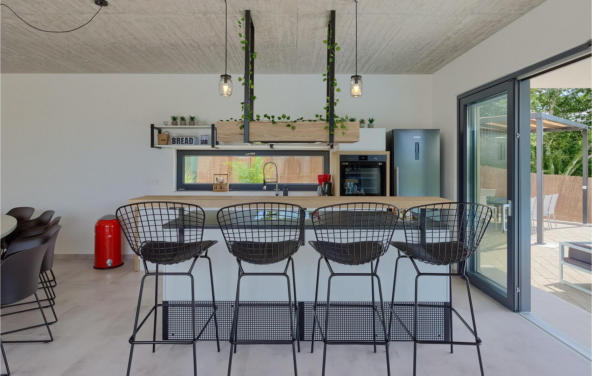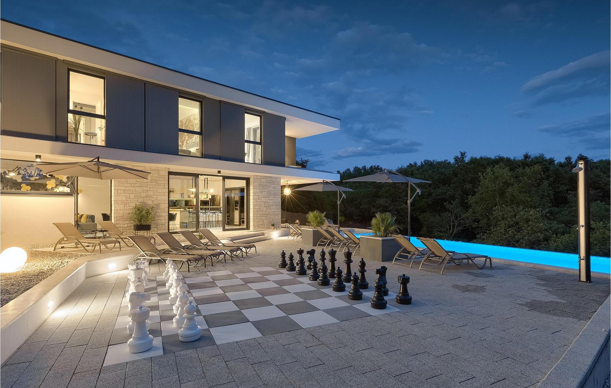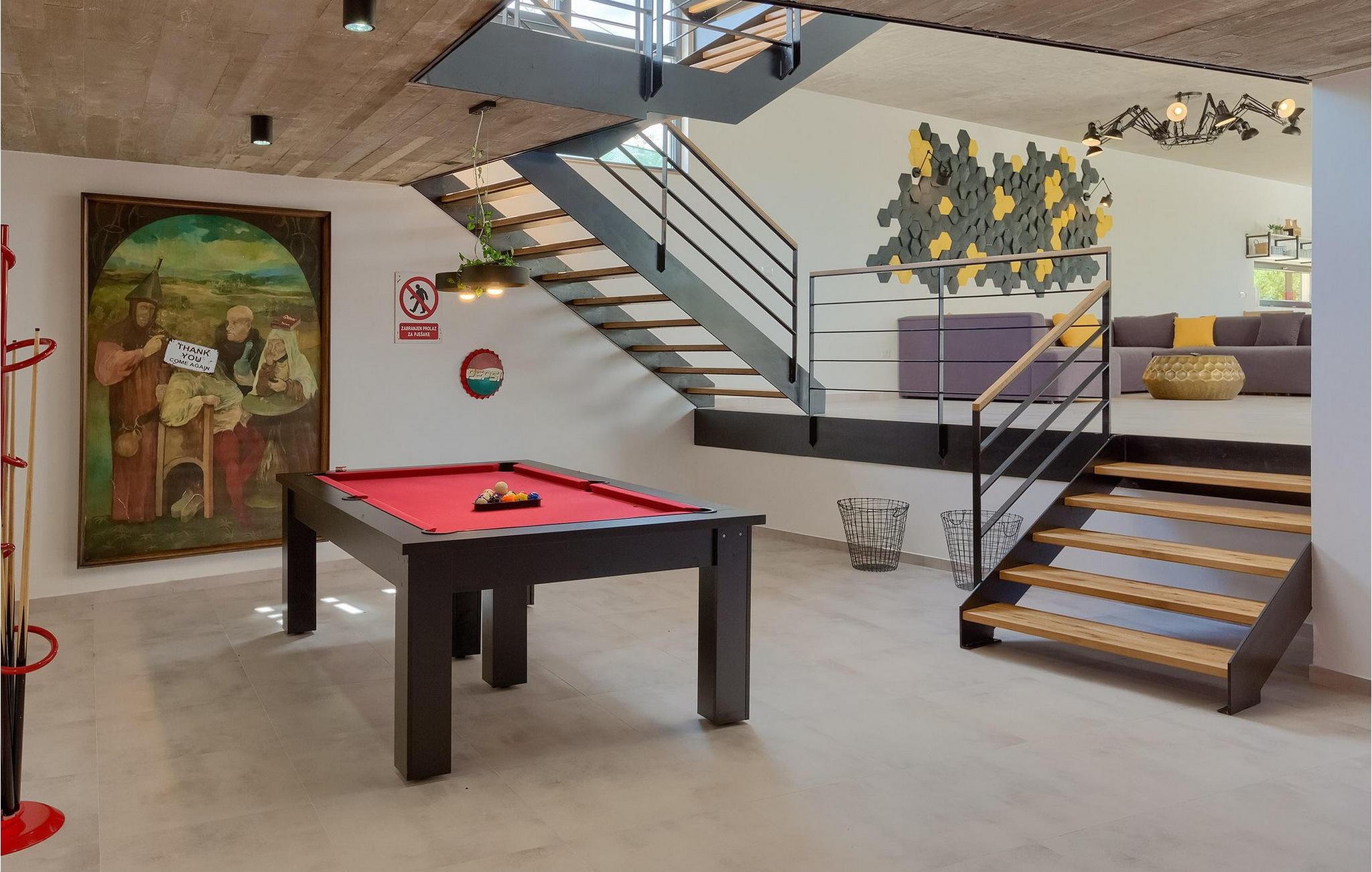 Leder du efter en stor og moderne villa, der kan rumme op til 14 personer og har en stor pool, så behøver du ikke lede længere. Villa Grande Barbara tilbyder alt dette og mere. Denne villa er designet efter alle moderne arkitektoniske principper, især ved brug af glas, stål og armeret beton for at gøre den både til et kunstværk og en fuldt funktionel feriedestination. Villaens have er rummelig med en stor pool og et udendørs skaksæt. Forfrisk dig selv i poolen eller nyd solen på liggestolene omkring poolen. I haven er der også en overdækket spiseplads til måltider, som du kan tilberede på grillen. Slap af med familie og venner i skyggen af den overdækkede terrasse på varme sommerdage. På første sal i villaen er der en stue, en spisestue og et køkken. I kælderen finder du et billardrum og et rum med projektor, hvor du kan se din yndlingsserie på en stor væg. Du finder afslapning i i alt syv soveværelser. To af dem er på anden sal, to på anden sal og tre på mezzaninen, hvoraf den ene er master soveværelset. Tre soveværelser er dobbeltværelser og fire soveværelser er enkeltværelser. Alle på nær to soveværelser har deres eget badeværelse. To værelser deler et stort badeværelse med hver sin adgang til badeværelset. Denne villa er perfekt til en ferie med familie og venner, som du længe har drømt om. Villa Grande Barbara er ikke et festhus. Villa Grande Barbara ligger i udkanten af en lille istrisk landsby, omgivet af fredelig og malerisk natur, væk fra turistattraktioner. Kunne du tænke dig at udforske omgivelserne? Istriens vejnet er fremragende. Besøg de bedste byer på kysten og inde i Istrien, som kun er en kort køretur væk gennem det smukke istriske landskab. Hver kilometer vil fortrylle dig. Du kan planlægge dagsture til kystbyerne Pula, Rovinj og Porec eller køre ind i landet og udforske Motovun, Groznjan og Vodnjan. Hvert af disse steder er rigt på kulturarv og historiske monumenter, som du kan udforske i timevis. Brijuni National Park ligger kun en kort bådtur fra Pula. Prøv at besøge det og nyd den smukke natur. Er du en gourmet? Den nærmeste restaurant, hvor du kan udforske det lokale istriske køkken, ligger kun få minutters gang fra villaen. Området er berømt for fremragende trøfler, så fænomenale umami-måltider er garanteret.
