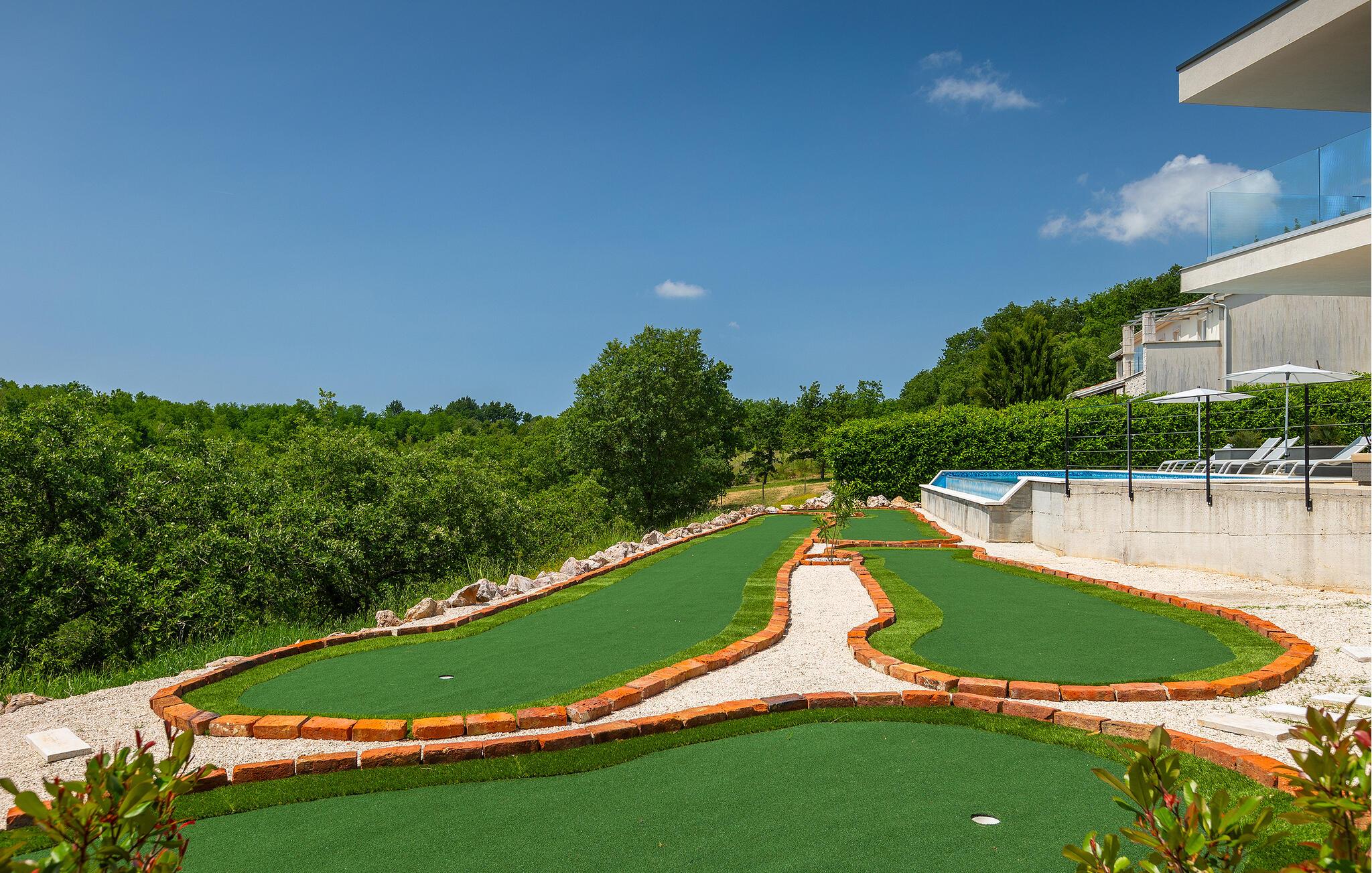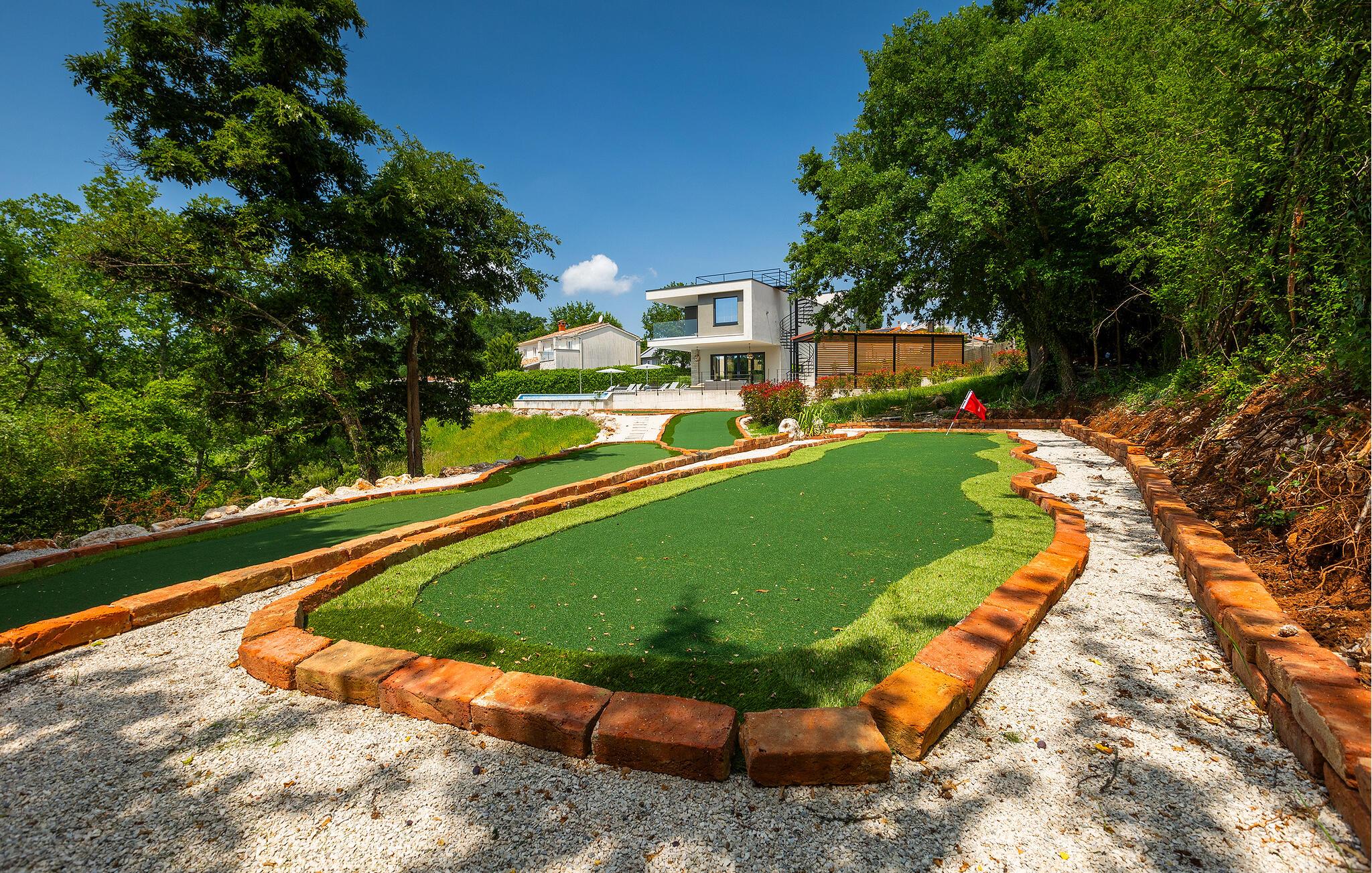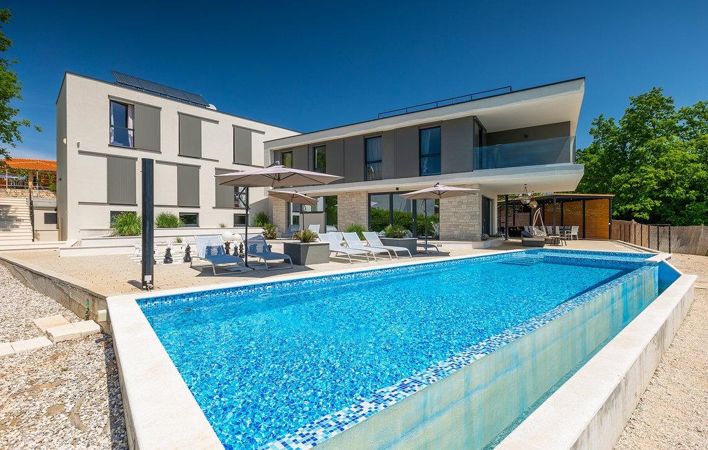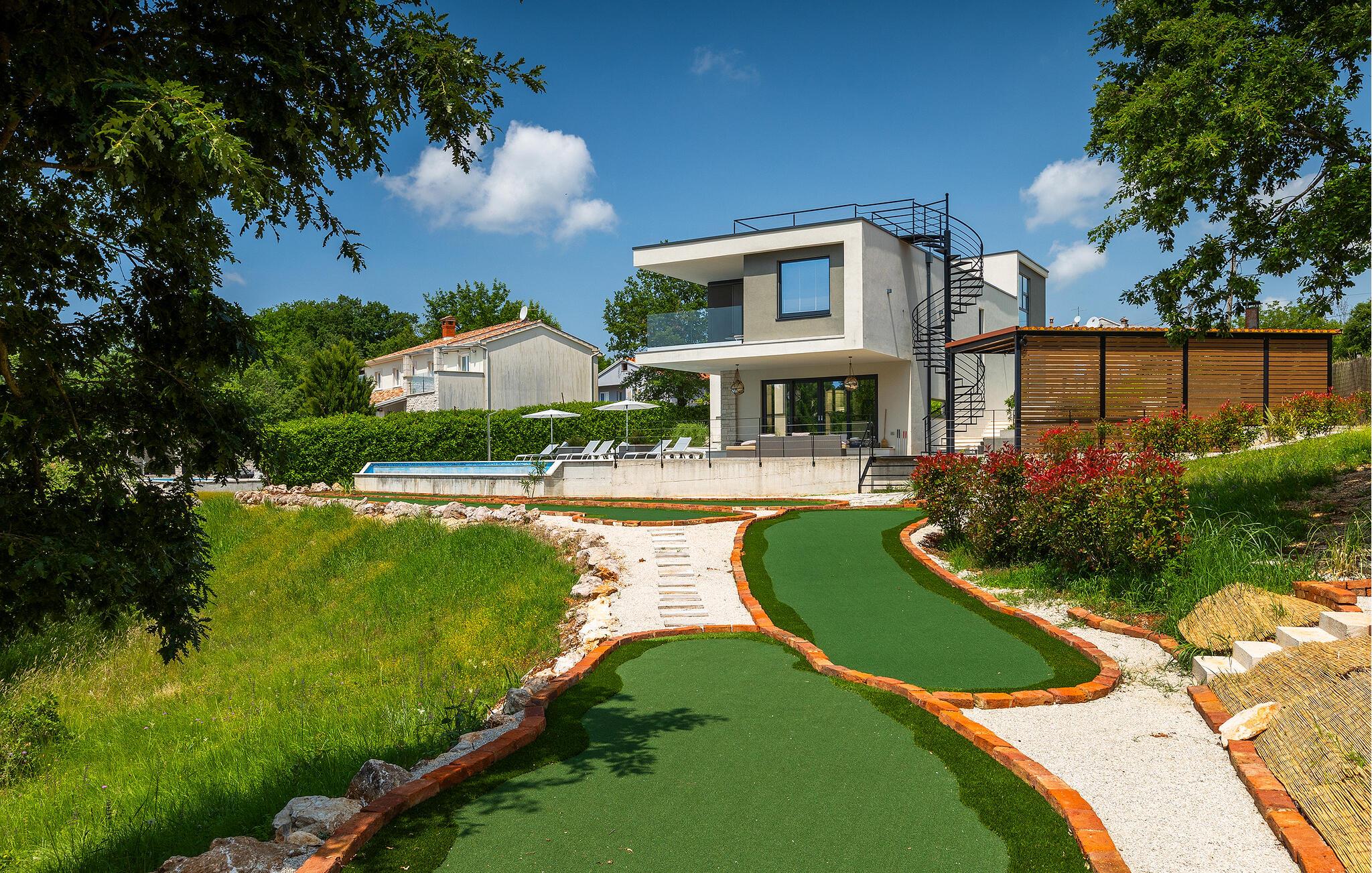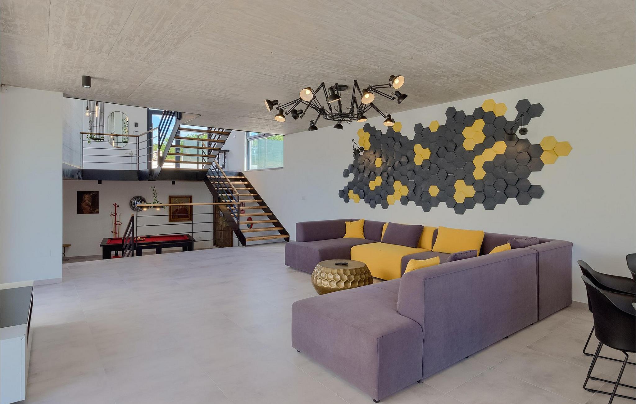 Leder du efter en stor og moderne villa, der kan rumme op til 14 personer og har en stor pool, så behøver du ikke lede længere. Villa Grande Barbara tilbyder alt dette og mere. Denne villa er designet efter alle moderne arkitektoniske principper, især ved brug af glas, stål og armeret beton for at gøre den både til et kunstværk og en fuldt funktionel feriedestination. Villaens have er rummelig med en stor pool og et udendørs skaksæt. Forfrisk dig selv i poolen eller nyd solen på liggestolene omkring poolen. I haven er der også en overdækket spiseplads til måltider, som du kan tilberede på grillen. Slap af med familie og venner i skyggen af den overdækkede terrasse på varme sommerdage. På første sal i villaen er der en stue, en spisestue og et køkken. I kælderen finder du et billardrum og et rum med projektor, hvor du kan se din yndlingsserie på en stor væg. Du finder afslapning i i alt syv soveværelser. To af dem er på anden sal, to på anden sal og tre på mezzaninen, hvoraf den ene er master soveværelset. Tre soveværelser er dobbeltværelser og fire soveværelser er enkeltværelser. Alle på nær to soveværelser har deres eget badeværelse. To værelser deler et stort badeværelse med hver sin adgang til badeværelset. Denne villa er perfekt til en ferie med familie og venner, som du længe har drømt om. Villa Grande Barbara er ikke et festhus. Villa Grande Barbara ligger i udkanten af en lille istrisk landsby, omgivet af fredelig og malerisk natur, væk fra turistattraktioner. Kunne du tænke dig at udforske omgivelserne? Istriens vejnet er fremragende. Besøg de bedste byer på kysten og inde i Istrien, som kun er en kort køretur væk gennem det smukke istriske landskab. Hver kilometer vil fortrylle dig. Du kan planlægge dagsture til kystbyerne Pula, Rovinj og Porec eller køre ind i landet og udforske Motovun, Groznjan og Vodnjan. Hvert af disse steder er rigt på kulturarv og historiske monumenter, som du kan udforske i timevis. Brijuni National Park ligger kun en kort bådtur fra Pula. Prøv at besøge det og nyd den smukke natur. Er du en gourmet? Den nærmeste restaurant, hvor du kan udforske det lokale istriske køkken, ligger kun få minutters gang fra villaen. Området er berømt for fremragende trøfler, så fænomenale umami-måltider er garanteret.