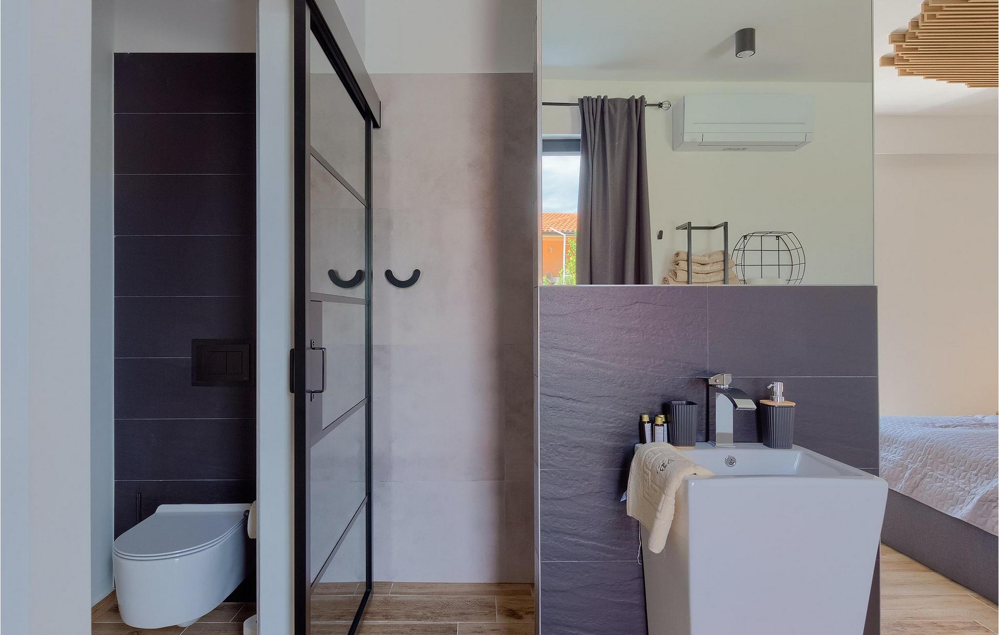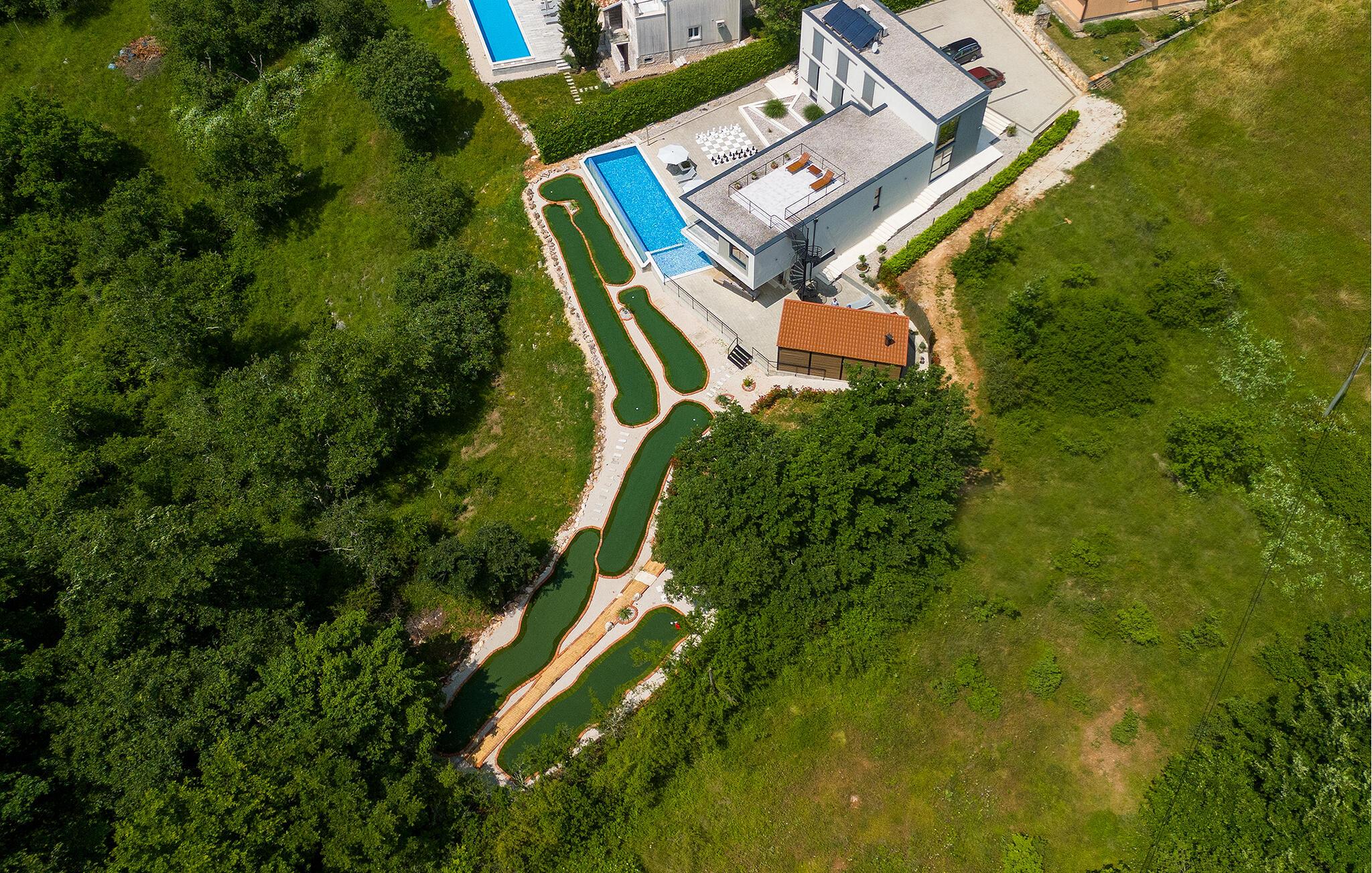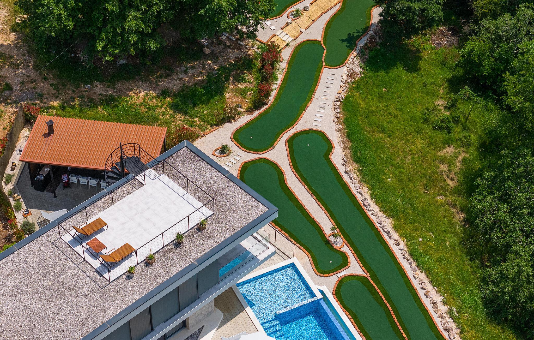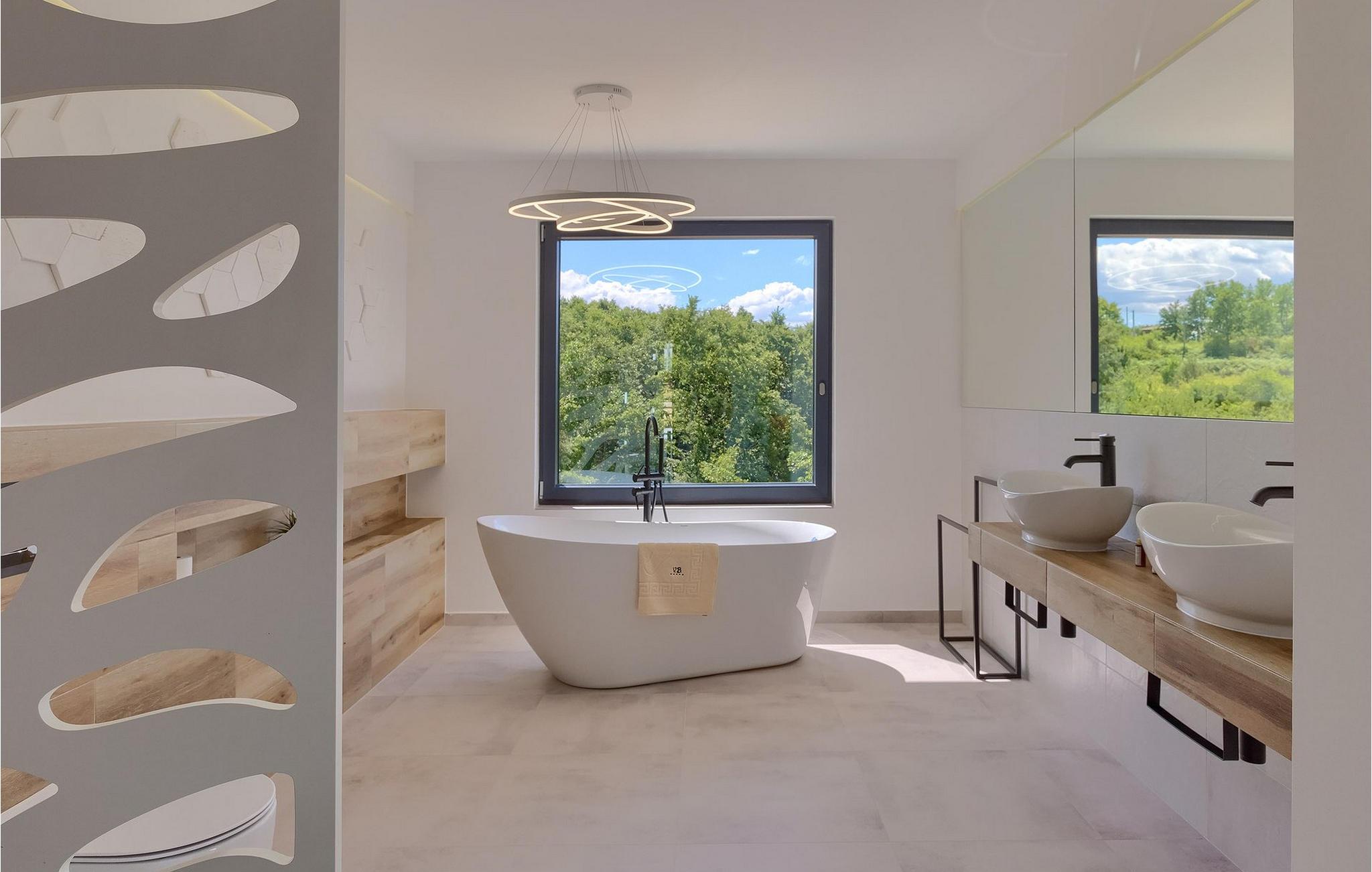 Leder du efter en stor og moderne villa, der kan rumme op til 14 personer og har en stor pool, så behøver du ikke lede længere. Villa Grande Barbara tilbyder alt dette og mere. Denne villa er designet efter alle moderne arkitektoniske principper, især ved brug af glas, stål og armeret beton for at gøre den både til et kunstværk og en fuldt funktionel feriedestination. Villaens have er rummelig med en stor pool og et udendørs skaksæt. Forfrisk dig selv i poolen eller nyd solen på liggestolene omkring poolen. I haven er der også en overdækket spiseplads til måltider, som du kan tilberede på grillen. Slap af med familie og venner i skyggen af den overdækkede terrasse på varme sommerdage. På første sal i villaen er der en stue, en spisestue og et køkken. I kælderen finder du et billardrum og et rum med projektor, hvor du kan se din yndlingsserie på en stor væg. Du finder afslapning i i alt syv soveværelser. To af dem er på anden sal, to på anden sal og tre på mezzaninen, hvoraf den ene er master soveværelset. Tre soveværelser er dobbeltværelser og fire soveværelser er enkeltværelser. Alle på nær to soveværelser har deres eget badeværelse. To værelser deler et stort badeværelse med hver sin adgang til badeværelset. Denne villa er perfekt til en ferie med familie og venner, som du længe har drømt om. Villa Grande Barbara er ikke et festhus. Villa Grande Barbara ligger i udkanten af en lille istrisk landsby, omgivet af fredelig og malerisk natur, væk fra turistattraktioner. Kunne du tænke dig at udforske omgivelserne? Istriens vejnet er fremragende. Besøg de bedste byer på kysten og inde i Istrien, som kun er en kort køretur væk gennem det smukke istriske landskab. Hver kilometer vil fortrylle dig. Du kan planlægge dagsture til kystbyerne Pula, Rovinj og Porec eller køre ind i landet og udforske Motovun, Groznjan og Vodnjan. Hvert af disse steder er rigt på kulturarv og historiske monumenter, som du kan udforske i timevis. Brijuni National Park ligger kun en kort bådtur fra Pula. Prøv at besøge det og nyd den smukke natur. Er du en gourmet? Den nærmeste restaurant, hvor du kan udforske det lokale istriske køkken, ligger kun få minutters gang fra villaen. Området er berømt for fremragende trøfler, så fænomenale umami-måltider er garanteret.