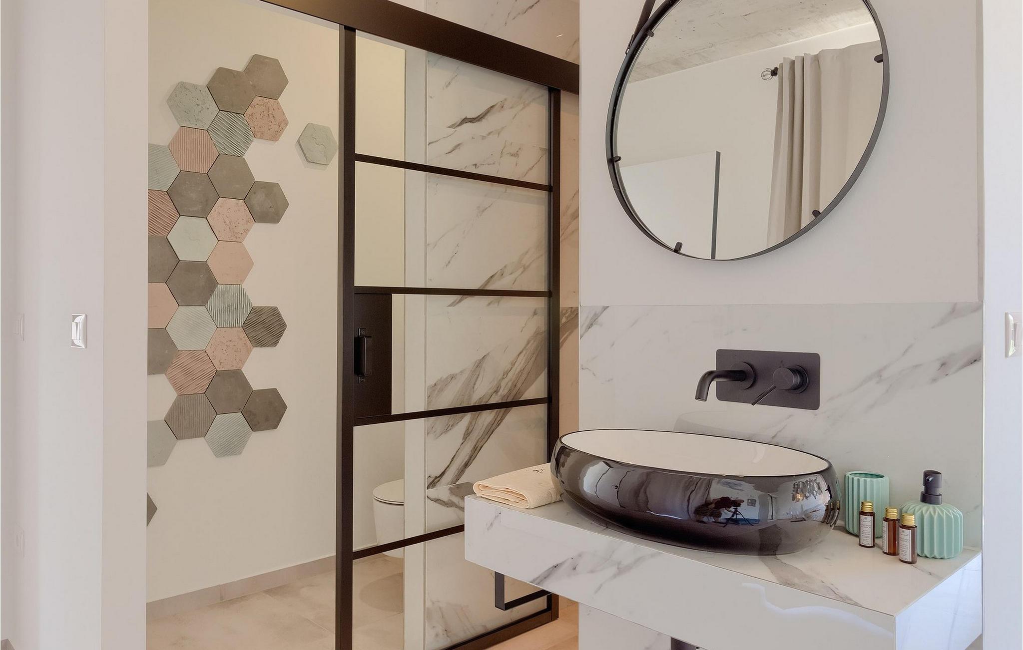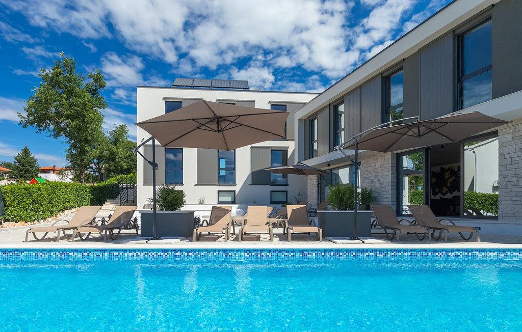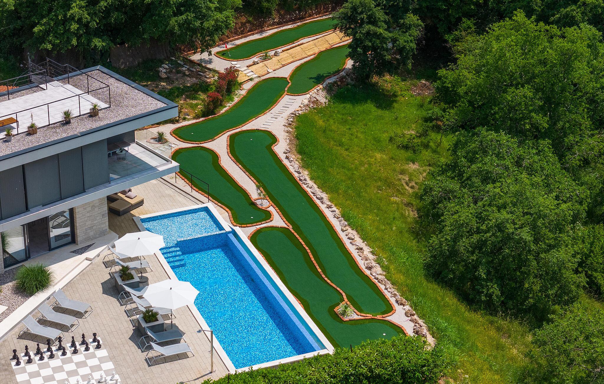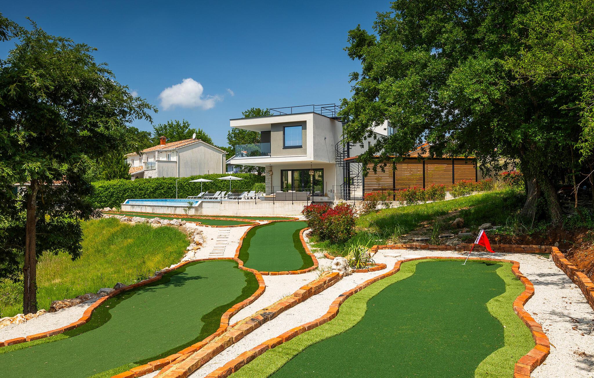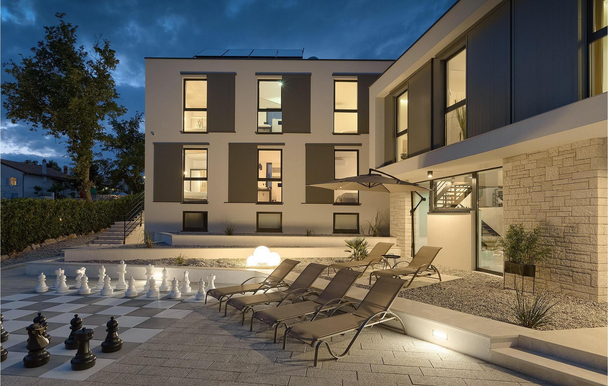 Leder du efter en stor og moderne villa, der kan rumme op til 14 personer og har en stor pool, så behøver du ikke lede længere. Villa Grande Barbara tilbyder alt dette og mere. Denne villa er designet efter alle moderne arkitektoniske principper, især ved brug af glas, stål og armeret beton for at gøre den både til et kunstværk og en fuldt funktionel feriedestination. Villaens have er rummelig med en stor pool og et udendørs skaksæt. Forfrisk dig selv i poolen eller nyd solen på liggestolene omkring poolen. I haven er der også en overdækket spiseplads til måltider, som du kan tilberede på grillen. Slap af med familie og venner i skyggen af den overdækkede terrasse på varme sommerdage. På første sal i villaen er der en stue, en spisestue og et køkken. I kælderen finder du et billardrum og et rum med projektor, hvor du kan se din yndlingsserie på en stor væg. Du finder afslapning i i alt syv soveværelser. To af dem er på anden sal, to på anden sal og tre på mezzaninen, hvoraf den ene er master soveværelset. Tre soveværelser er dobbeltværelser og fire soveværelser er enkeltværelser. Alle på nær to soveværelser har deres eget badeværelse. To værelser deler et stort badeværelse med hver sin adgang til badeværelset. Denne villa er perfekt til en ferie med familie og venner, som du længe har drømt om. Villa Grande Barbara er ikke et festhus. Villa Grande Barbara ligger i udkanten af en lille istrisk landsby, omgivet af fredelig og malerisk natur, væk fra turistattraktioner. Kunne du tænke dig at udforske omgivelserne? Istriens vejnet er fremragende. Besøg de bedste byer på kysten og inde i Istrien, som kun er en kort køretur væk gennem det smukke istriske landskab. Hver kilometer vil fortrylle dig. Du kan planlægge dagsture til kystbyerne Pula, Rovinj og Porec eller køre ind i landet og udforske Motovun, Groznjan og Vodnjan. Hvert af disse steder er rigt på kulturarv og historiske monumenter, som du kan udforske i timevis. Brijuni National Park ligger kun en kort bådtur fra Pula. Prøv at besøge det og nyd den smukke natur. Er du en gourmet? Den nærmeste restaurant, hvor du kan udforske det lokale istriske køkken, ligger kun få minutters gang fra villaen. Området er berømt for fremragende trøfler, så fænomenale umami-måltider er garanteret.
