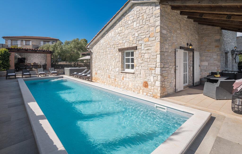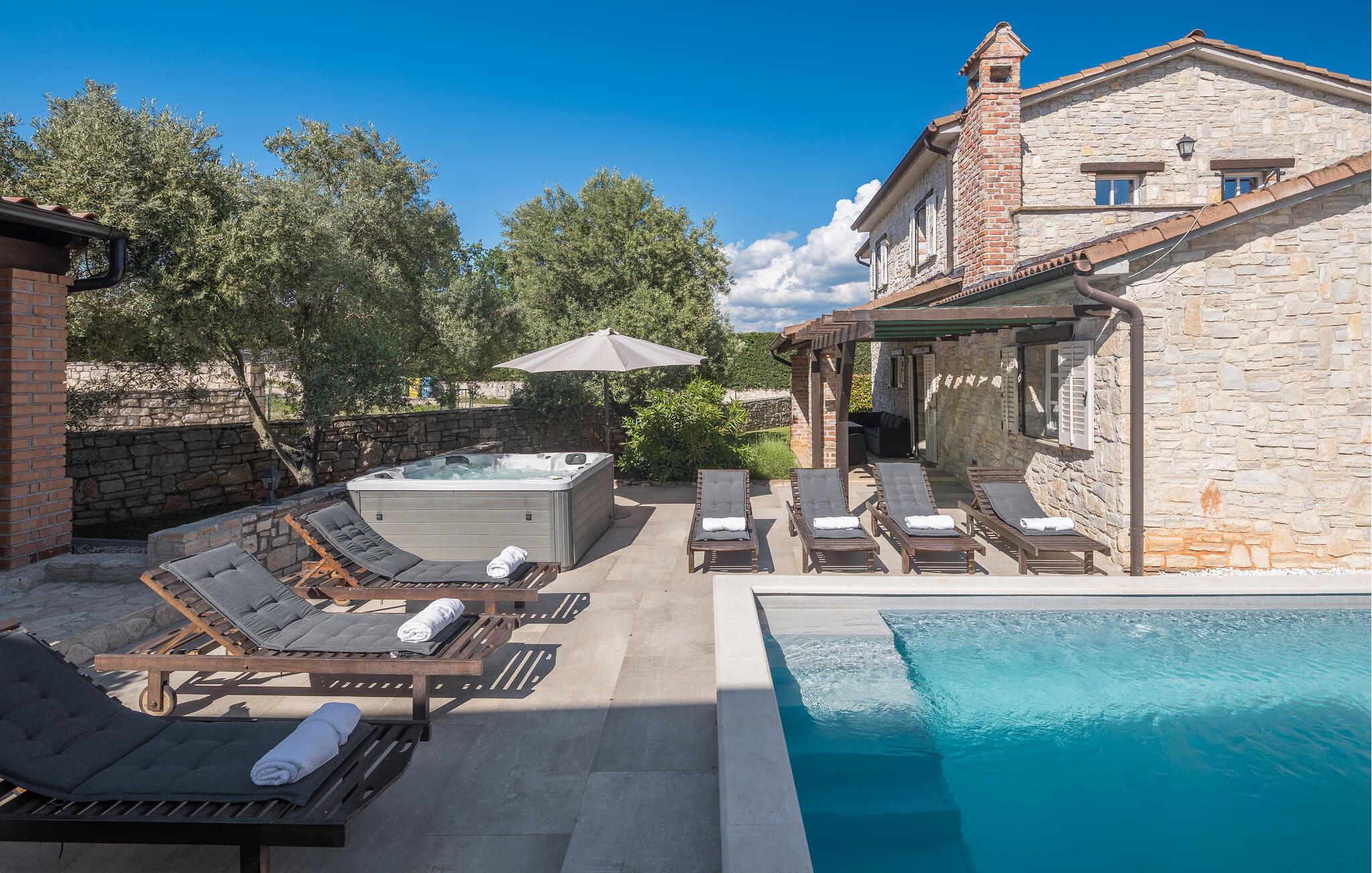 Feriehuset placeret i det indre af halvøen Istrien, ikke langt fra det populære feriested Rovinjsko Selo. Fra bakkerne har I en skøn udsigt ud til Rovinj-øgruppen. Her kan I undslippe hverdagens stress, for stedet er et ideelt område at lade sig fortrylle af bakker, vinmarker og de grønne skove. Cyklister og vandrere kan udforske de udmærkede skovstier. Kører I mod nord, kan I nå Limski-kanalen eller fuglereservatet ved Palud . Den gamle bydel i Rovinj fortryller med sine smalle brostensbelagte gader, små pladser og rige historie fra den venetianske æra. For de badende og for soldyrkerne venter der et krystalklart hav i skjulte bugter og små strande. Her er, kort sagt, alt, hvad hjertet måtte begære.