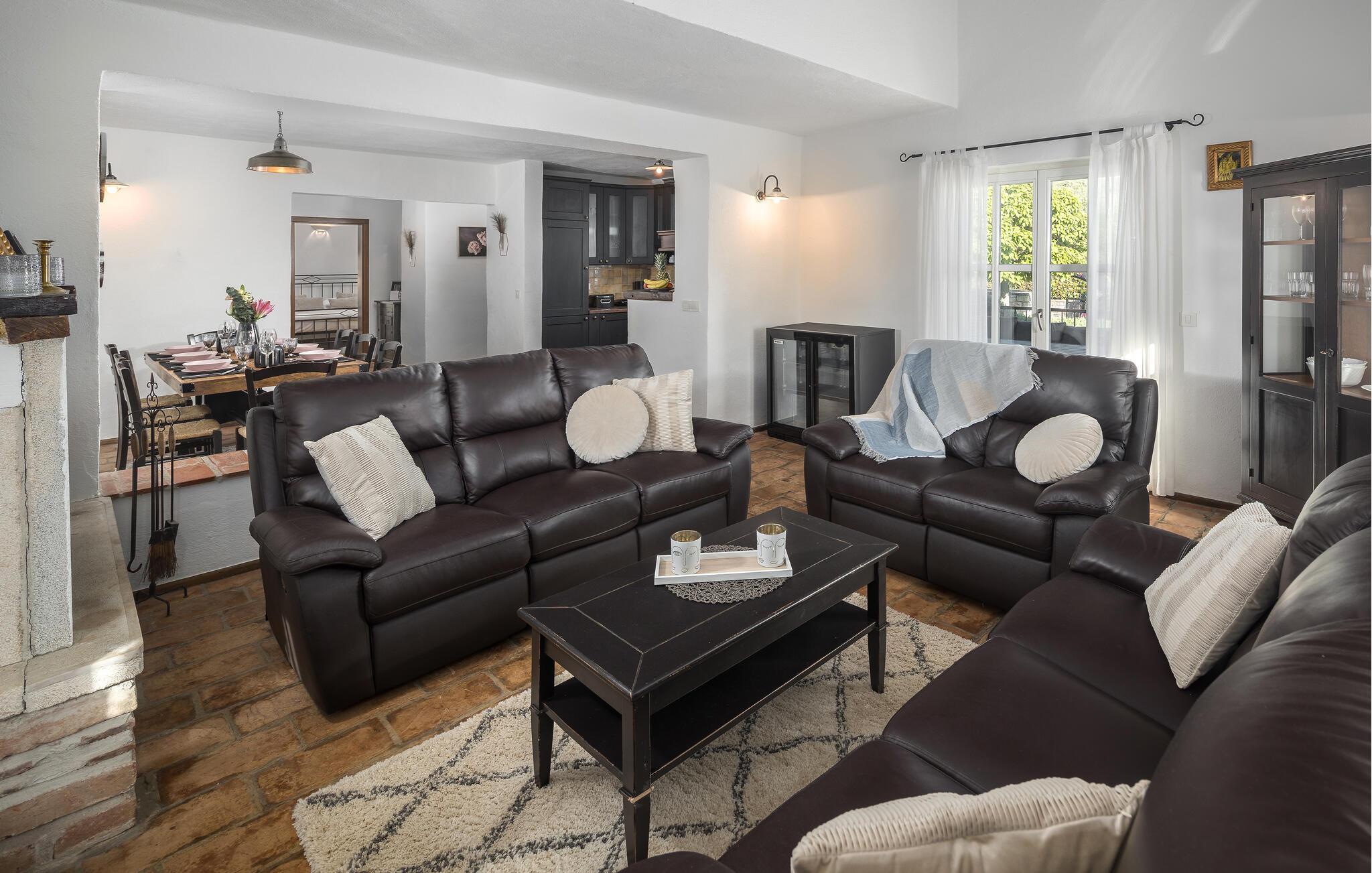 Glæd jer til jeres ferie i dette vidunderlige hus, som er kendetegnet ved høj kvalitet og en skøn, hjemlig atmosfære. Det moderne stenhus er fordelt på to etager og tilbyder jer privatliv med flere soveværelser med private badeværelser. Takket være den smukke indretning vil I også tilbringe en masse kvalitetstid i stuen, som er åbent forbundet med spisebordet og det fuldt udstyrede køkken.