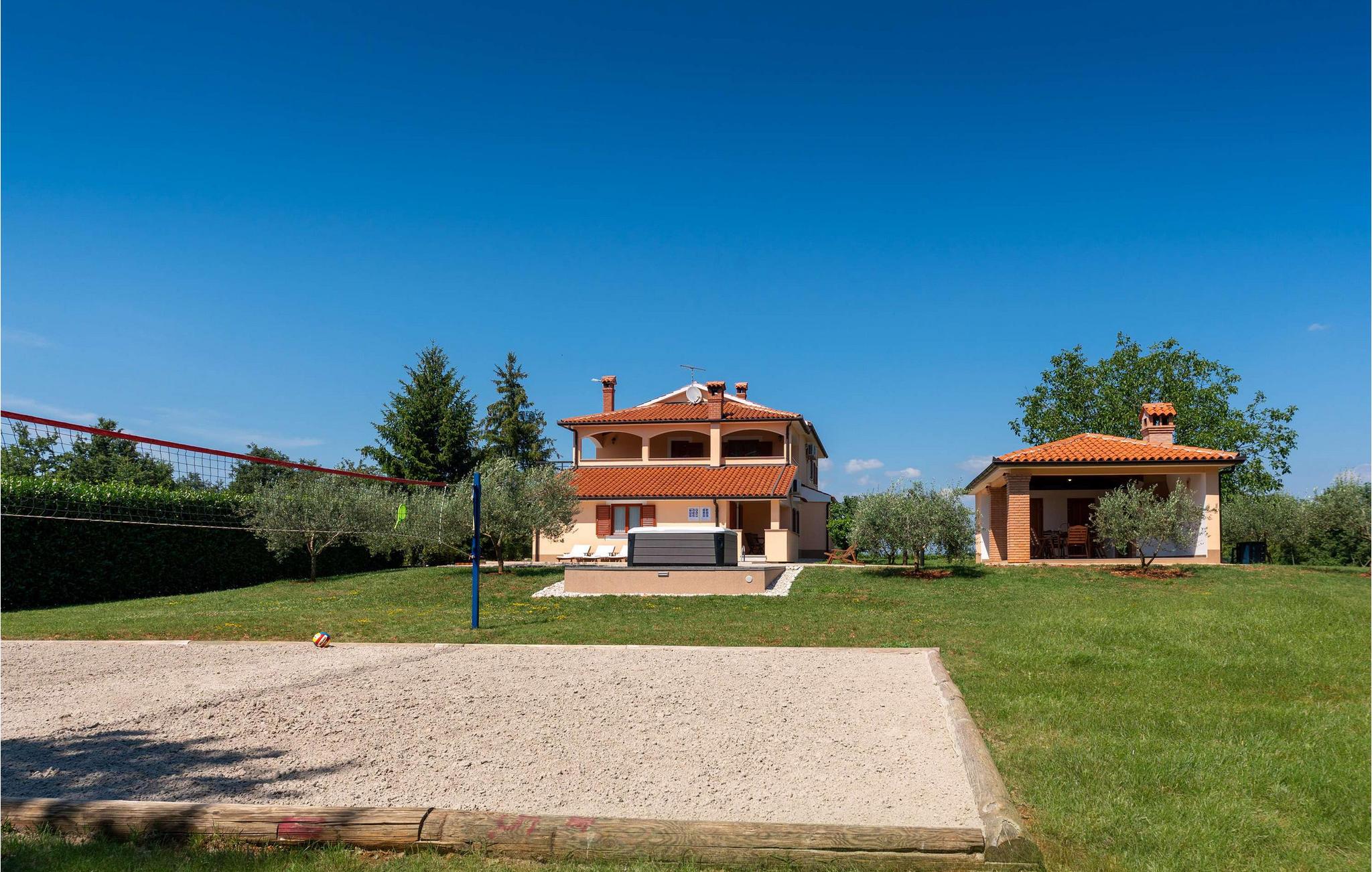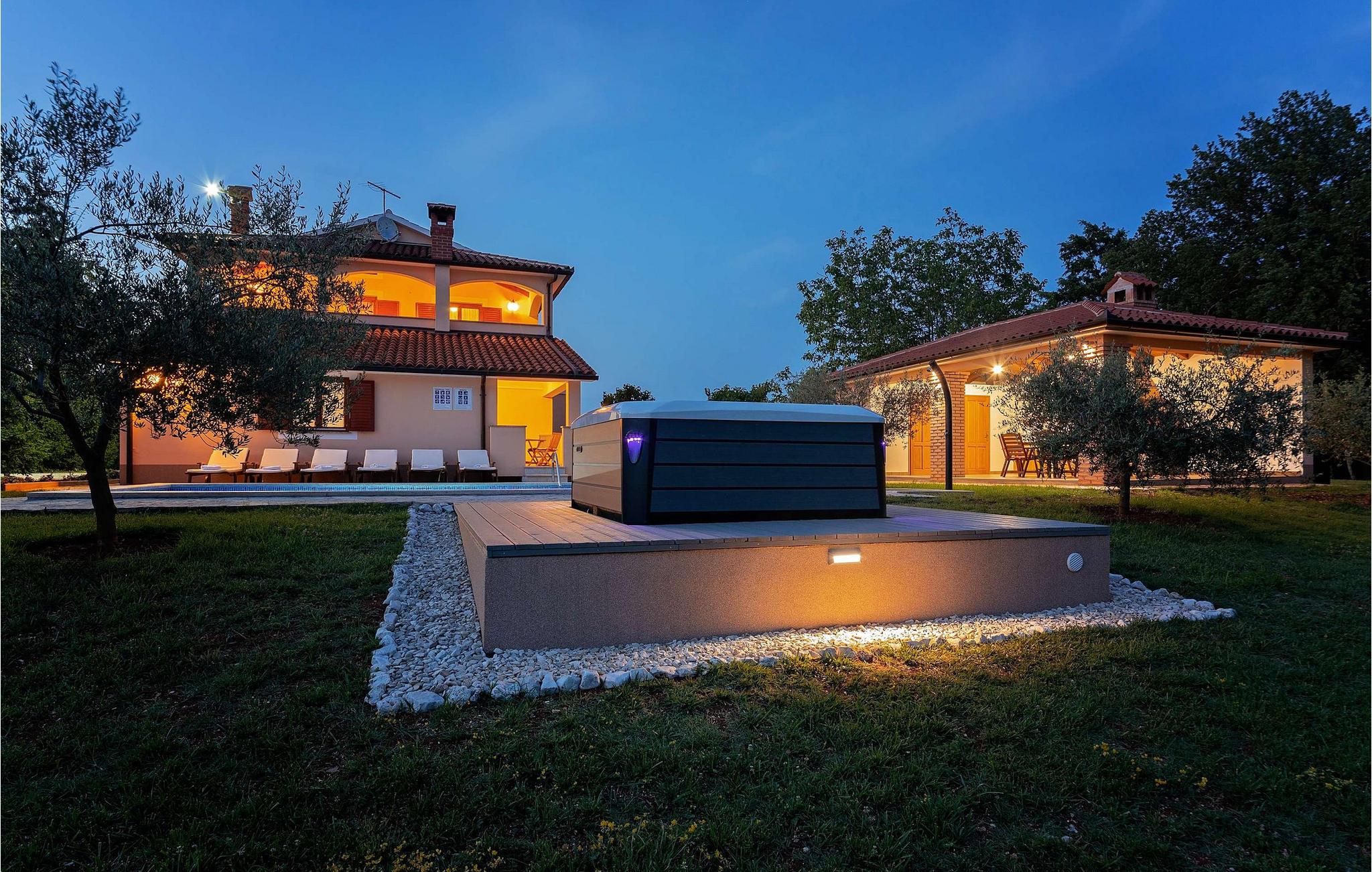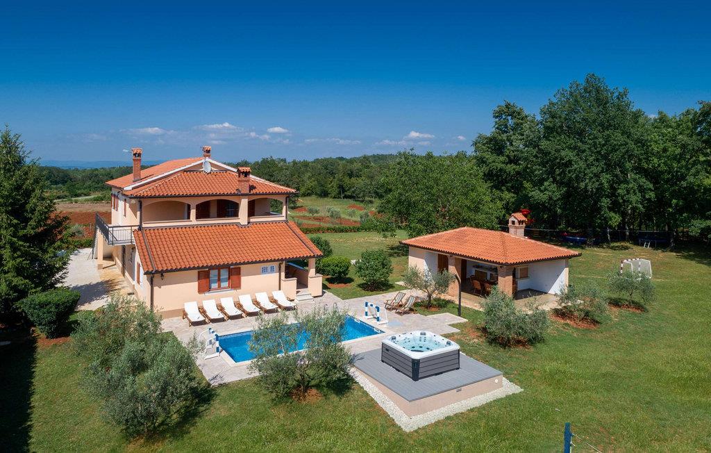 Denne charmerende villa er beliggende i det maleriske sted Vranici, kun 15 km fra turistcentret i Porec og kun 5 km fra den fantastiske by Motovun. Markeder, restauranter, apoteker og andre faciliteter er placeret i disse byer og er let tilgængelige. Den smukke Villa Vranici består af to pænt indrettede soveværelser med dobbeltsenge, samt to mindre soveværelser med separate enkeltsenge, der kan sættes sammen, hvis det er nødvendigt. Den byder på optimal soveplads til 8 personer, men kan også rumme yderligere 2 gæster på den komfortable fold-ud sofa i en af de charmerende stuer. På de 150 m² store boligarealer i den fuldt klimatiserede Villa Vranici har gæsterne i alt to veludstyrede køkkener, to badeværelser og to charmerende stuer samt en 25 m² stor balkon og en 4000 m² have til deres rådighed. Den smukke pool er opvarmet, og der er også en udendørs jacuzzi til ekstra afslapning. Derudover inkluderer underholdningstilbuddet på Villa Vranici en legeplads med sand, en kælkebakke, gynger samt en trampolin og en træhytte. Til fritidsformål er en badmintonbane med udstyr og 6 cykler til rådighed gratis. Kæledyr er tilladt på denne ejendom efter ejerens skøn eller mod et gebyr. Bemærk venligst, at denne ejendom ikke accepterer ungdomsgrupper eller polterabends. En ungdomsgruppe i denne ejendom består af personer under 30 år. Book ikke denne ejendom, hvis du er en ungdomsgruppe eller polterabend, da din reservation vil blive afvist efter reservationen, hvilket også kan være tilfældet ved ankomst til overnatningsstedet eller under dit ophold, og du vil ikke modtage en refusion.