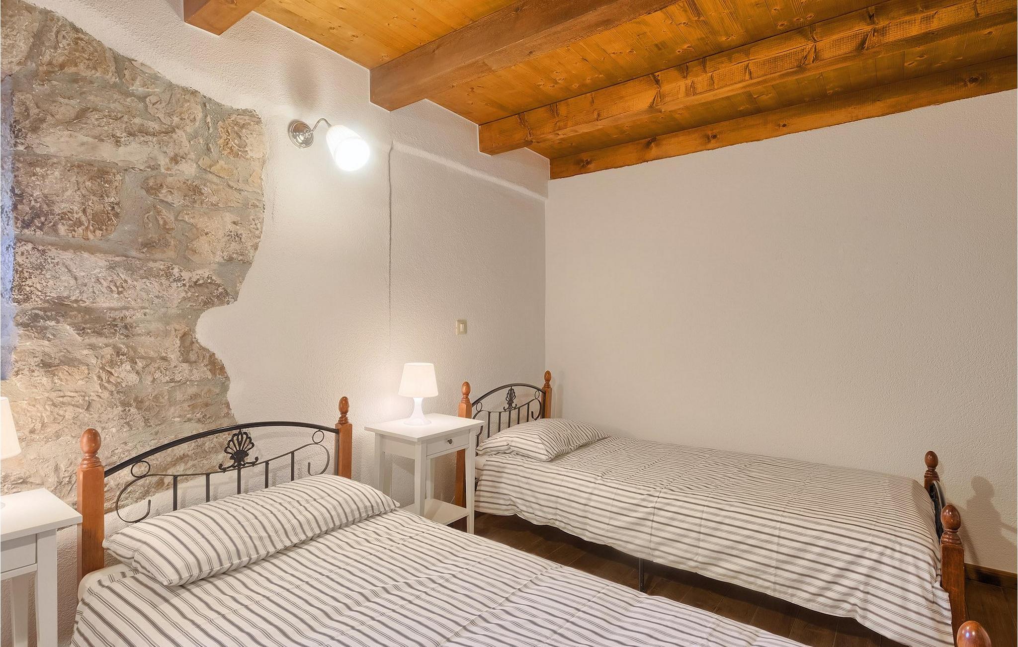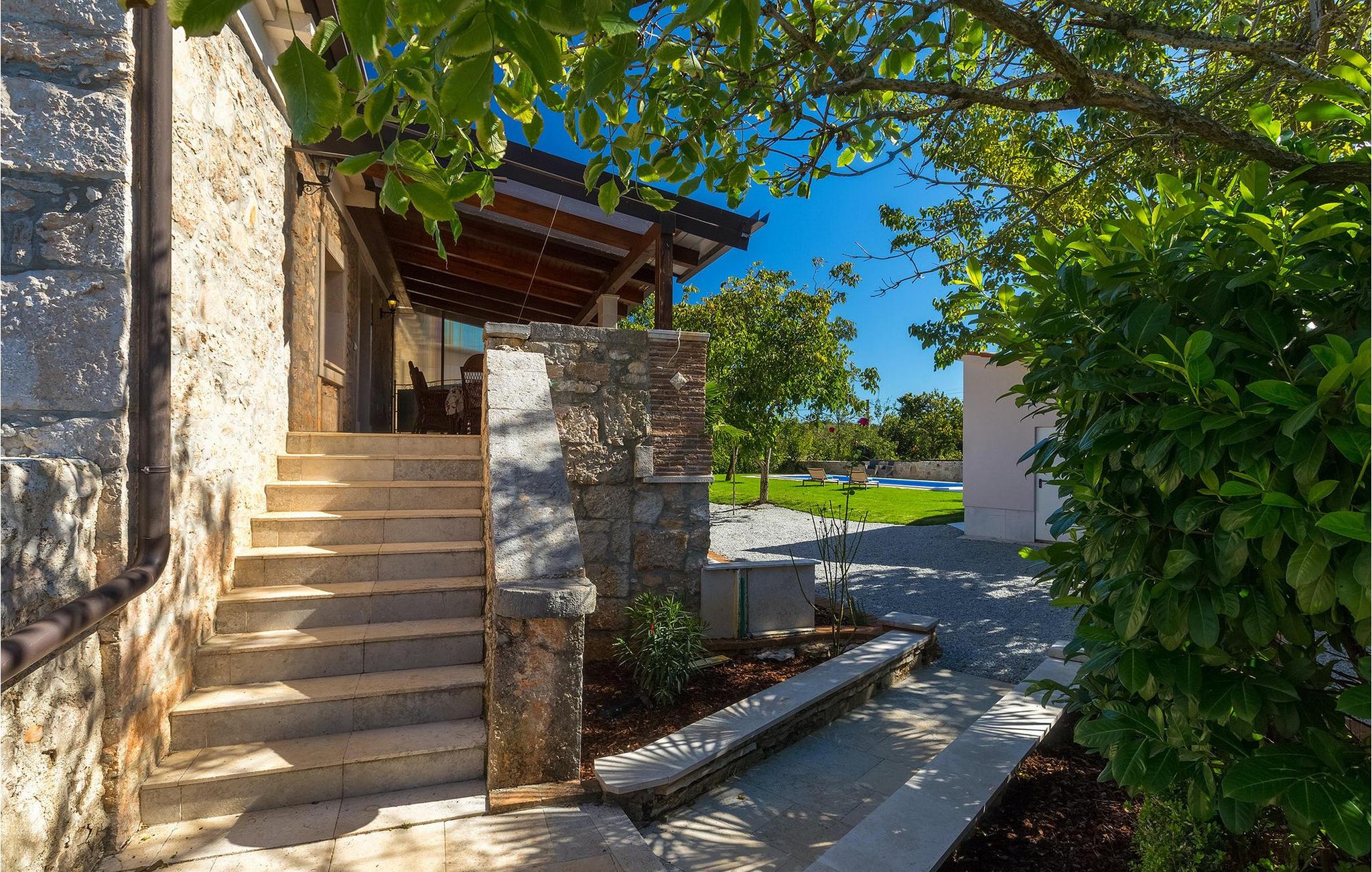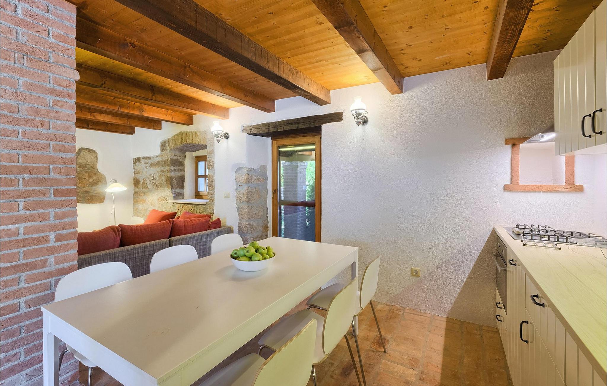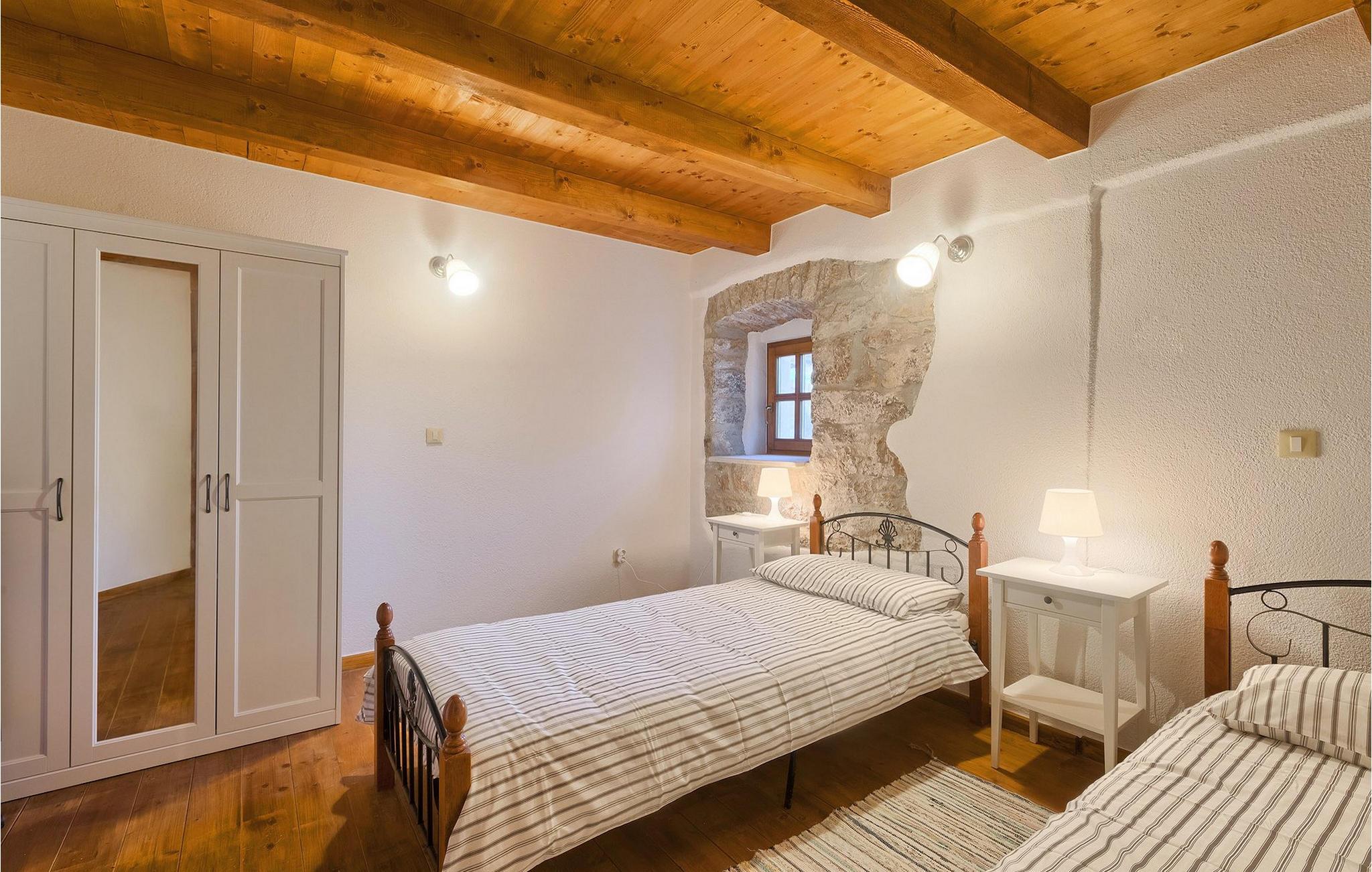 Villa Casa Mira ligger i det fredelige område Visnjan, tæt på magiske middelalderbyer i det centrale Istrien. Villaen står på en helt lukket ejendom, med en dejlig privat pool på. Et attraktivt træk ved denne villa er, at den består af to separate dele, ovenpå og nedenunder, hver for 4+1 gæster, hvilket er perfekt til to familier eller to grupper, der kan lide at tilbringe deres ferie sammen, men foretrækker privatlivets fred med hensyn til indkvartering. Begge lejligheder har egen indgang, fuldt udstyret køkken, stue, badeværelse og to soveværelser. På hver etage er der et soveværelse med dobbeltseng og et soveværelse med to separate senge. I hele villaen er der træ- og stenelementer, der giver et særligt rustikt præg til huset. En hyggelig veranda med udsigt over haven ligger på øverste etage og en terrasse i stueetagen, der tilbyder en udendørs spiseplads sammen med en kulgrill, hvor du kan tilberede dine yndlingsmåltider. I den store have, orienteret mod syd, er den private pool, mens en mindre del af haven, mod nord, er reserveret til trampolinen, så de yngste kan have det sjovere.Villa Casa Mira ligger i område af Višnjan, ca. 17 km væk fra Porec. I gaderne i den gamle del af Višnjan kan du opleve ånden i den rige historiske arv. Omkring Višnjan kan du smage lækker mad i istriske taverner og prøve typiske istriske specialiteter. Višnjan er også kendt for sit internationalt anerkendte astronomiske observatorium og som en af de sidste udveje i Istrien for autoktone istriske kvæg (boškarin). Den smukke by Porec er kendt for kultur, turisme, sport og fritid. Under dit ophold i Istrien besøg Euphrasius Basilica Complex (Unesco Heritage) i den gamle bydel i Porec eller bare nyd på den første strand. Placeringen af villaen er det perfekte udgangspunkt for at opdage de dejlige små byer i det centrale Istrien - Vižinada, Motovun, Grožnjan og mange andre.