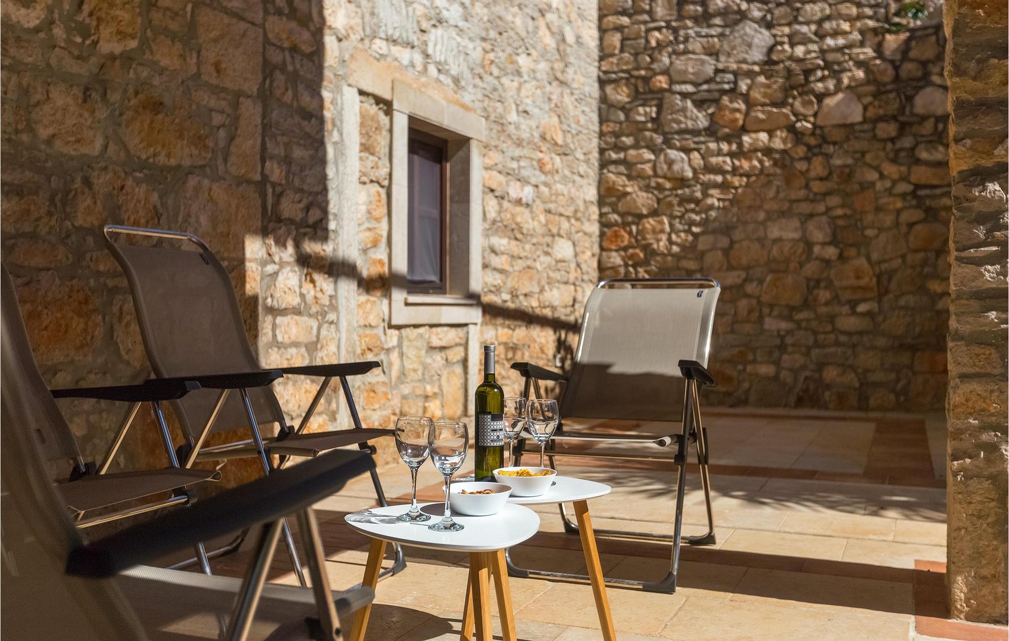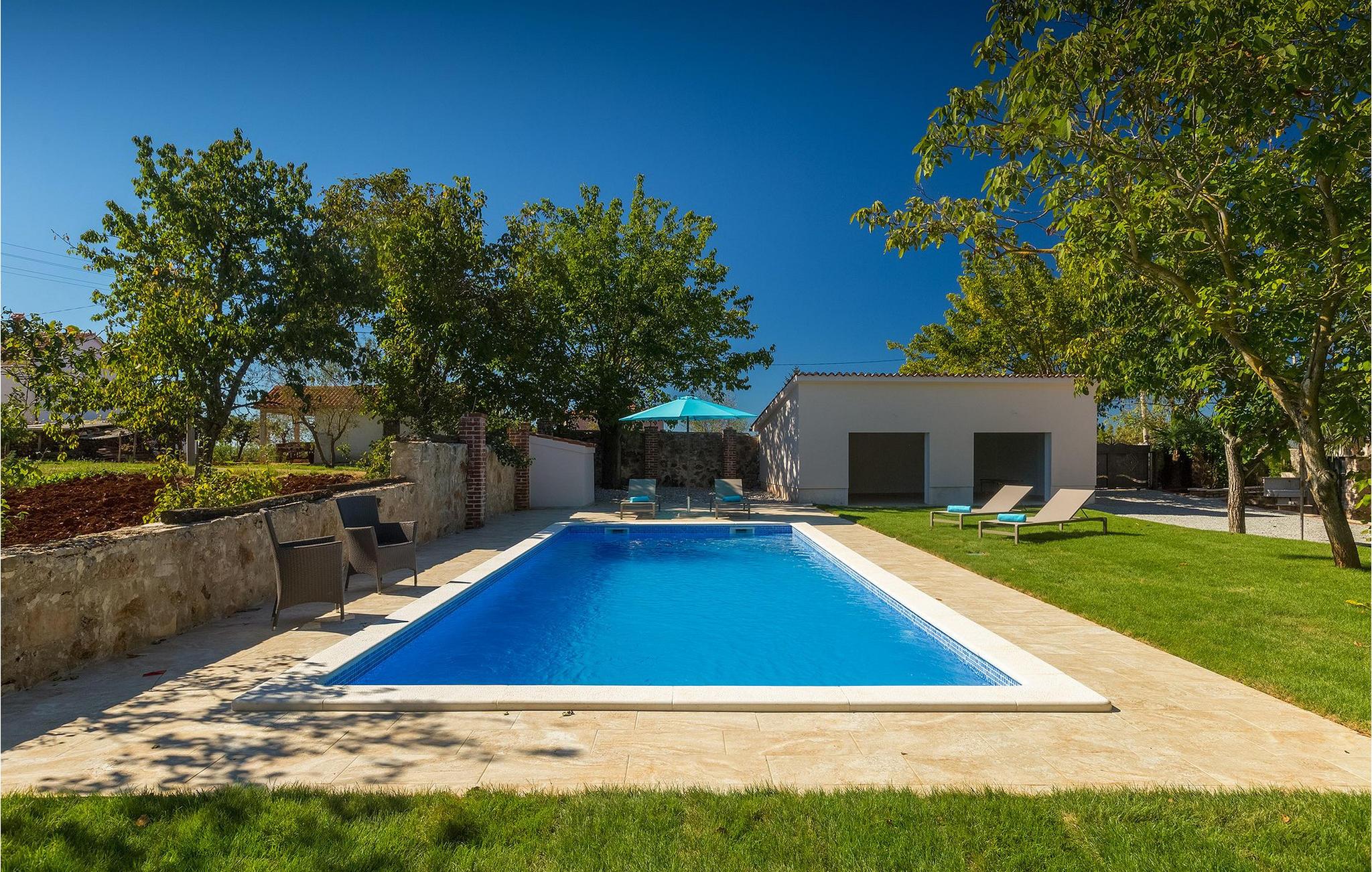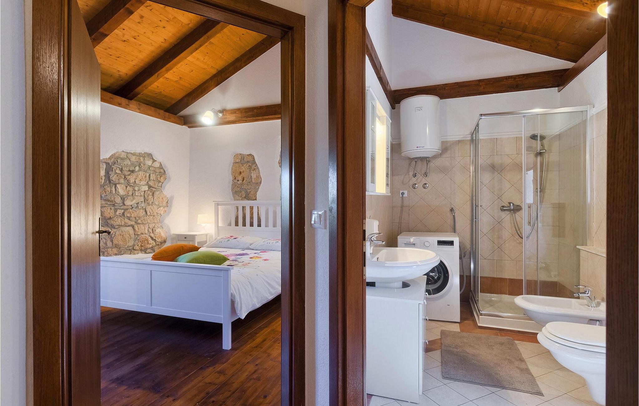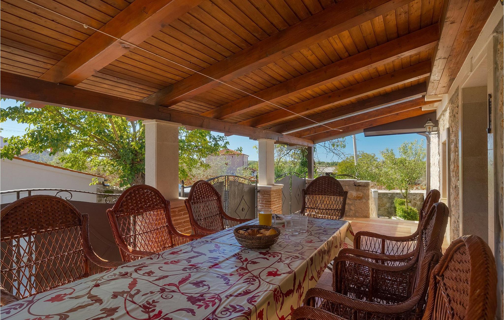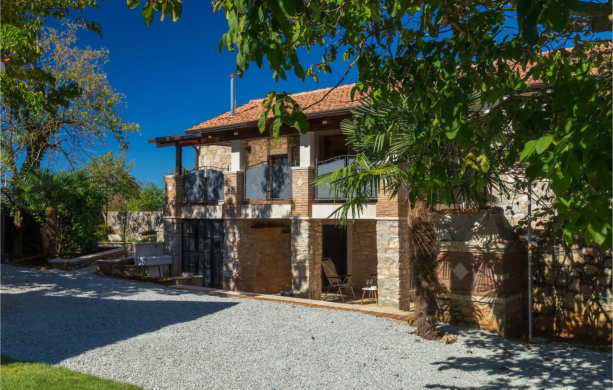 Villa Casa Mira ligger i det fredelige område Visnjan, tæt på magiske middelalderbyer i det centrale Istrien. Villaen står på en helt lukket ejendom, med en dejlig privat pool på. Et attraktivt træk ved denne villa er, at den består af to separate dele, ovenpå og nedenunder, hver for 4+1 gæster, hvilket er perfekt til to familier eller to grupper, der kan lide at tilbringe deres ferie sammen, men foretrækker privatlivets fred med hensyn til indkvartering. Begge lejligheder har egen indgang, fuldt udstyret køkken, stue, badeværelse og to soveværelser. På hver etage er der et soveværelse med dobbeltseng og et soveværelse med to separate senge. I hele villaen er der træ- og stenelementer, der giver et særligt rustikt præg til huset. En hyggelig veranda med udsigt over haven ligger på øverste etage og en terrasse i stueetagen, der tilbyder en udendørs spiseplads sammen med en kulgrill, hvor du kan tilberede dine yndlingsmåltider. I den store have, orienteret mod syd, er den private pool, mens en mindre del af haven, mod nord, er reserveret til trampolinen, så de yngste kan have det sjovere.Villa Casa Mira ligger i område af Višnjan, ca. 17 km væk fra Porec. I gaderne i den gamle del af Višnjan kan du opleve ånden i den rige historiske arv. Omkring Višnjan kan du smage lækker mad i istriske taverner og prøve typiske istriske specialiteter. Višnjan er også kendt for sit internationalt anerkendte astronomiske observatorium og som en af de sidste udveje i Istrien for autoktone istriske kvæg (boškarin). Den smukke by Porec er kendt for kultur, turisme, sport og fritid. Under dit ophold i Istrien besøg Euphrasius Basilica Complex (Unesco Heritage) i den gamle bydel i Porec eller bare nyd på den første strand. Placeringen af villaen er det perfekte udgangspunkt for at opdage de dejlige små byer i det centrale Istrien - Vižinada, Motovun, Grožnjan og mange andre.