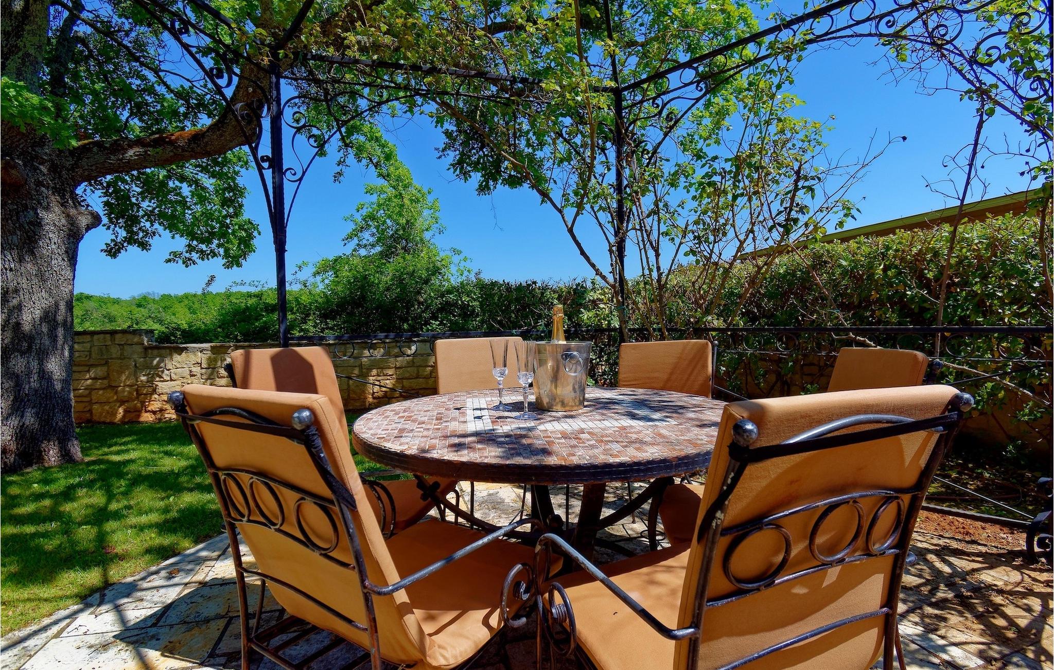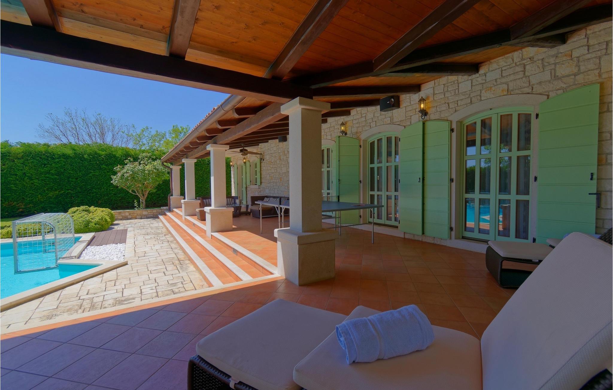 Nyd din ferie i Istrien i den charmerende Villa La Quercia! Den lille charmerende by Visnjan ligger på en bakke blandt det grønne i Istriens vestlige del. Det gamle, latinske navn for Visnjan, Vicinianus, der betyder "tæt på", bemærker vigtigheden af dets nærhed til Porec. Porec ligger kun 12 km væk og byder på en masse steder at se og ting at gøre, fra den gamle bydel med Euphrasius-basilikaen (en del af Unesco-arven), til adskillige restauranter, barer og kulturelle begivenheder. Hvis du bor her, skal du sørge for at besøge Porec. Denne smukke, turistede by er din tid værd! Sørg dog for at udforske mere af, hvad Visnjan har at byde på. Hvis du er interesseret i stjerner og andre himmellegemer, så sørg for at besøge det berømte observatorium i den lille landsby Tican, 3 km fra Visnjan. Bortset fra nogle få cykelstier (Parenzana, der går gennem Visnjan og den såkaldte 29 km lange "stjernesti"), er dette område berømt for sin oeno-gastro-turisme (prøv pršut-traditionel røget skinke, trøfler, indenlandsk vin og oliven olie...) De nærmeste strande ligger i Porec-området, og du kan vælge mellem sand- og stenstrande eller strande med beton.