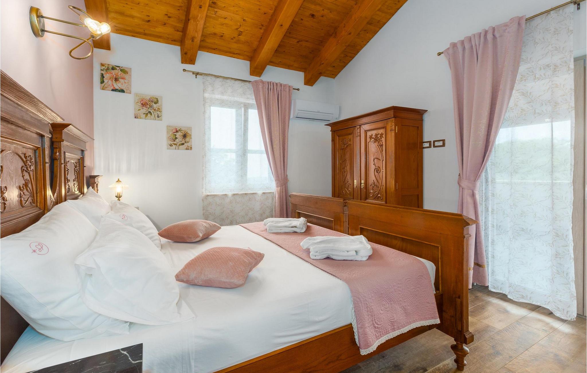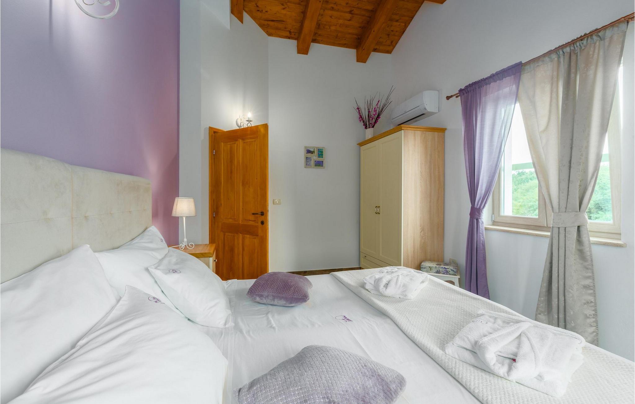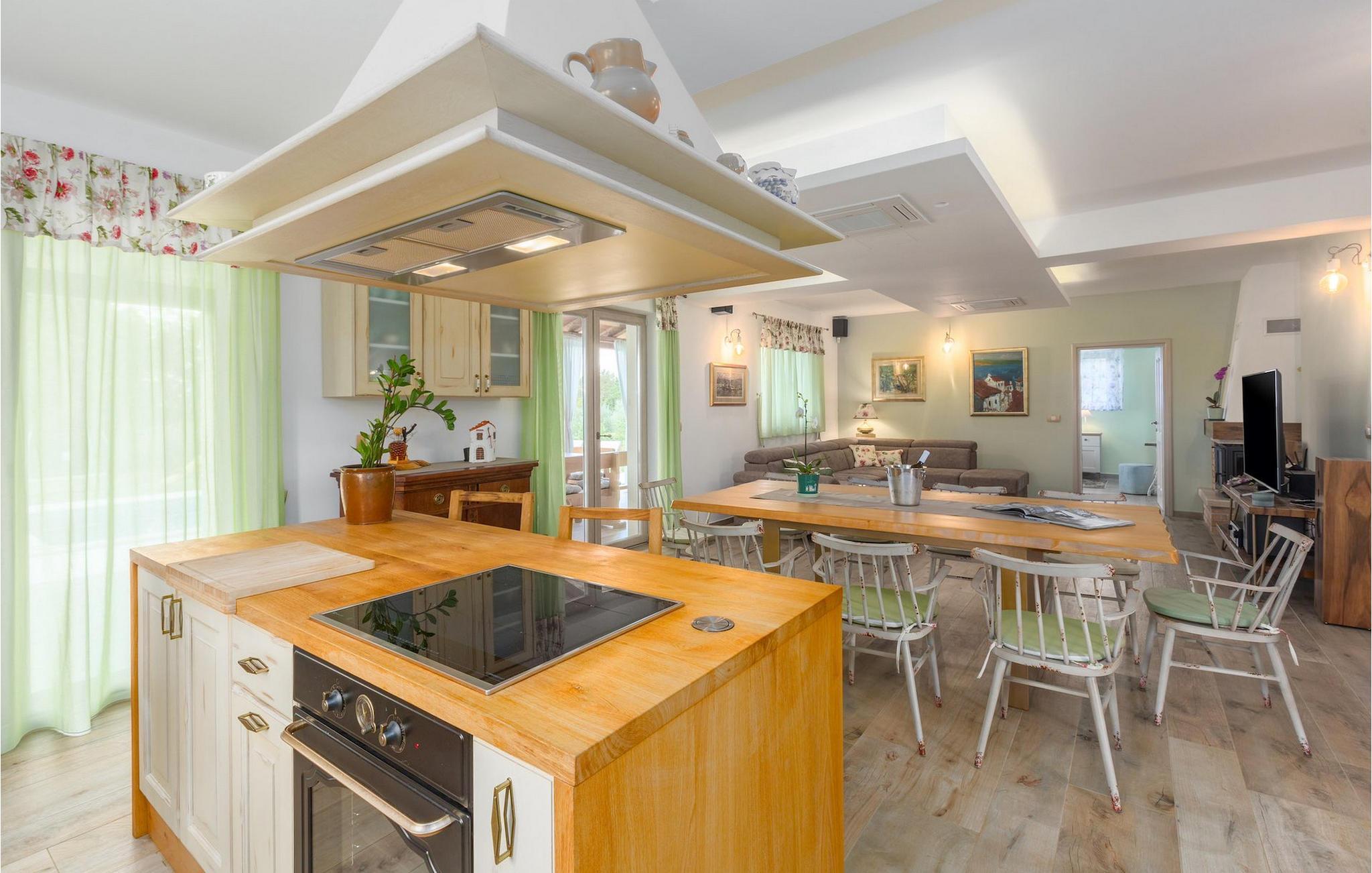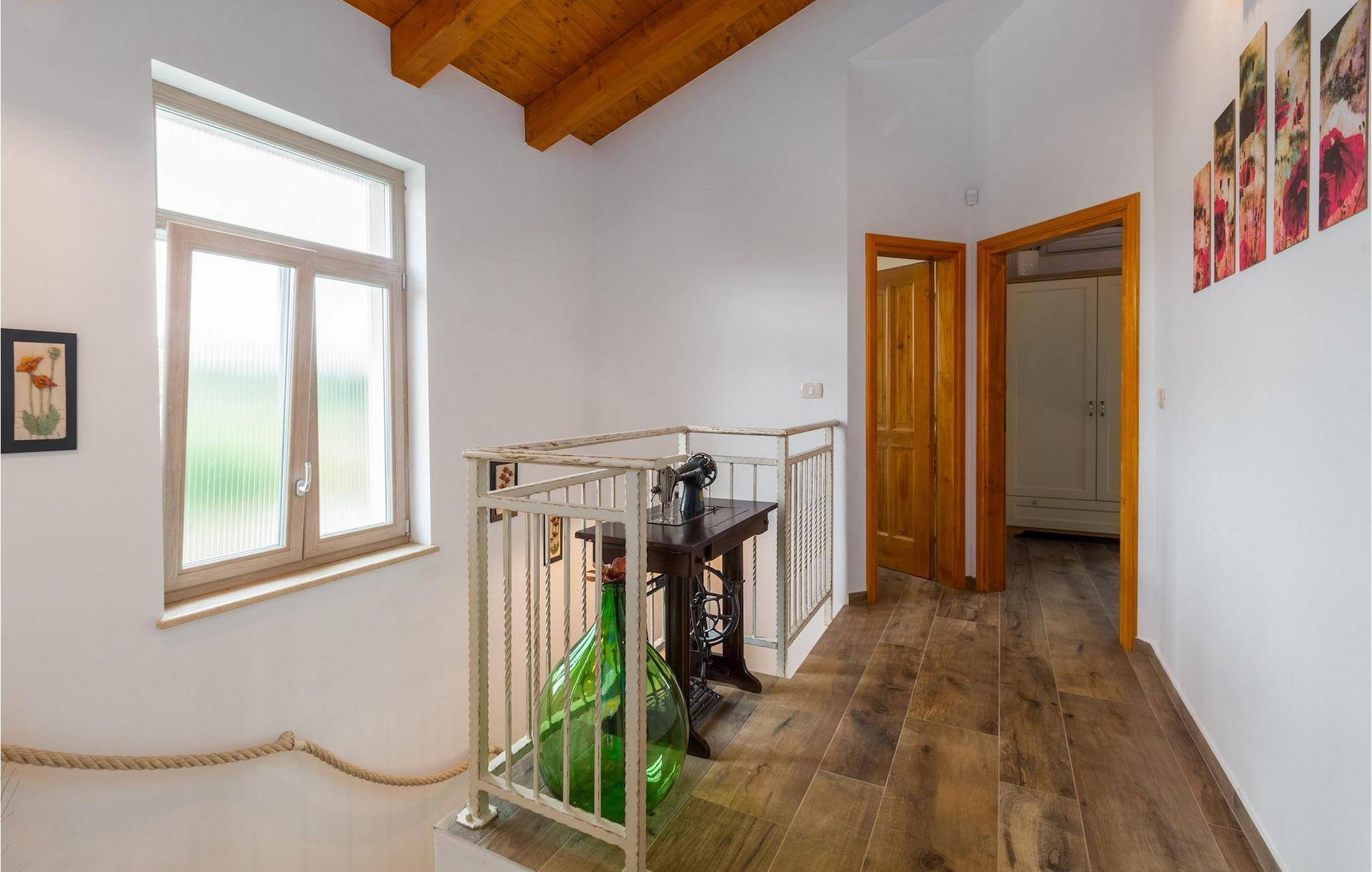 Leder du efter en hyggelig villa på halvøen Istrien med plads nok til op til 8 gæster? Så bør du helt sikkert overveje villa Stella Polaris til din kommende ferie. Mens du nærmer dig denne villa, vil du blive opmærksom på den smukke natur omkring - perfekt til en afslappende tid langt væk fra byens travlhed og menneskemængder. På selve ejendommen er der desuden en olivenlund, som giver villaen en typisk middelhavsfølelse. Inde i villaen byder den hjerteligt indrettede stueetage velkommen i dit sommerhus. Det åbne rum nedenunder, inklusive køkken, spisestue og opholdsstue, med de dejlige, tankevækkende dekorationer vil udløse kærligheden til detaljer i dig. Det fuldt udstyrede køkken er designet i en moderne landlig stil, der matcher spisestedet. I stuen kan du finde dig godt tilpas på sofaen og tænde for noget musik eller fjernsynet. Der er også en pejs til de kolde dage. Udover alt det nævnte byder stueetagen på et soveværelse med eget badeværelse. Et soveværelse i rustik stil ligger ovenpå. Det har ikke kun et ensuite badeværelse, men også en rummelig balkon med møbler og en smuk udsigt. På øverste etage deler yderligere to komfortable soveværelser med adskillelige dobbeltsenge et badeværelse. Alle villaens soveværelser har walk-in regnbruser. På villaens terrasse kan du sidde ned enten på en romantisk havegynge, et loungehjørnesæde eller ved den udendørs spiseplads - især hvis du foretrækker at spise dine måltider i frisk luft. Desuden kan du endda tilberede dine delikatesser på terrassen takket være det udendørs køkken med en grill. For fuld nydelse kan du lægge dig ned på liggestolene ved siden af den forfriskende pool og nyde noget varmt sollys. Haven giver også noget for de mindste - en privat legeplads og en trampolin. Tilbring en afslappende ferie fuld af mindeværdige øjeblikke og book villa Stella Polaris nuI den vestlige del af Istrien nær Porec ligger den lille landsby Visnjan. Gå en tur gennem de brostensbelagte gader i den gamle bydel og undersøg den historiske arv. Tøv ikke med at bede lokalbefolkningen om nogle historielektioner - de vil være ivrige efter at fortælle dig legender om deres hjemby. Går du rundt i den gamle bydel eller mens du udforsker området omkring Visnjan, støder du på traditionelle taverner, hvor du kan smage delikatesser fra det istriske køkken og kvalitetsvine. Nogle af dem falder ind under kategorien agriturisme, hvilket betyder, at der kun tilbydes deres egne landbrugsprodukter der - at sætte sig ned og spise der er en helt speciel oplevelse. Sørg for at besøge det berømte astronomiske observatorium. Lad det inspirere dig til at kigge op i himlen og nyde. Også, ikke langt væk fra Visnjan kan du gå og se Baredine-grotten eller Zarecki krov-vandfaldet - du vil blive bedøvet over den udsigt, du vil få. Og gå selvfølgelig ikke glip af muligheden for at besøge to af de mest populære steder på Istriens kyst - Porec og Novigrad. Der kan du tilbringe en smuk, afslappende dag på stranden eller en dejlig aften i bymidterne.