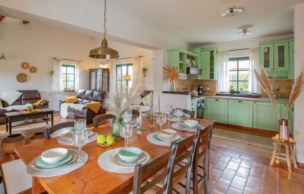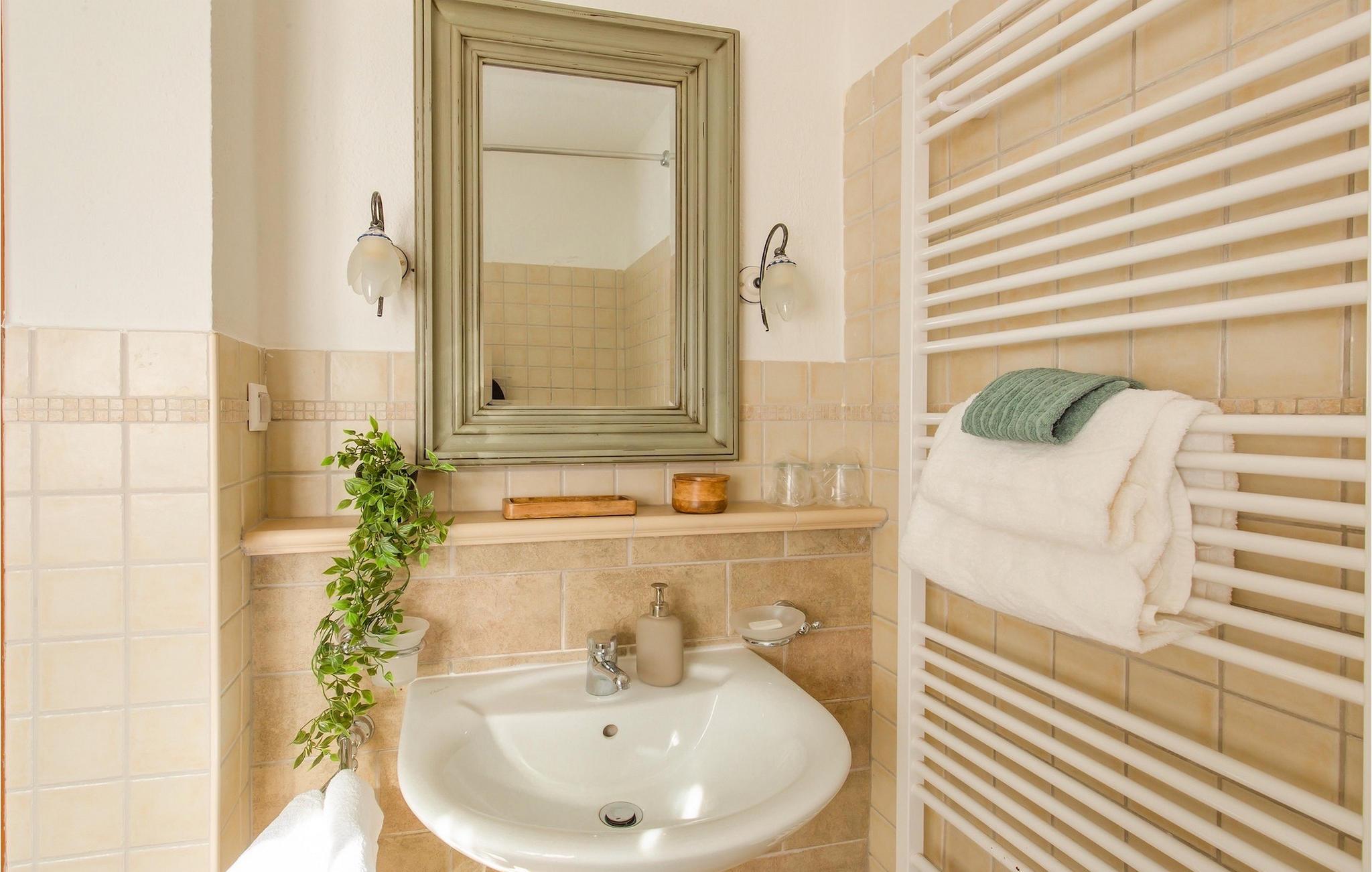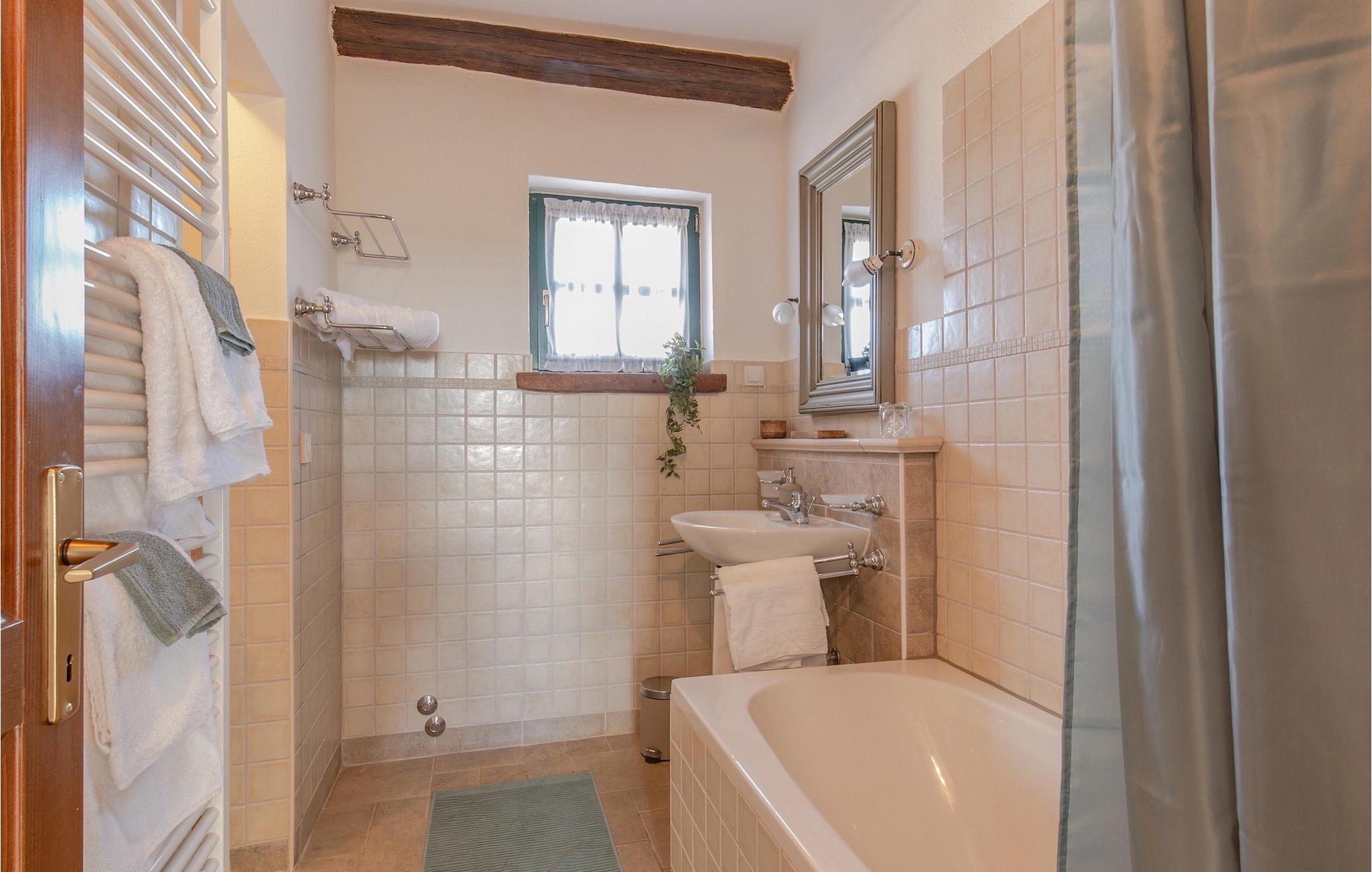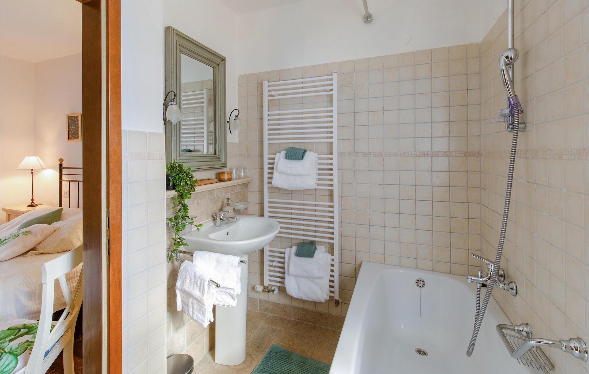 Hvis du leder efter en villa til en fredelig ferie, er Villa Silene, et istrisk stenhus med et hjerte, det ideelle valg for dig. Den charmerende villa byder på fire soveværelser for op til otte gæster. På første sal i villaen er der tre soveværelser. Alle tre værelser er lyse og komfortable, træbjælker og møbler giver dem en særlig flair. Hvert værelse har aircondition, en dobbeltseng og udgang til balkonen. Det ene soveværelse har eget badeværelse, mens de to andre bruger et fælles badeværelse, som også er placeret på samme etage. Et af soveværelserne har også et tv. I villaens stueetage finder du et soveværelse med aircondition og eget badeværelse, dobbeltseng og udgang til terrassen. Stueetagen byder også på opholdsstue med TV og pejs, som er forbundet med spisestuen og et fuldt udstyret rummeligt køkken i et åbent rum koncept. Hele dette rum har aircondition. Stenvæggene i interiøret, den store pejs og træbjælkerne, der strækker sig over lofterne, giver en særlig form for charme til villaen.