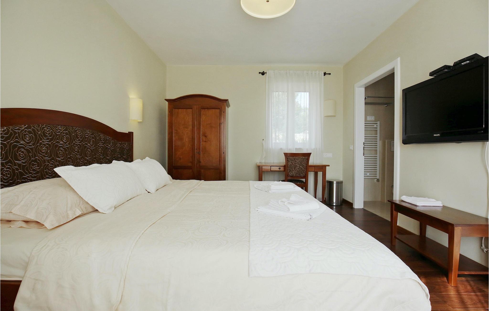 Villa Babudri ligger i den lille landsby Babudri, nær Visnjan. Med i alt 220 kvadratmeter boligareal byder den på plads til op til 10 personer og et kærligt møbleret interiør. Villaen i to etager er indrettet i rustikt design og formidler en følelse af hygge og komfort. Stueetagen består af en rummelig stue med tv, spiseplads og fuldt udstyret køkken. I stueetagen er der et soveværelse med eget badeværelse og et wellnessområde med sauna og liggestole, hvor du kan slappe af. Ovenpå finder du tre soveværelser med ensuite badeværelser og en terrasse, hvor du kan nyde privatlivets fred og smuk udsigt over omgivelserne. Vil du holde din ferie i solen, er der en stor privat pool foran villaen, hvor du kan forfriske dig på varme sommerdage. Kun få skridt væk ligger en overdækket terrasse, hvor du kan tilberede lækre måltider til din familie og venner. Så gå ikke glip af denne mulighed og book Villa Babudri nu og tilbring den bedste tid i Kroatien!
