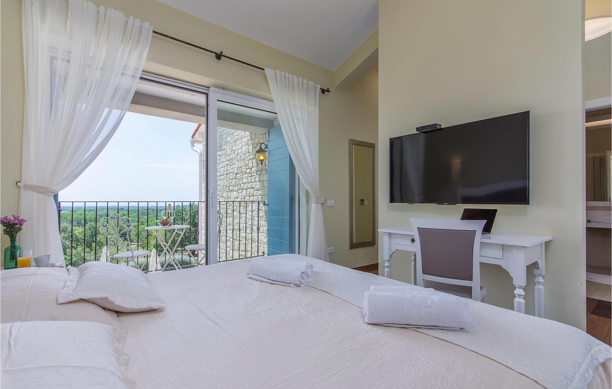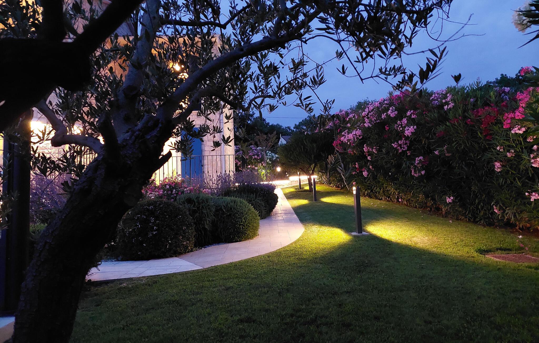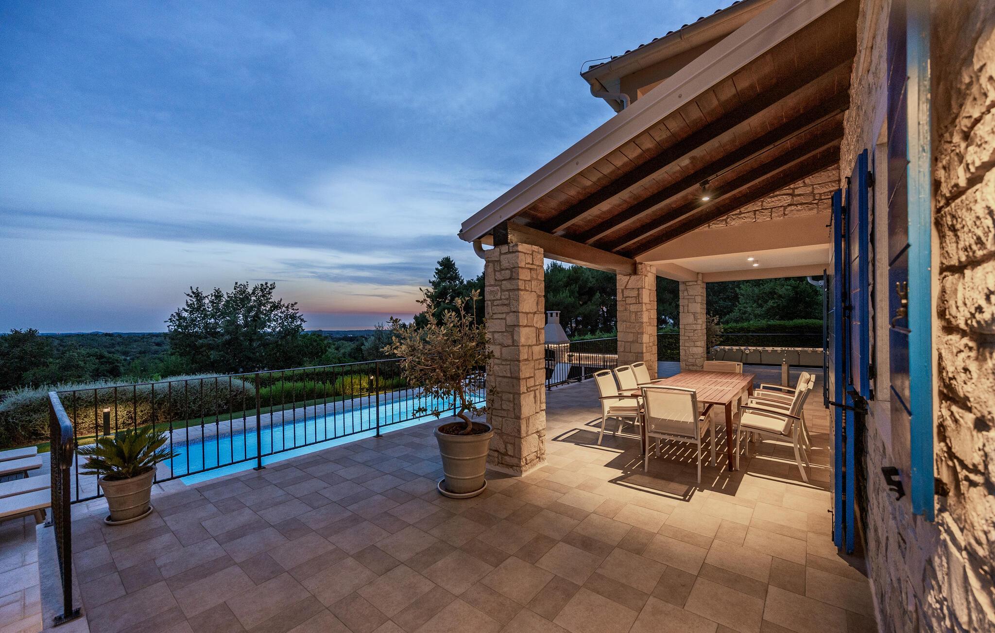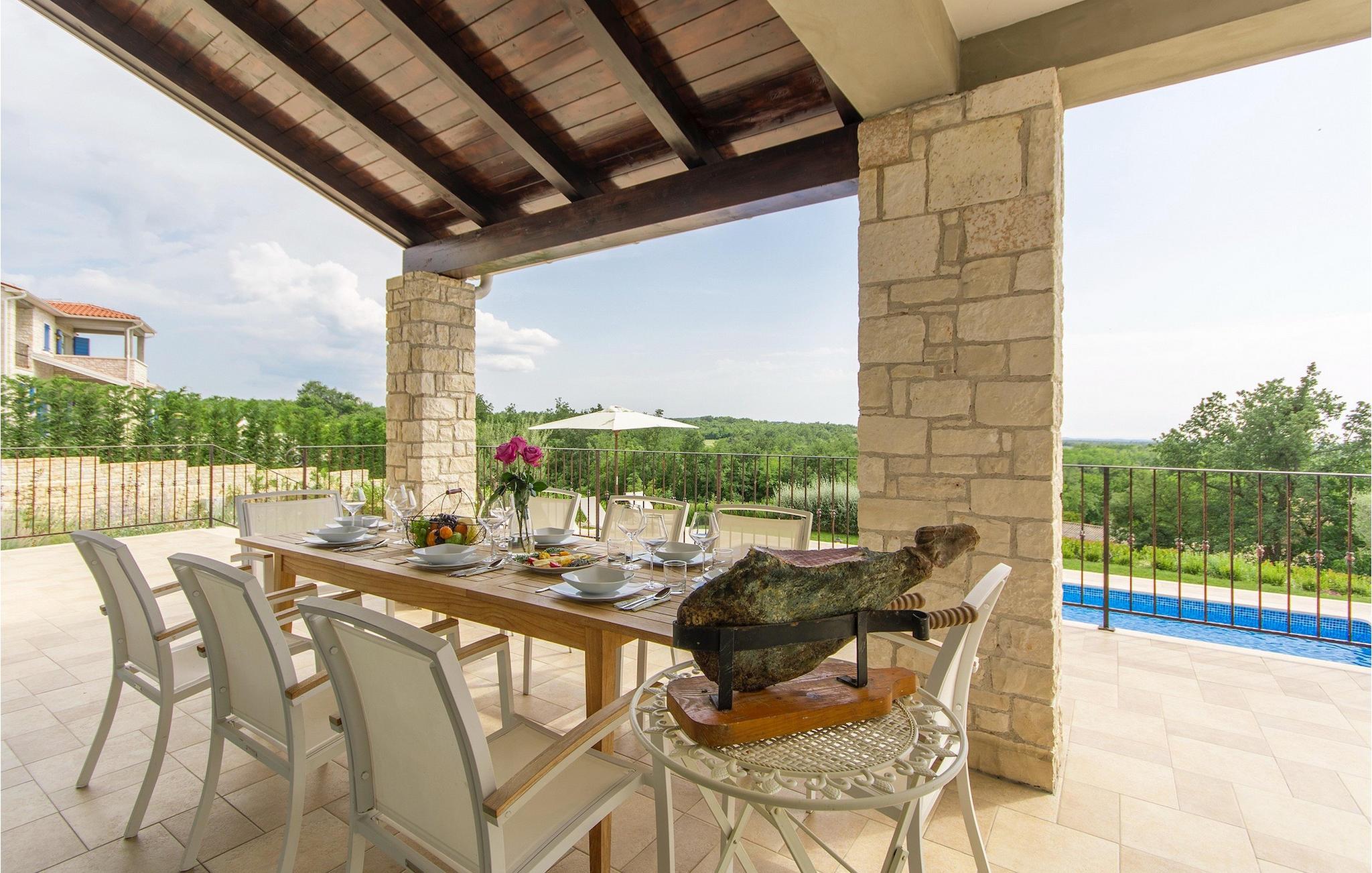 Villa Sterpazzi er en traditionel istrisk villa med en stenfacade og blå skodder. Denne smukke villa er omgivet af grønt og blomster, hvilket du vil bemærke af duften af lavendel, der breder sig gennem ejendommen.