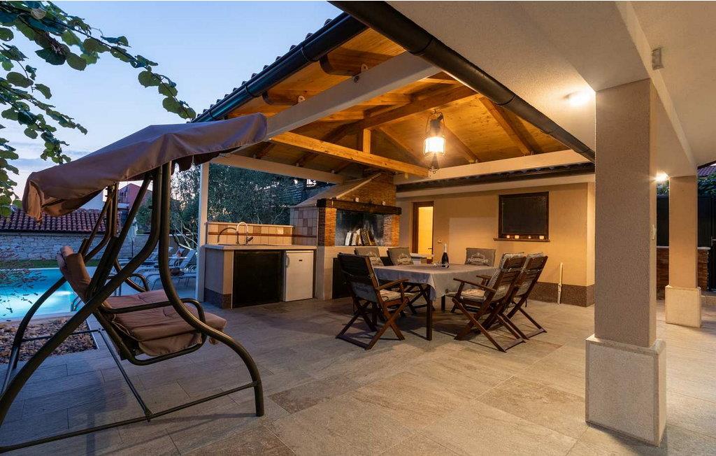 Villa Vanessa er et istrisk hus fuldstændig renoveret i 2019. Det består af to separate boligenheder, en i stueetagen og en på første sal, ideel til to familier med børn. Huset ligger i hjertet af landsbyen Višnjan, kendt for observatoriet, og kun få meter fra butikken, bageren, konobaen, pizzeriaet og banken. Villa Vanessa ligger i det idylliske landskab, men kun 10 minutters kørsel fra Porec og strandene. Huset har en lukket ejendom på ca. 450 kvm med swimmingpool på 32 kvm, parkering til to køretøjer, stor terrasse med opholdsområde, grill og bad/toilet. Enheden i husets stueetage til 6 gæster på 105 kvm består af aircondition stue med siddesæt med to sovemuligheder, spisestue med trapper, der fører til loftet med soveværelse med to enkeltsenge, fuldt udstyret køkken, hjørne med stepper og motionscykel, et soveværelse med dobbeltseng, et soveværelse med to enkeltsenge, et bad/toilet og et separat toilet. Enheden på første sal for 3-5 gæster på 75 kvm består af en stue med aircondition med sovesofa til én person, spisestue, fuldt udstyret køkken, et soveværelse med dobbeltseng, et soveværelse med køjesenge og et badeværelse med hydromassage badekar. Bemærk venligst, at denne ejendom ikke accepterer ungdomsgrupper eller polterabends. En ungdomsgruppe på denne ejendom er en gruppe bestående af personer på 26 år eller derunder. Book ikke denne ejendom, hvis du er en ungdomsgruppe eller et polterabend, da din reservation vil blive afvist efter booking, hvilket kan omfatte ved ankomst til ejendommen eller under dit ophold, og du vil ikke blive refunderet.