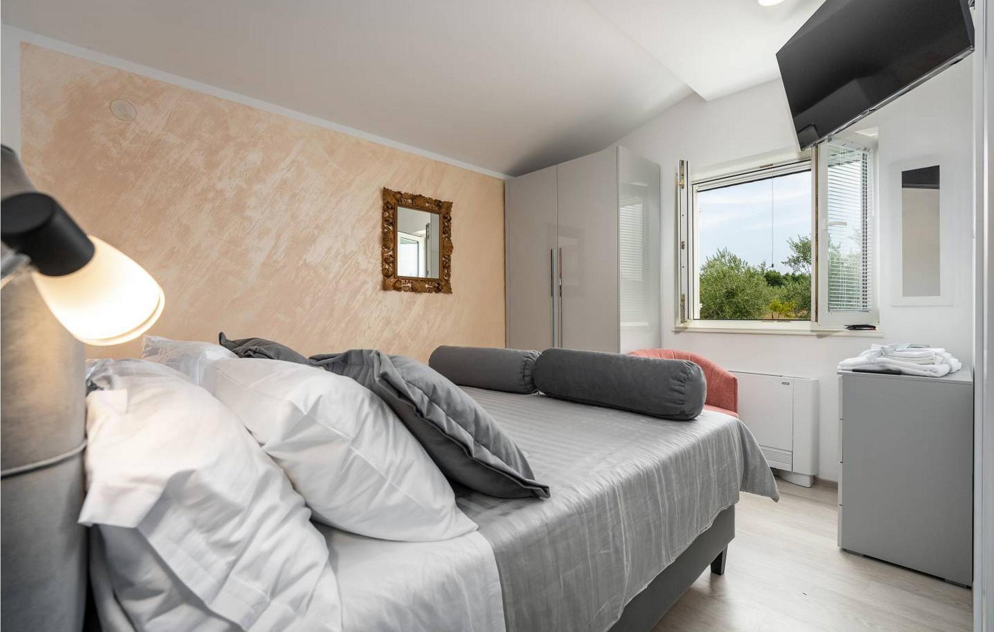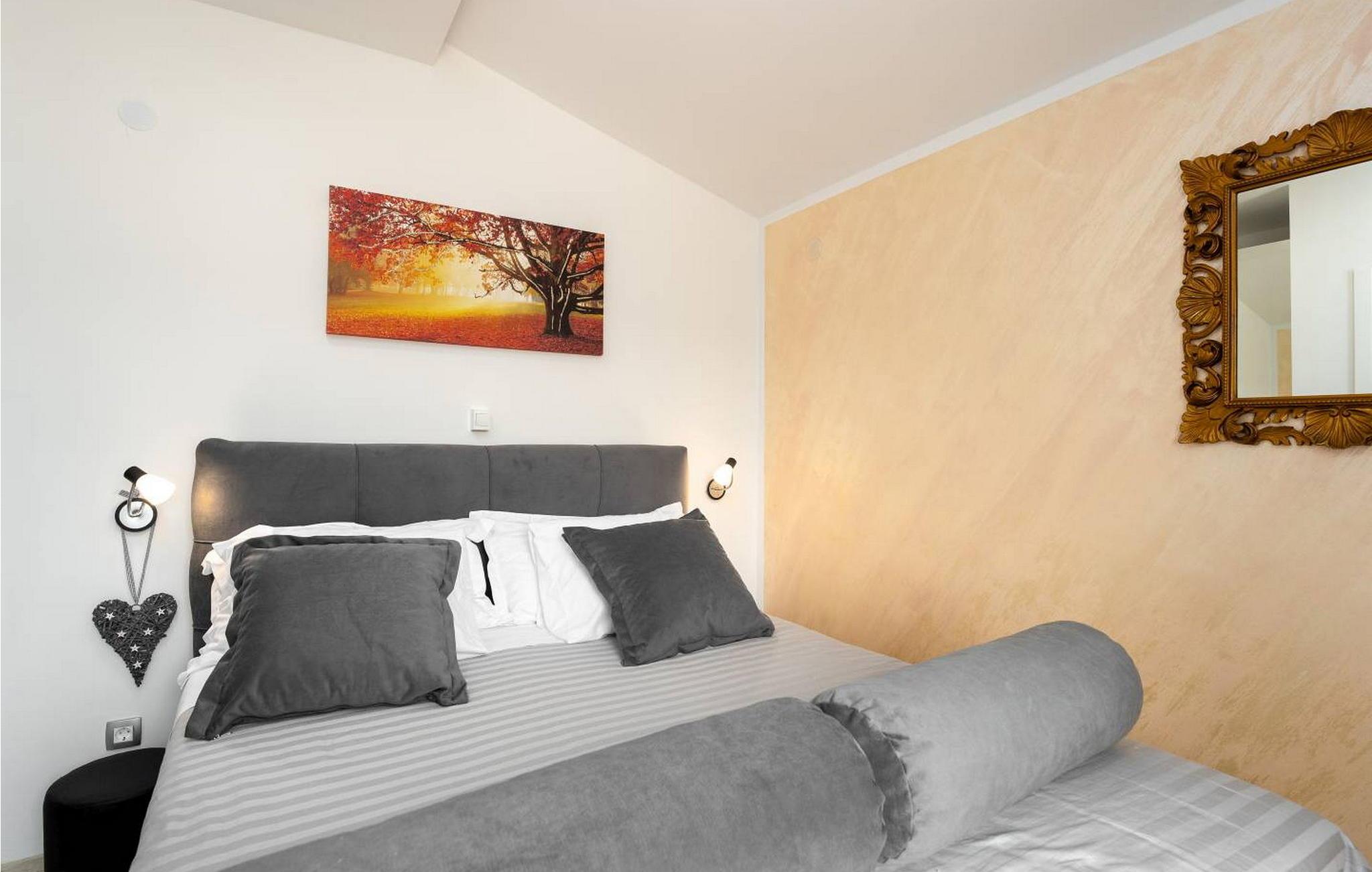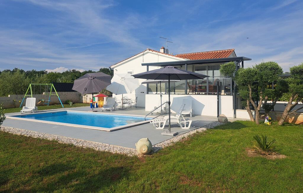 Velkommen til Villa Fortuna Višnjan, et fredeligt tilflugtssted omgivet af en olivenlund i hjertet af Istrien, kun 10 km fra Adriaterhavskysten og den historiske by Porec. Denne charmerende villa er din indgang til afslapning og tilbyder en lukket have, hvor du kan slappe af i boblebadet, tilberede måltider i det overdækkede sommerkøkken eller have en udendørs grill. Siddeområderne i haven inviterer dig til at nyde de rolige omgivelser og skabe de perfekte rammer for et afslappende tilflugtssted. Indenfor udstråler villaen varme og komfort og har indbydende opholdsrum, der inviterer til afslapning. Višnjan, en landsby gennemsyret af historie, fortsætter sin tradition som et pulserende kulturcenter med sit månedlige åbne marked. Landsbyen byder også på en fantastisk havudsigt fra sin gamle terrasse, der er adgang til gennem en historisk venetiansk bue. For astronomi-entusiaster er det nærliggende Višnjan-observatorium et must. En kort køretur væk lokker byen Porec med sine romerske gader, den UNESCO-listede Euphrasian Basilica og en rig kulturarv. I denne villa vil du opleve essensen af Istrien - hvor historie, kultur og afslapning smelter sammen. Bemærk venligst, at denne ejendom ikke accepterer ungdomsgrupper eller polterabender. En ungdomsgruppe på denne ejendom består af personer på 26 år eller derunder.