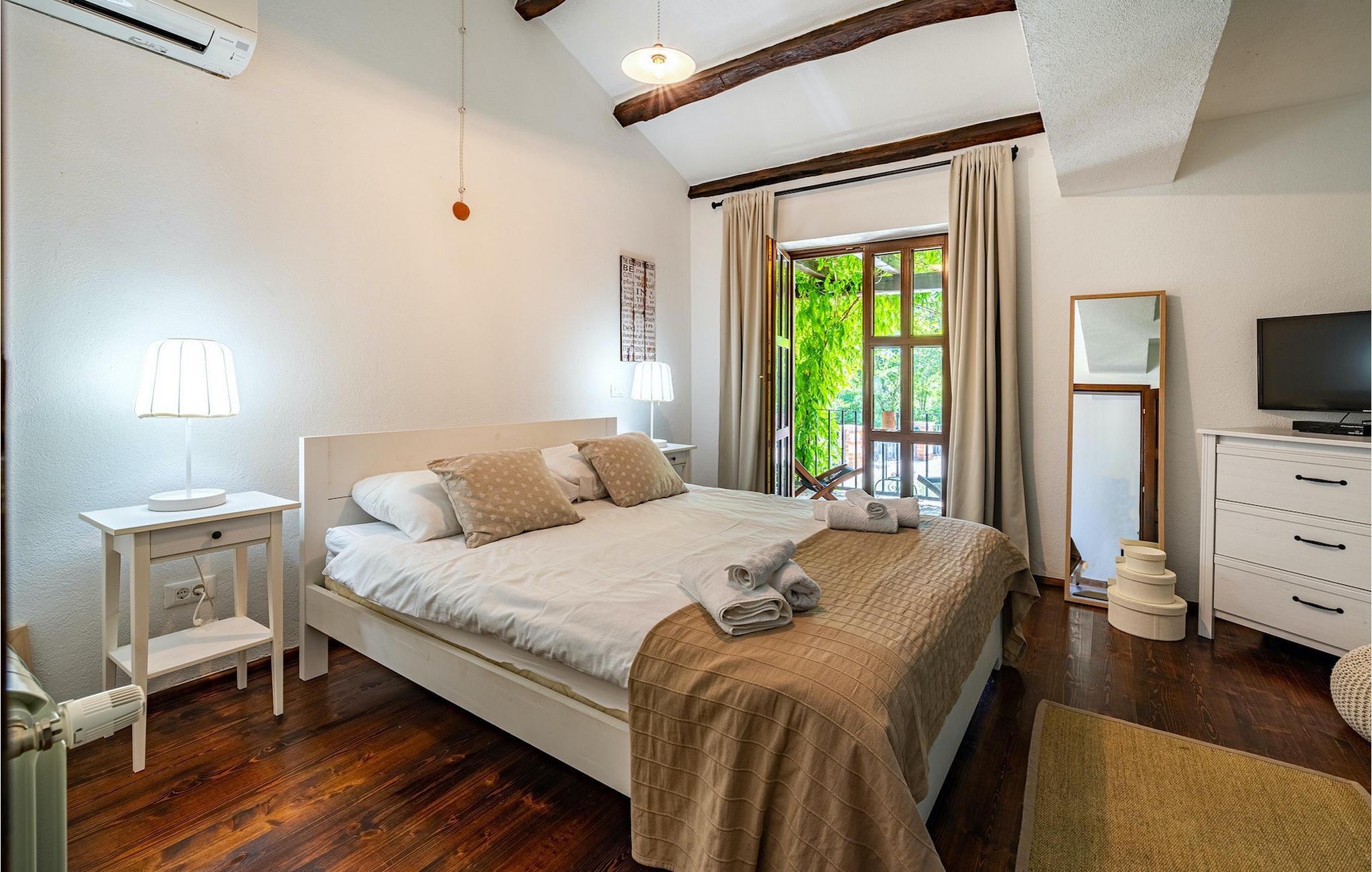 I villaens stueetage finder du en dejlig rummelig stue med pejs, der åbner ud til terrassen. Det er direkte forbundet med et fuldt udstyret køkken med spiseplads, der simpelthen inviterer dig til at nyde lækre familiemåltider. To soveværelser med dobbeltseng, et badeværelse med badekar, samt et toiletrum er ligeledes placeret på denne etage. To soveværelser med dobbeltseng er placeret på øverste etage, og hvert af de to soveværelser har eget badeværelse.