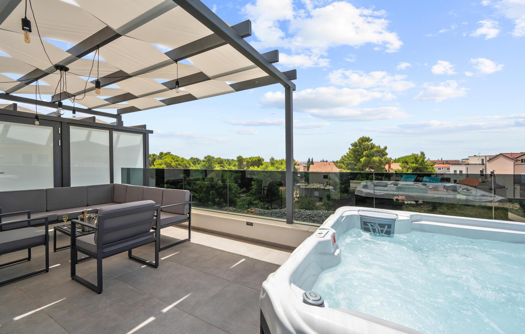 Komfortabelt og moderne feriehus med pool og stor tagterrasse.