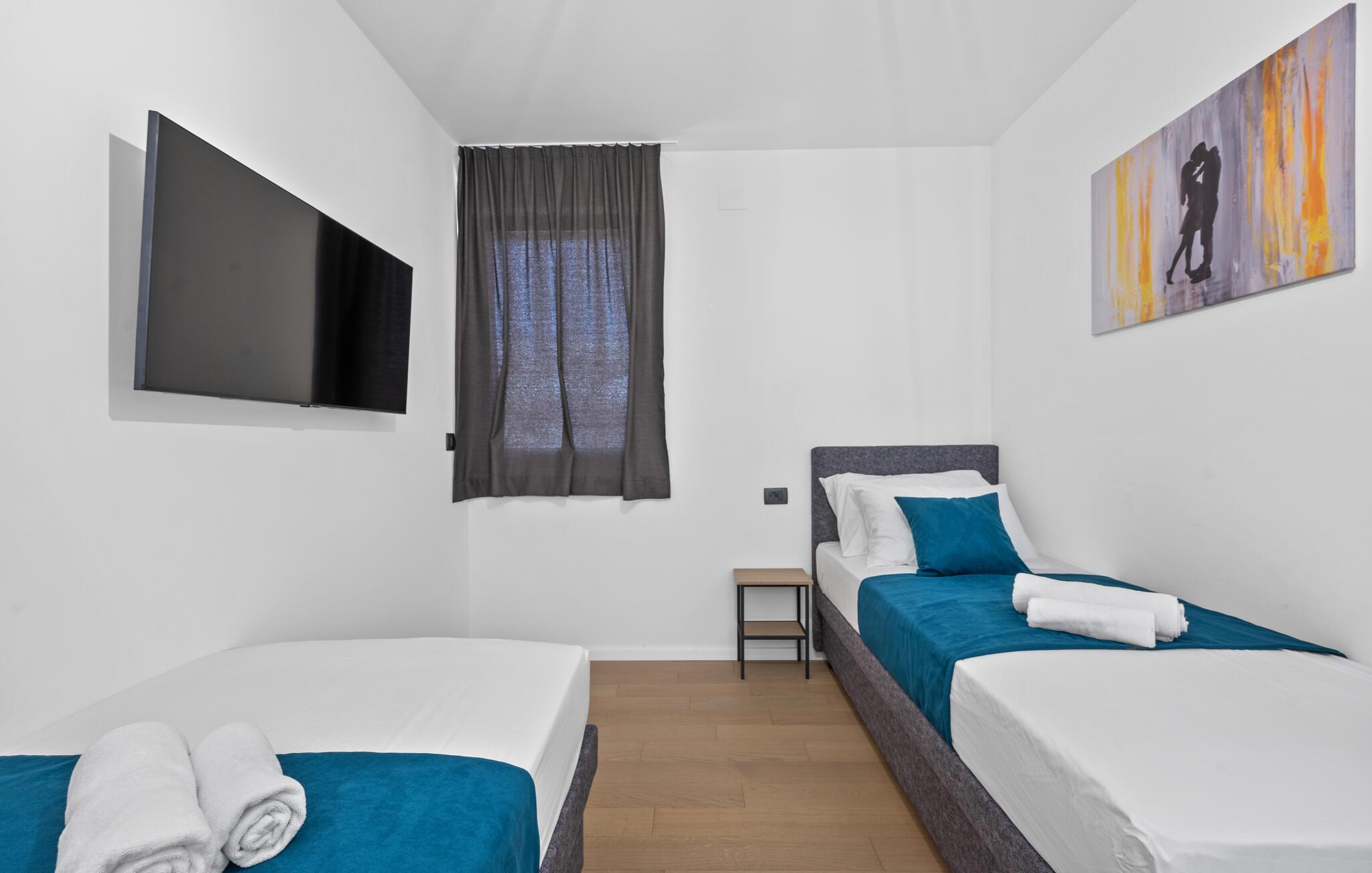 Næste morgen kan I snuppe strandtasken og spadsere til den nærliggende stenstrand. Her venter krystalklart hav og mange timers sjov og afslapning. Oplev den gamle bydel i Vodice og nyd en slentretur langs havnen med en lækker is i hånden. Fra huset kan I også tage på vandreture i det beskyttede landskab ved Sibenikstrædet og nyde naturens ro. Planlæg desuden dagsture til Sibenik ved Krka-floden og Nationalpark Krka. Sibeniks gamle bydel fortryller med seværdige kirker og paladser, og talrige museer, gallerier og historiske seværdigheder byder på mange oplevelser. Gå op til fæstningen Skt. Anna, som tårner sig op over byen. Herfra har I en storslået udsigt over de omkringliggende øer.