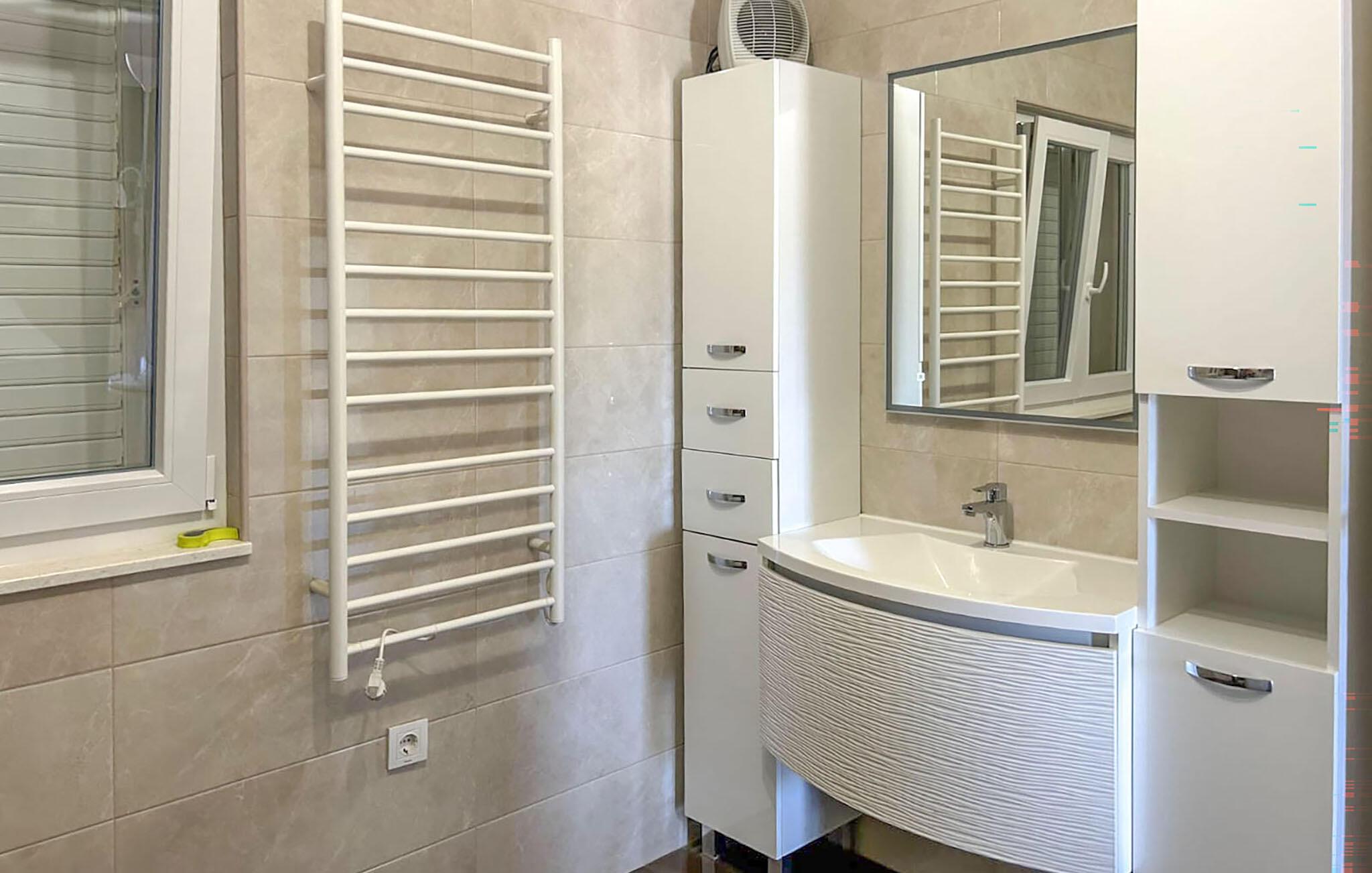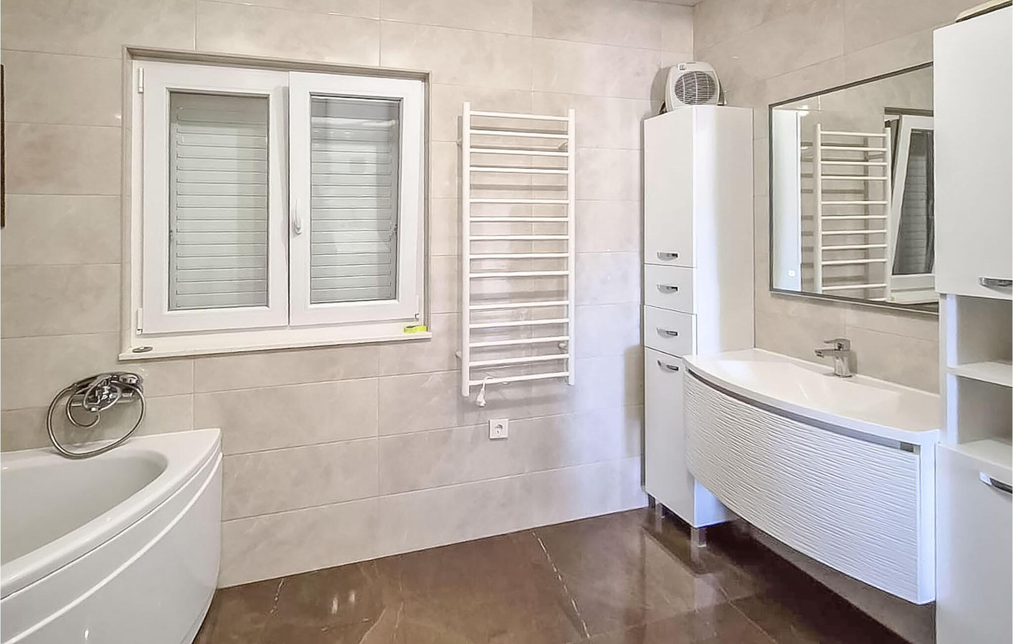 Nyd jeres ophold i dette indbydende feriehus, der kombinerer moderne livsstil med typisk dalmatisk stil. Huset består af to separate, komfortable lejligheder, der tilbyder masser af plads og privatliv. Læn jer tilbage i den smagfulde stue med et hyggeligt siddeområde eller tilbered friske regionale retter i det moderne køkken. Sid sammen ved spisebordet, og afslut dagen med et glas vin. Diskrete farver og moderne møbler skaber en rolig atmosfære.