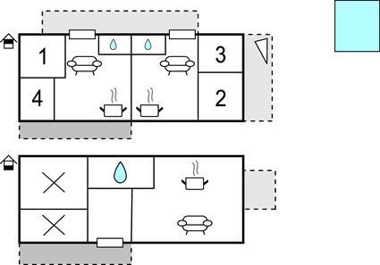 Opholdsstue/køkken - 1 Soveplads. (Sofa, madras eller lignende).