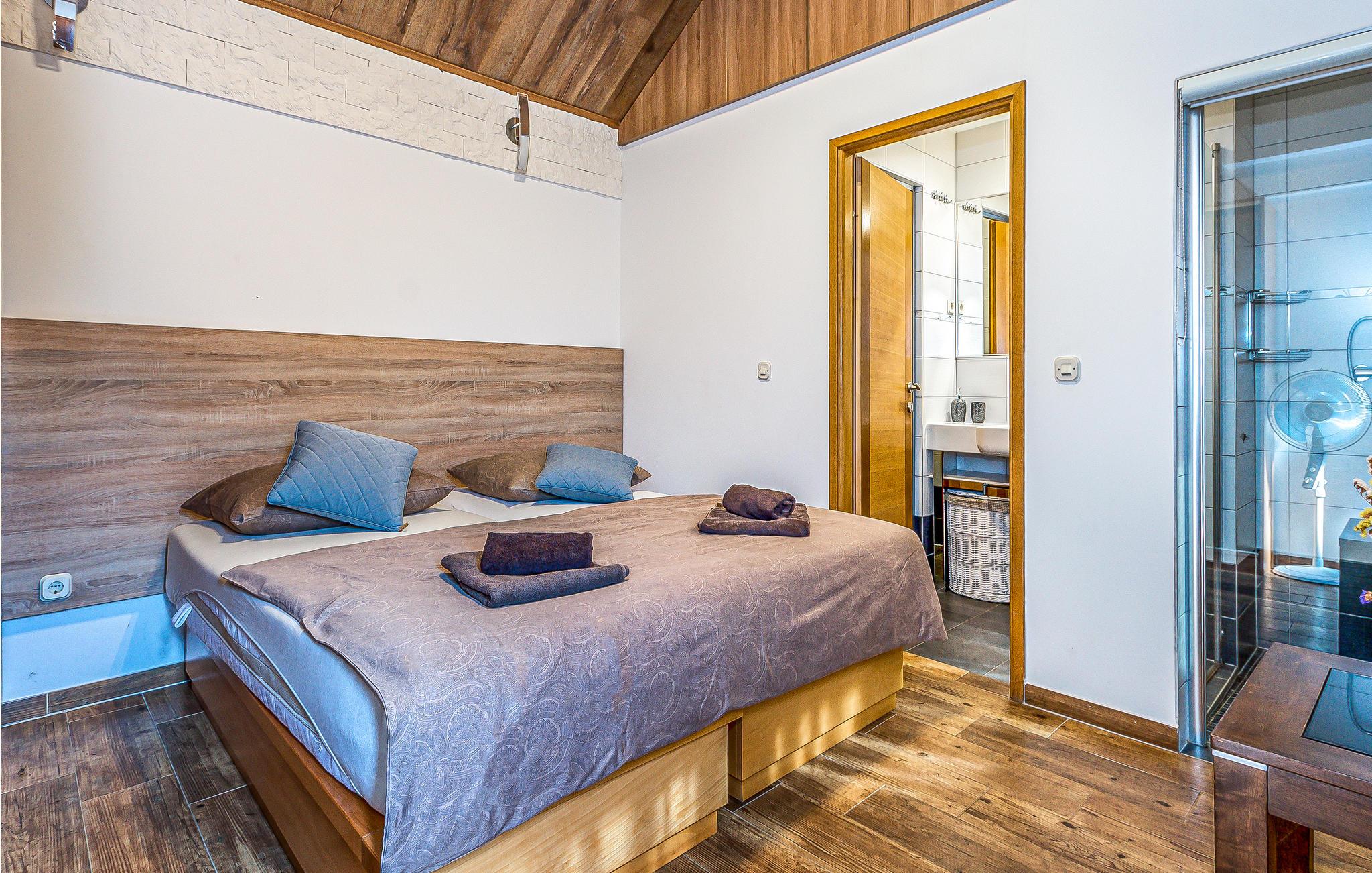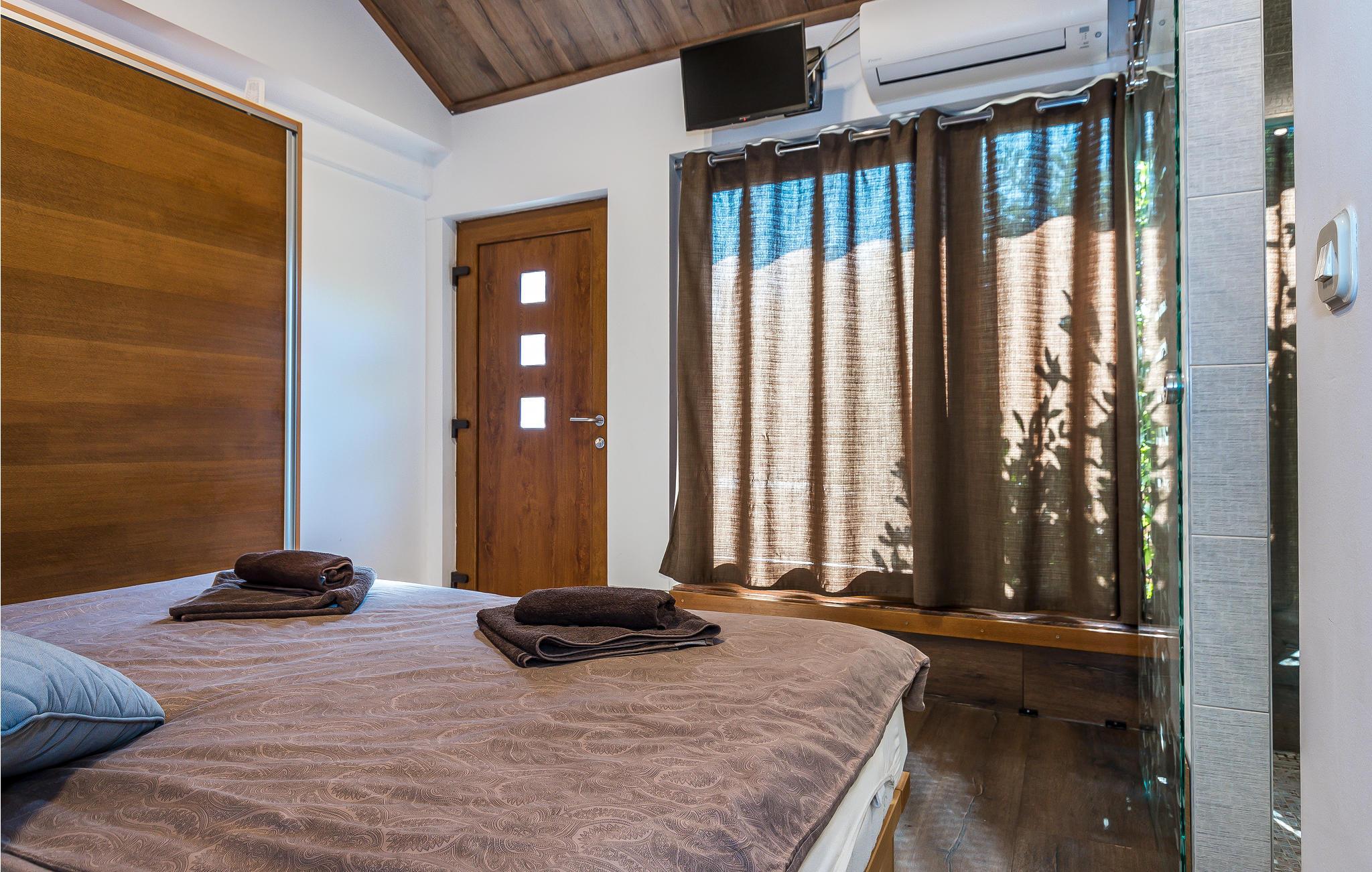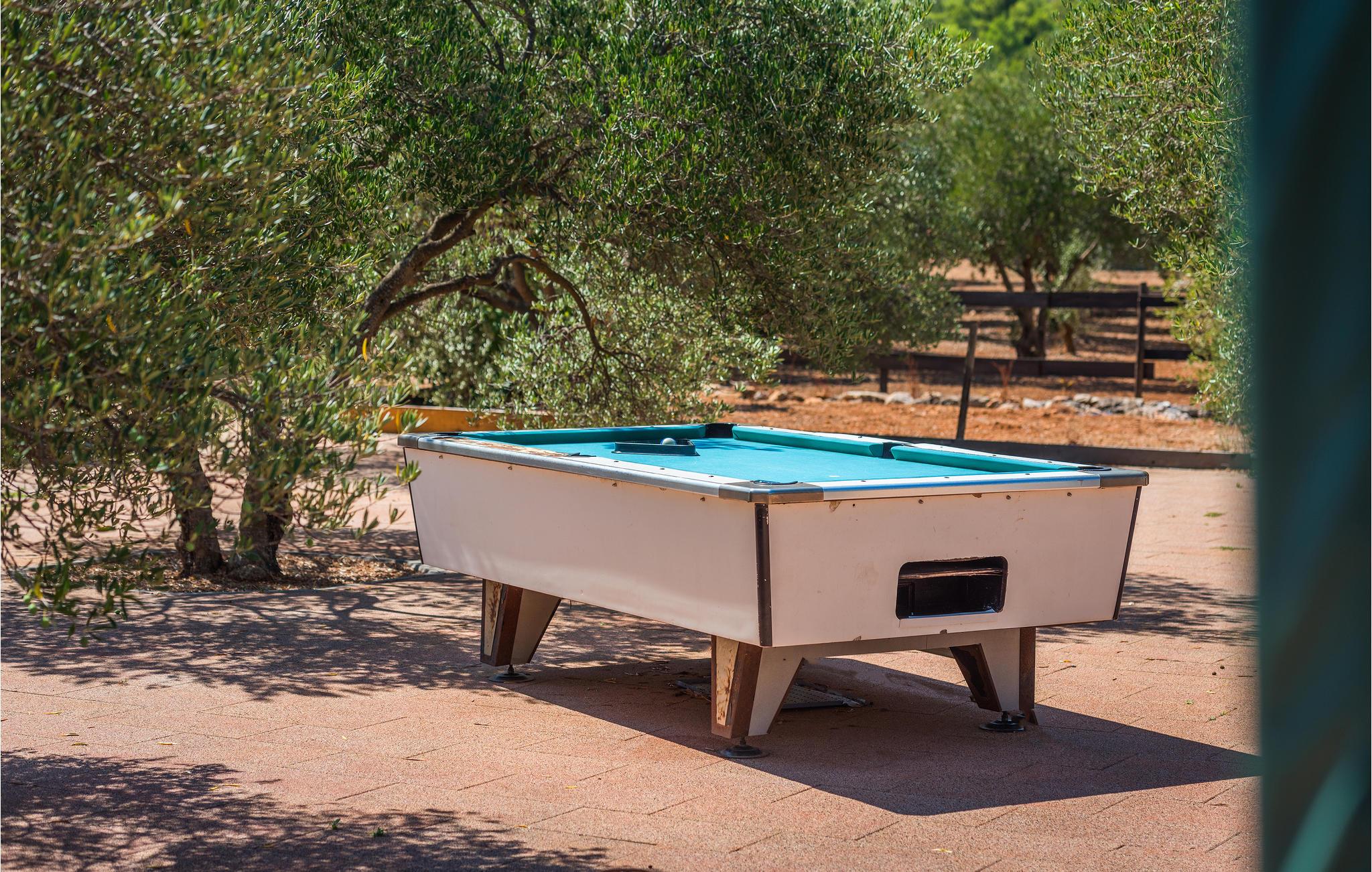Den lille by Ivinj ligger mellem Tribunj og Tisno og ved siden af øen Murter. Feriehuset ligger uden bebyggelse omkring, så her får I fred og ro. I en diameter på ca. 2 km er der attraktive, ensomme naturstrande, som I kan komme til på cykler, motorcykler, elektriske køretøjer, heste og endda til fods. Den selvstændige ejendom giver jer ideelle forudsætninger for at ride på heste i naturen, der ser ud til at strække sig ud i uendeligheden. Foran grunden, der er på ca. 20.000 m², er der en hippodrom med hestevæddeløb og rideskole, hvor I kan tage ridetimer på racerene araberheste. Oplev også eventyr på motocross- og cykelstier. Selvfølgelig udnyttes de naturlige forekomster på en sådan ejendom, fx drikkevandet, der kommer fra en ca. 80 m dyb brønd. Med dette vand fyldes også poolen og whirlpoolen. Strømmen udvindes fra solvarmeanlæg og en vindmølle. Den nævnte ejendom består af to separate huse, der ligger ved siden af hinanden og udlejes samlet. Derfor er de ideelle til flere familier eller en gruppe af venner, der vil holde ferie sammen. Det ene hus strækker sig over to etager, under- og overetagen, og har en tiltalende indretning. Etagerne er forbundet med hinanden ved hjælp af udendørs trapper. Det andet hus består af en etage, hvor I har to soveværelser, to badeværelser, et rum med rideudstyr, en åben dagligstue og et udekøkken med stor kamin. Ejerne stiller deres eget fiskeudstyr til rådighed for lystfiskere med fisketegn. Hvis fisketuren var kronet med held, er husejerne parate til at vise jer deres traditionelle måde at tilberede fisk på. Bagefter kan I nyde de herlige retter på terrassen, måske med et glas lokal vin til.