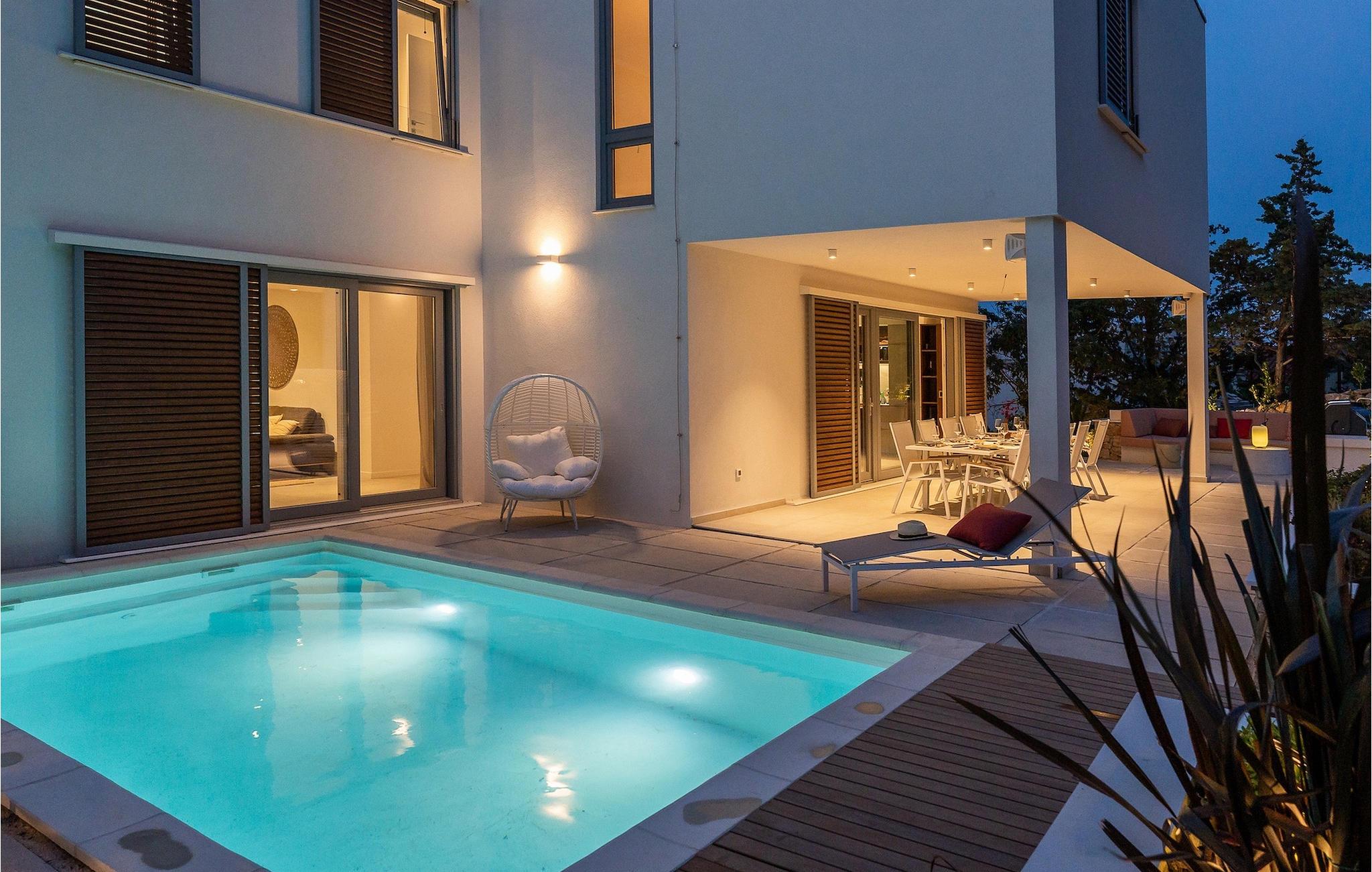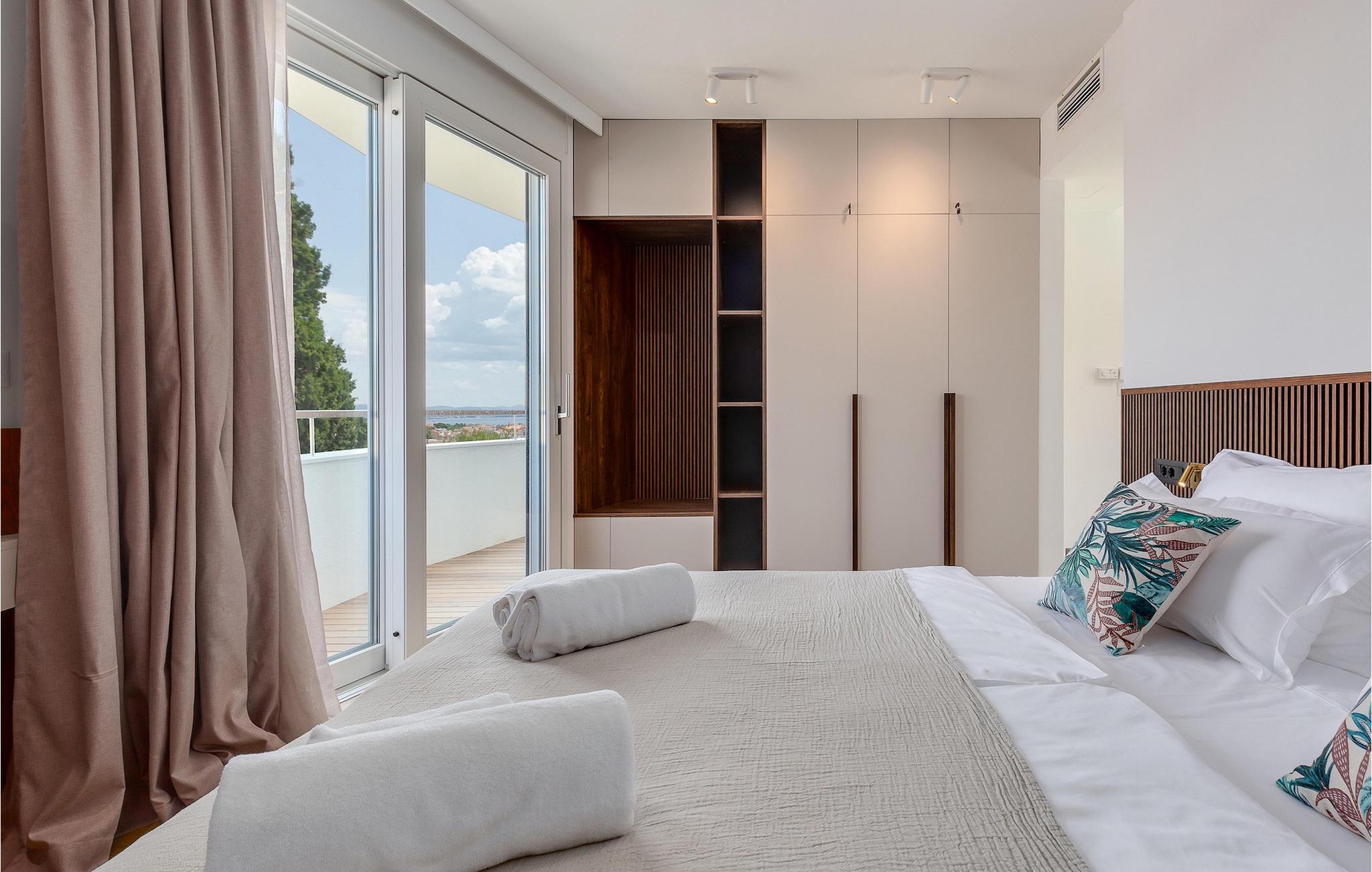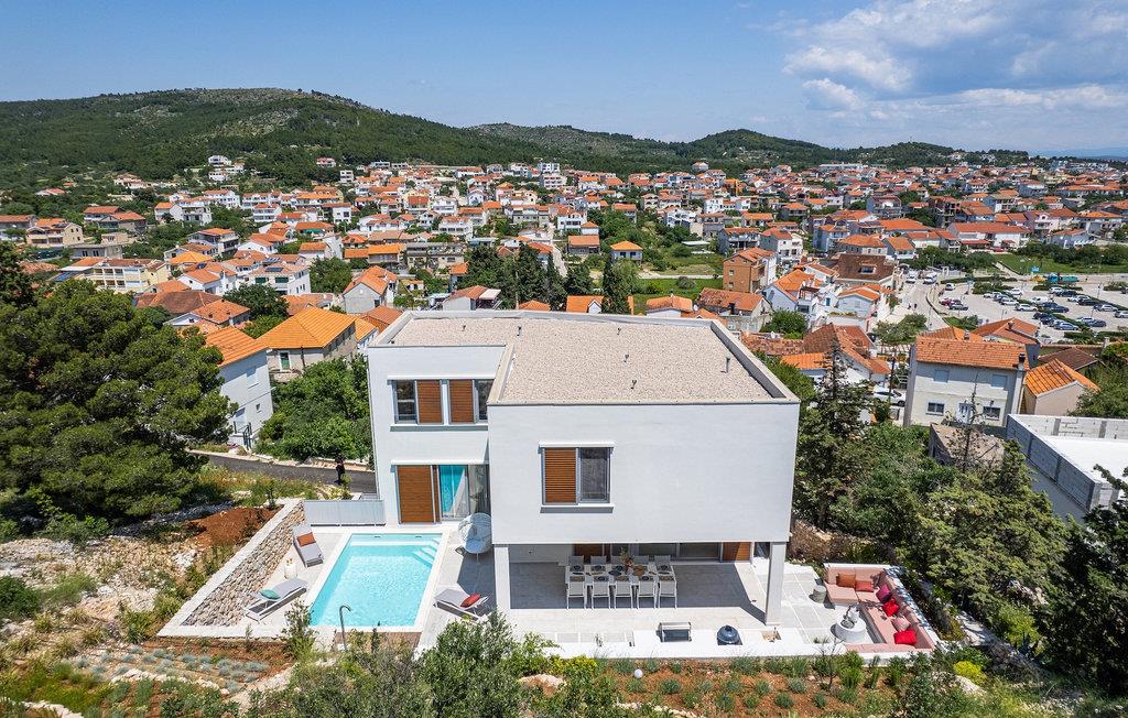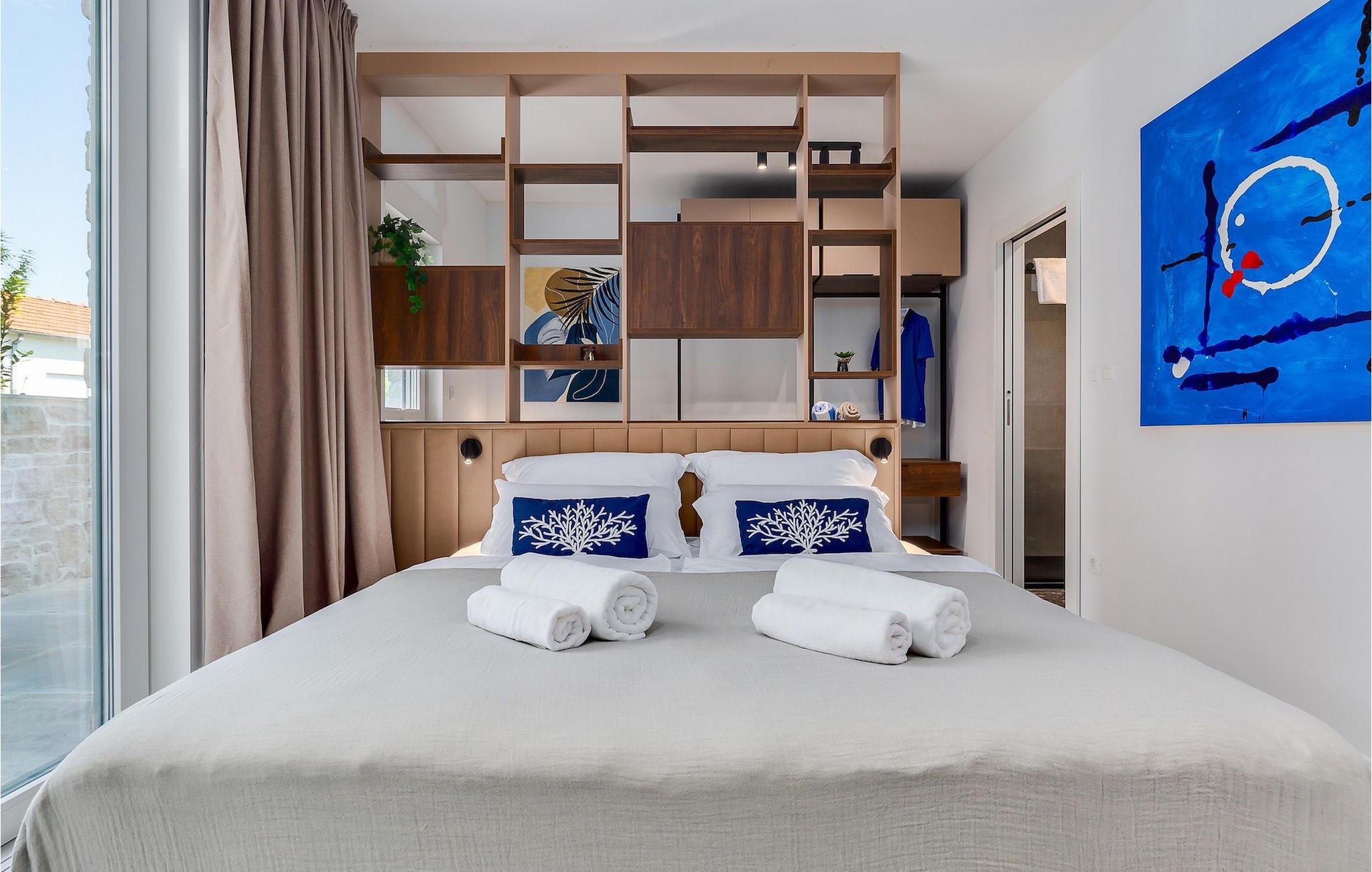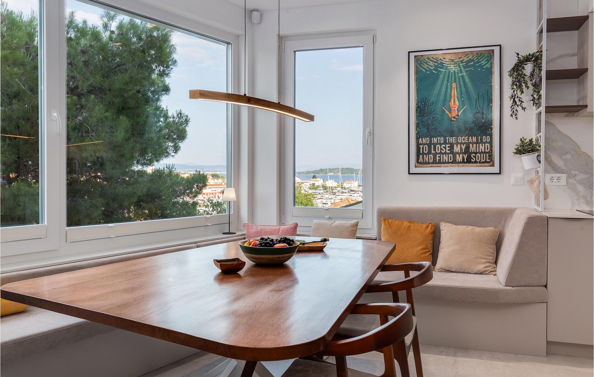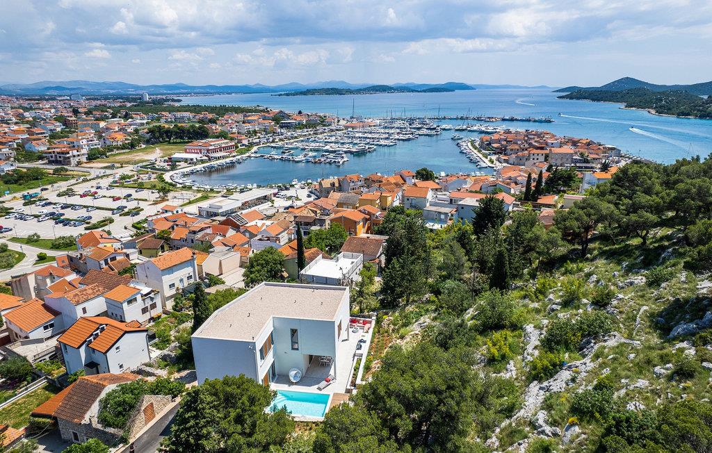 Den smukt dekorerede Villa Miramarina ligger ved foden af en bakke, med træer omkring terrassen. På den ene side af terrassen finder du en forfriskende privat pool med 4 strandstole. På den anden side er et hyggeligt loungeområde til sene aftensamtaler over drinks. I midten er en grillplads med spisebord til op til 10 personer lige ved siden af. Gennem glasdøren kan du komme ind i det fuldt udstyrede køkken med en køkkenø og en anden spiseplads til op til 10 personer, ved siden af er stuen. En etage nede finder du et dobbeltværelse med tv og eget badeværelse samt tekøkken. På første sal er der yderligere 4 dobbeltværelser, hvoraf to deler badeværelse, mens de andre 2 har deres egne private badeværelser. Denne etage er også udstyret med eget tekøkken. Fra balkonen kan du se hele byen og det smukke hav med dens lystbådehavn. For en fredelig ferie mellem natur og hav er Villa Miramare det perfekte sted for din familie. Villa Miramarina ligger i Tribunj, kendt for sine fredelige caféer ved vandet. Denne villa ligger kun 200 m fra stranden og inden for 250 m fra den nærmeste restaurant, café og butikker. Kun 30 minutters kørsel væk ligger byen Sibenik, hvor du kan besøge St. James-katedralen i sten fra det 15. århundrede, som er dekoreret med 71 skulpturelle ansigter eller Sibenik City Museum med udstillinger, der spænder fra forhistorisk til det nuværende. Du kan også besøge den fantastiske Krka Nationalpark og svømme omgivet af natur ved siden af smukke vandfald. Temperaturen i den opvarmede swimmingpool er afhængig af eksterne faktorer, herunder vejrforhold, og som sådan kan temperaturen på vandet ikke garanteres.