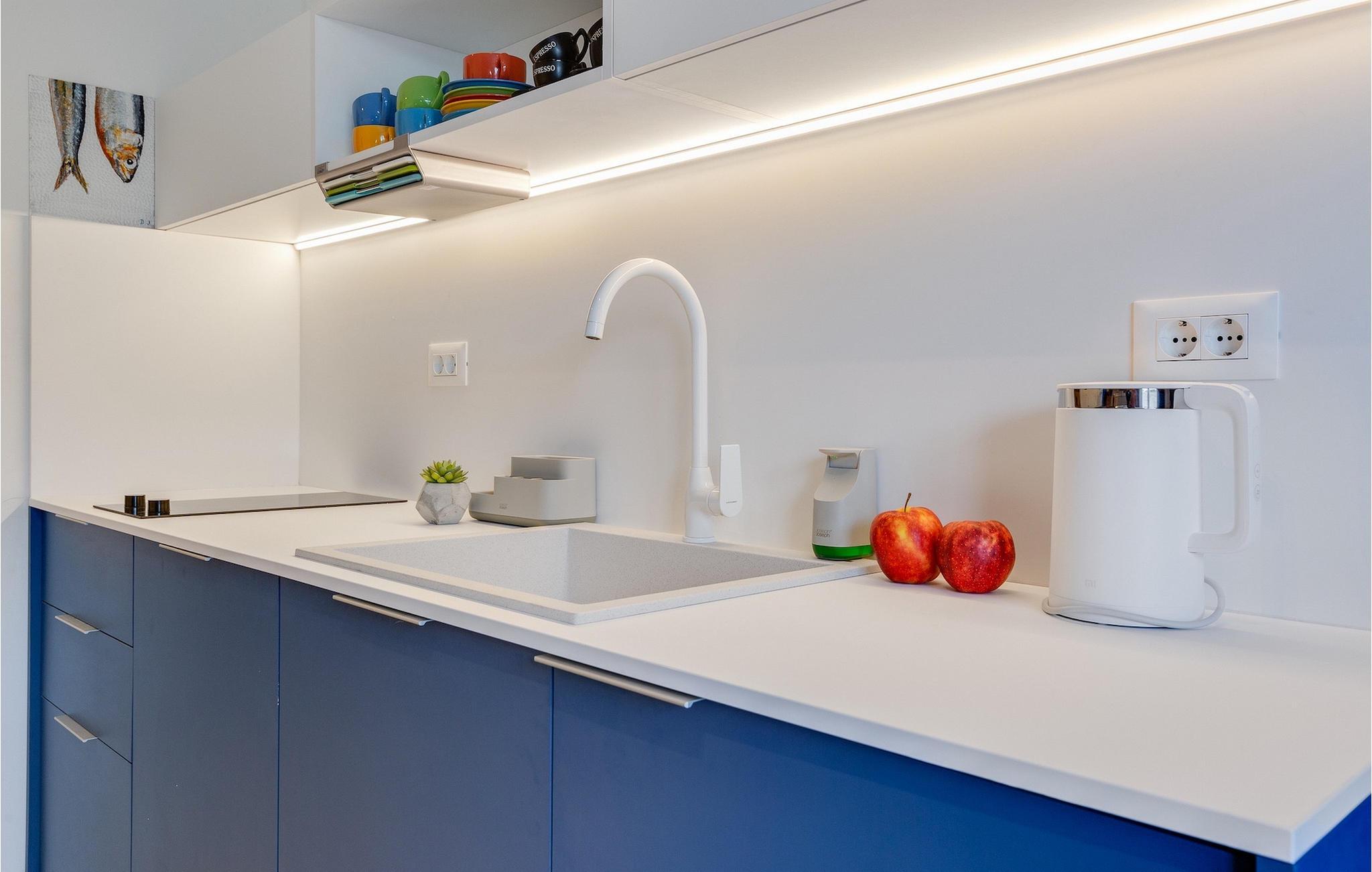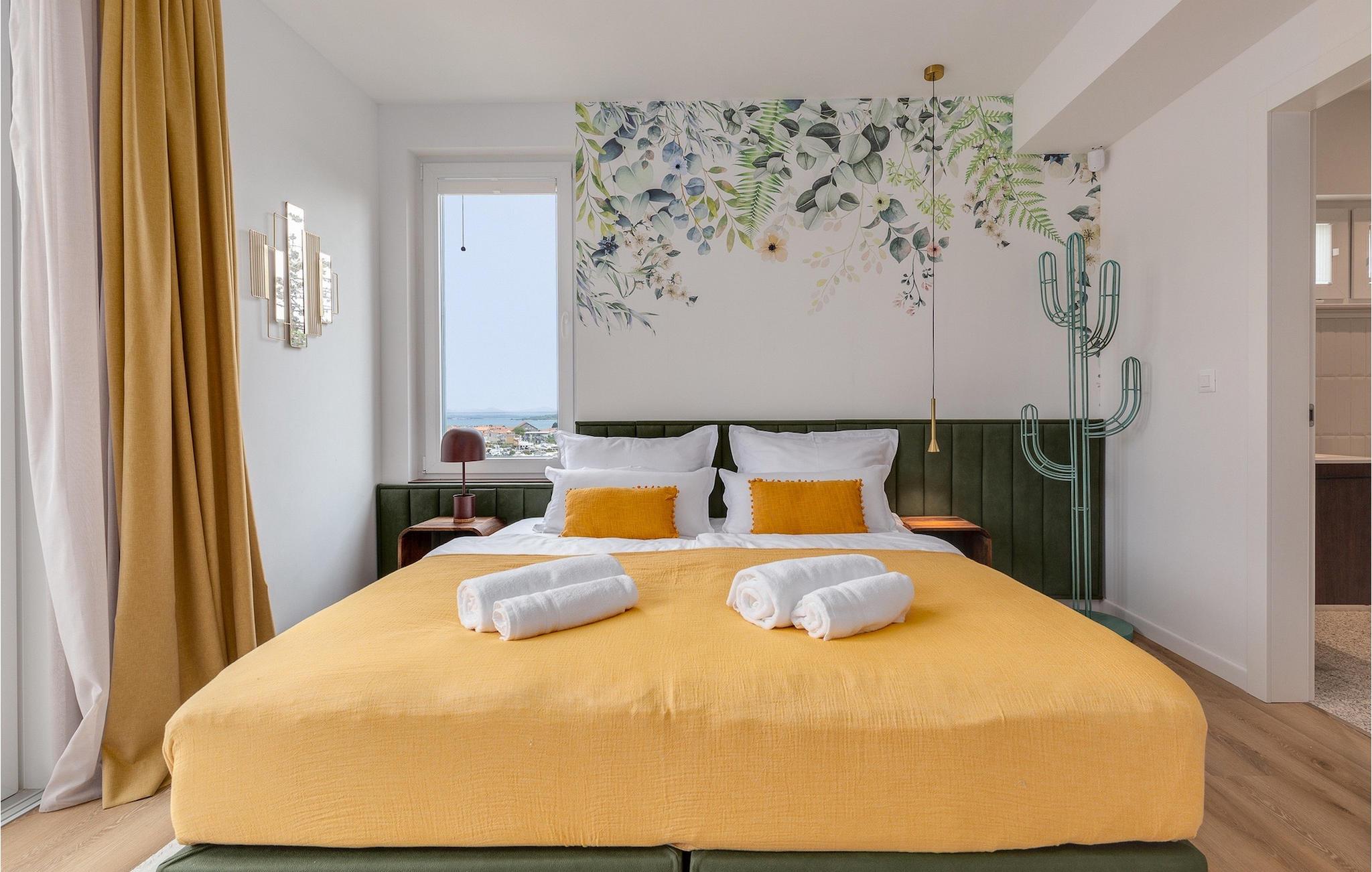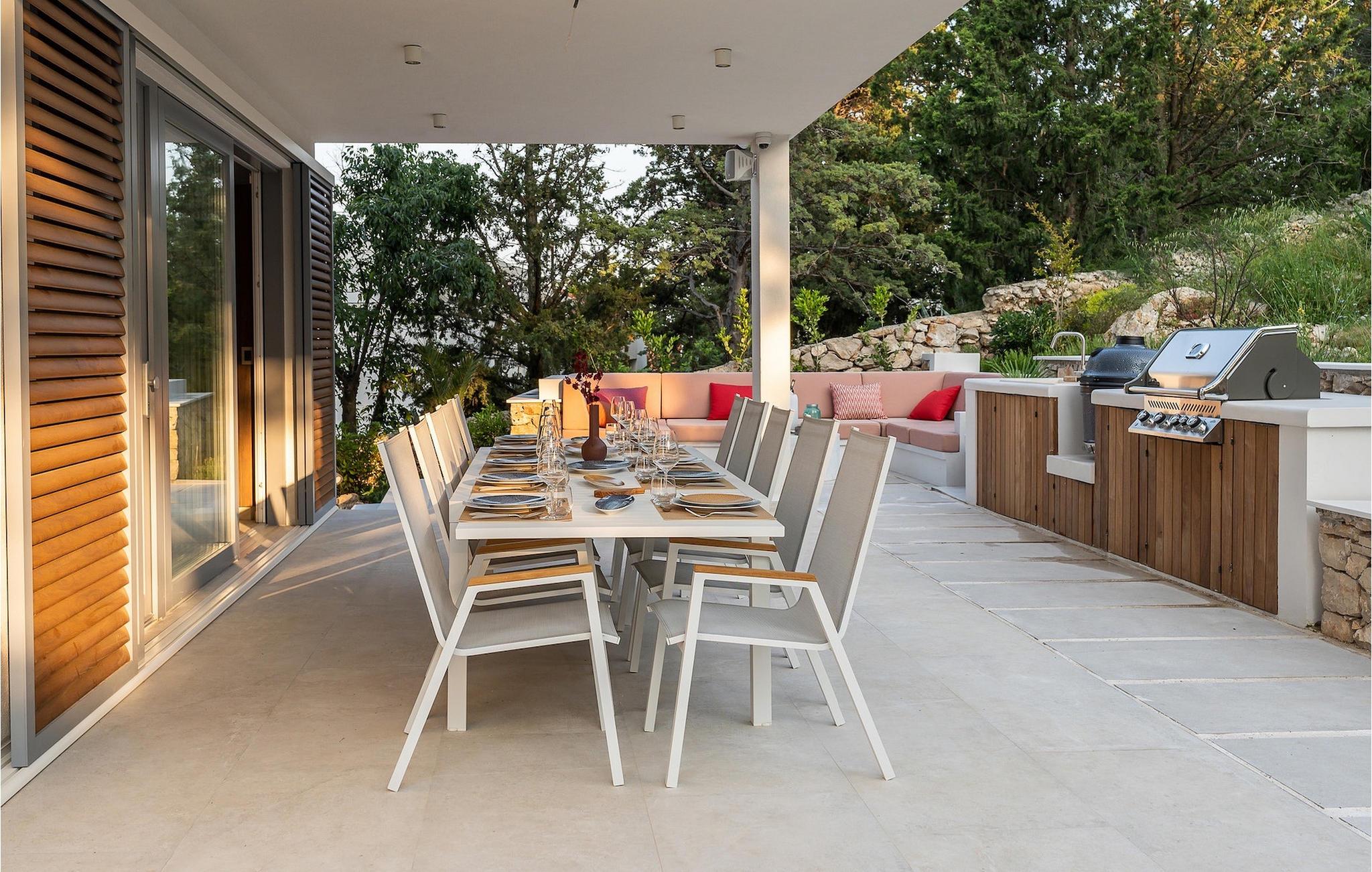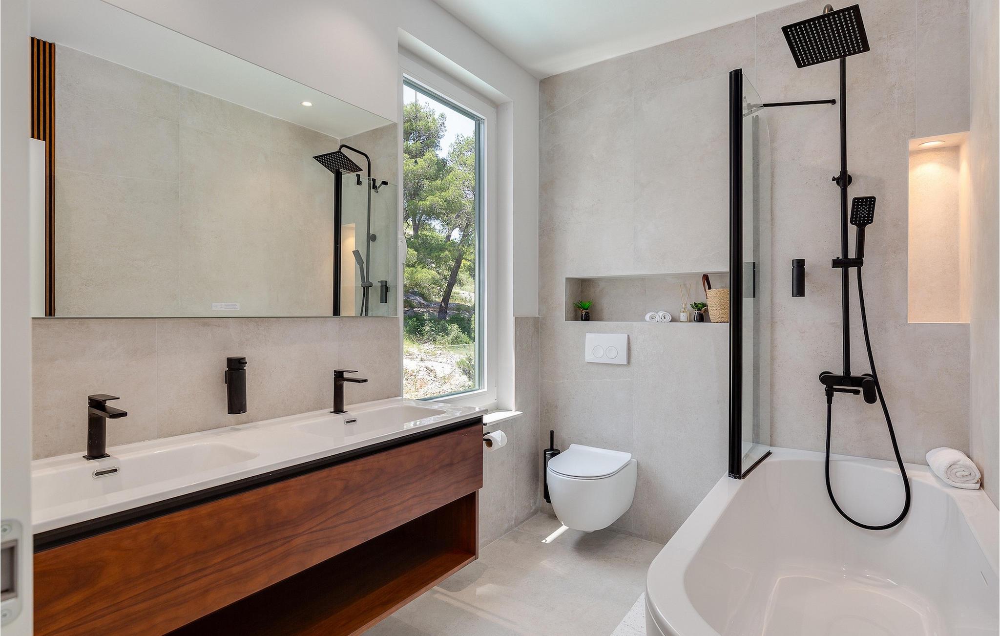 Den smukt dekorerede Villa Miramarina ligger ved foden af en bakke, med træer omkring terrassen. På den ene side af terrassen finder du en forfriskende privat pool med 4 strandstole. På den anden side er et hyggeligt loungeområde til sene aftensamtaler over drinks. I midten er en grillplads med spisebord til op til 10 personer lige ved siden af. Gennem glasdøren kan du komme ind i det fuldt udstyrede køkken med en køkkenø og en anden spiseplads til op til 10 personer, ved siden af er stuen. En etage nede finder du et dobbeltværelse med tv og eget badeværelse samt tekøkken. På første sal er der yderligere 4 dobbeltværelser, hvoraf to deler badeværelse, mens de andre 2 har deres egne private badeværelser. Denne etage er også udstyret med eget tekøkken. Fra balkonen kan du se hele byen og det smukke hav med dens lystbådehavn. For en fredelig ferie mellem natur og hav er Villa Miramare det perfekte sted for din familie. Villa Miramarina ligger i Tribunj, kendt for sine fredelige caféer ved vandet. Denne villa ligger kun 200 m fra stranden og inden for 250 m fra den nærmeste restaurant, café og butikker. Kun 30 minutters kørsel væk ligger byen Sibenik, hvor du kan besøge St. James-katedralen i sten fra det 15. århundrede, som er dekoreret med 71 skulpturelle ansigter eller Sibenik City Museum med udstillinger, der spænder fra forhistorisk til det nuværende. Du kan også besøge den fantastiske Krka Nationalpark og svømme omgivet af natur ved siden af smukke vandfald. Temperaturen i den opvarmede swimmingpool er afhængig af eksterne faktorer, herunder vejrforhold, og som sådan kan temperaturen på vandet ikke garanteres.
