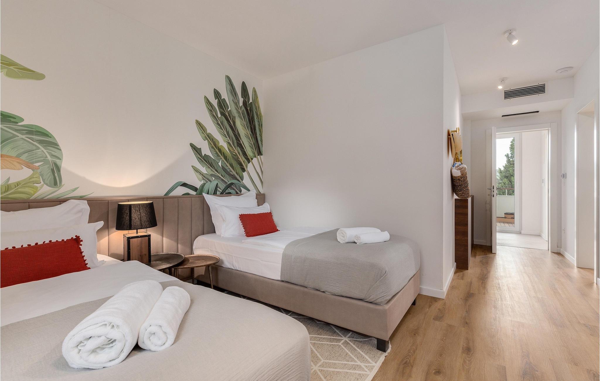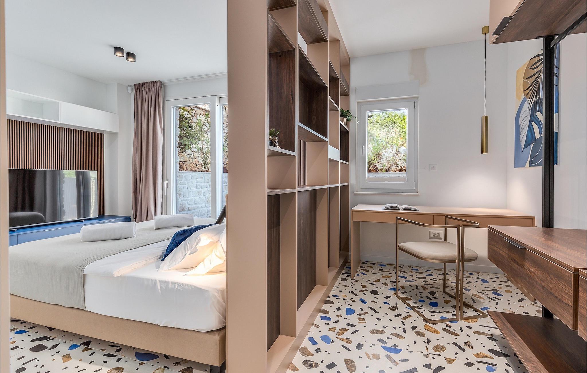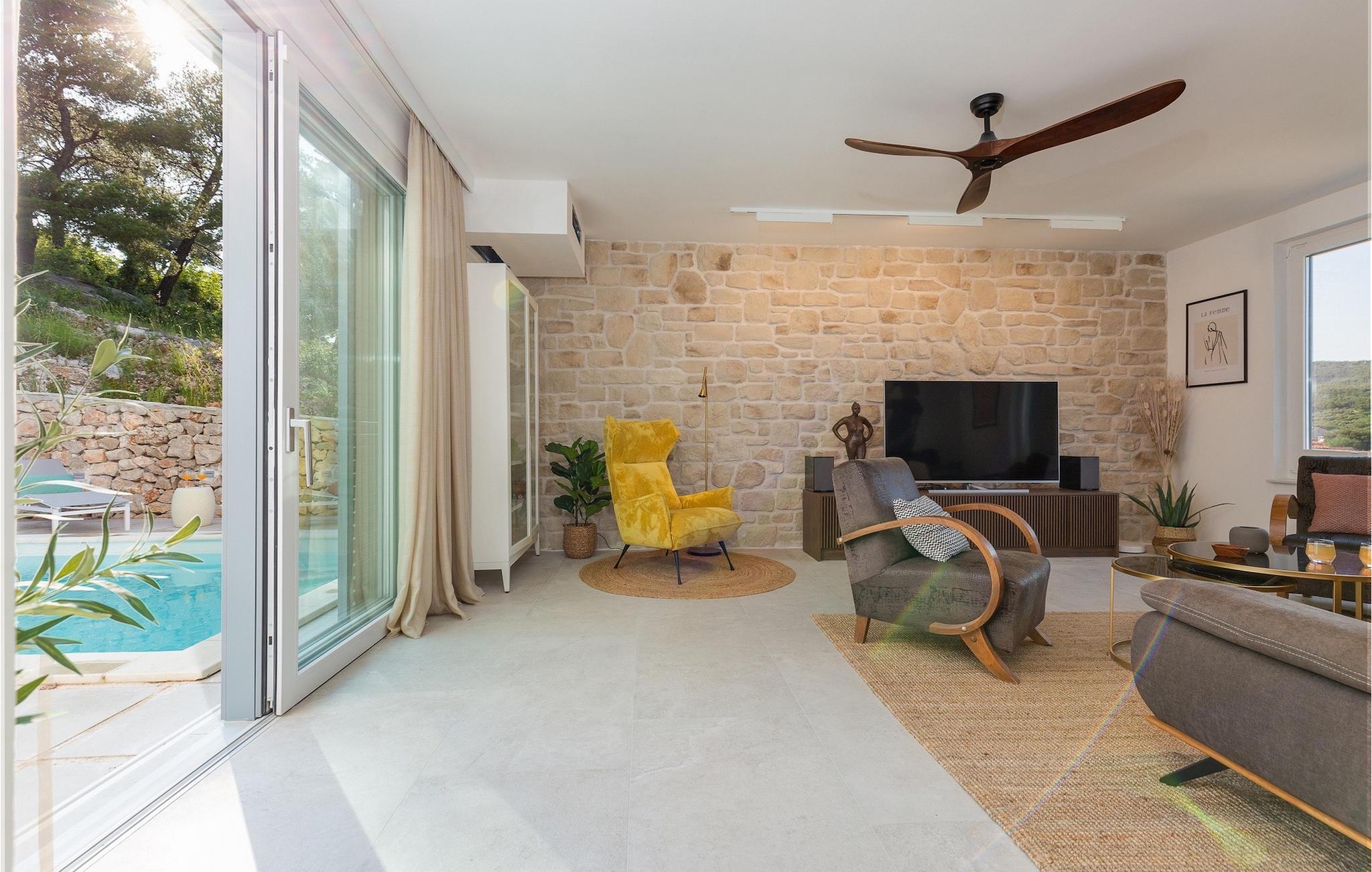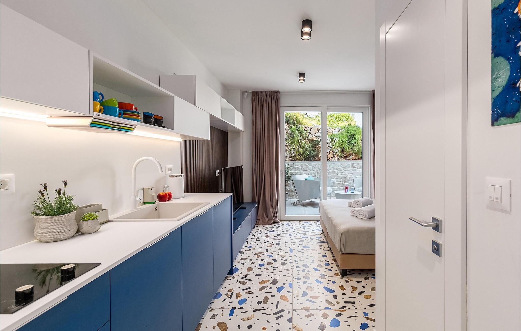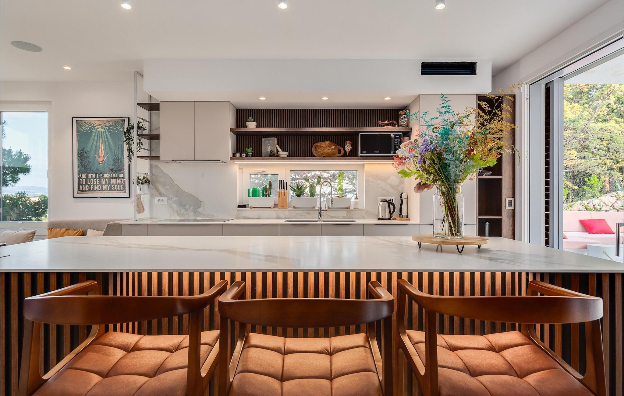 Den smukt dekorerede Villa Miramarina ligger ved foden af en bakke, med træer omkring terrassen. På den ene side af terrassen finder du en forfriskende privat pool med 4 strandstole. På den anden side er et hyggeligt loungeområde til sene aftensamtaler over drinks. I midten er en grillplads med spisebord til op til 10 personer lige ved siden af. Gennem glasdøren kan du komme ind i det fuldt udstyrede køkken med en køkkenø og en anden spiseplads til op til 10 personer, ved siden af er stuen. En etage nede finder du et dobbeltværelse med tv og eget badeværelse samt tekøkken. På første sal er der yderligere 4 dobbeltværelser, hvoraf to deler badeværelse, mens de andre 2 har deres egne private badeværelser. Denne etage er også udstyret med eget tekøkken. Fra balkonen kan du se hele byen og det smukke hav med dens lystbådehavn. For en fredelig ferie mellem natur og hav er Villa Miramare det perfekte sted for din familie. Villa Miramarina ligger i Tribunj, kendt for sine fredelige caféer ved vandet. Denne villa ligger kun 200 m fra stranden og inden for 250 m fra den nærmeste restaurant, café og butikker. Kun 30 minutters kørsel væk ligger byen Sibenik, hvor du kan besøge St. James-katedralen i sten fra det 15. århundrede, som er dekoreret med 71 skulpturelle ansigter eller Sibenik City Museum med udstillinger, der spænder fra forhistorisk til det nuværende. Du kan også besøge den fantastiske Krka Nationalpark og svømme omgivet af natur ved siden af smukke vandfald. Temperaturen i den opvarmede swimmingpool er afhængig af eksterne faktorer, herunder vejrforhold, og som sådan kan temperaturen på vandet ikke garanteres.