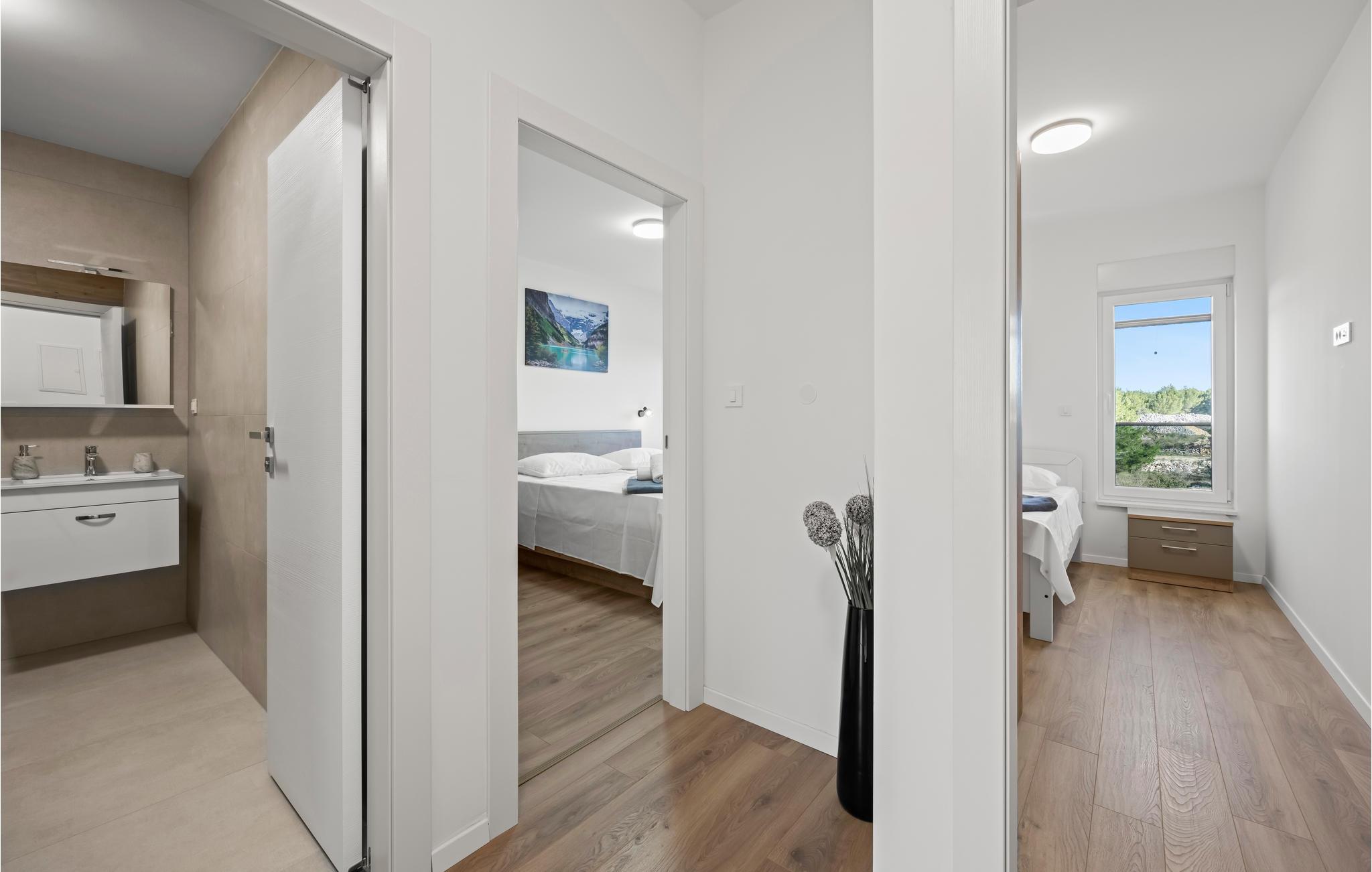 Glæd jer til en herlig ferie med familien i dette indbydende hus i Srima. Den smukke indretning er spredt ud over stueetagen og førstesalen, og her venter jer en skøn, hjemlig atmosfære, hvor I kan finde jer godt til rette som en større rejsegruppe. I kan glæde jer til at lave mad, til fælles måltider og til at slappe af sammen. Via den åbne trappe kommer I op pål øverste etage, hvor I kan se frem til nogle behagelige, rolige nætter. Den kompakte have har både pool, solterrasse og en rummelig balkon, der indbyder til en masse tid udendørs.