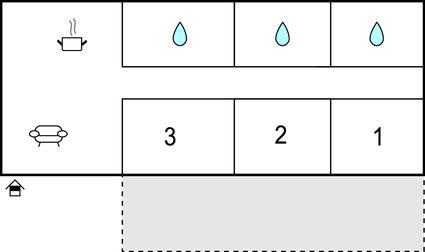 Opholdsstue/køkken - 1 Soveplads. (Sofa, madras eller lignende).