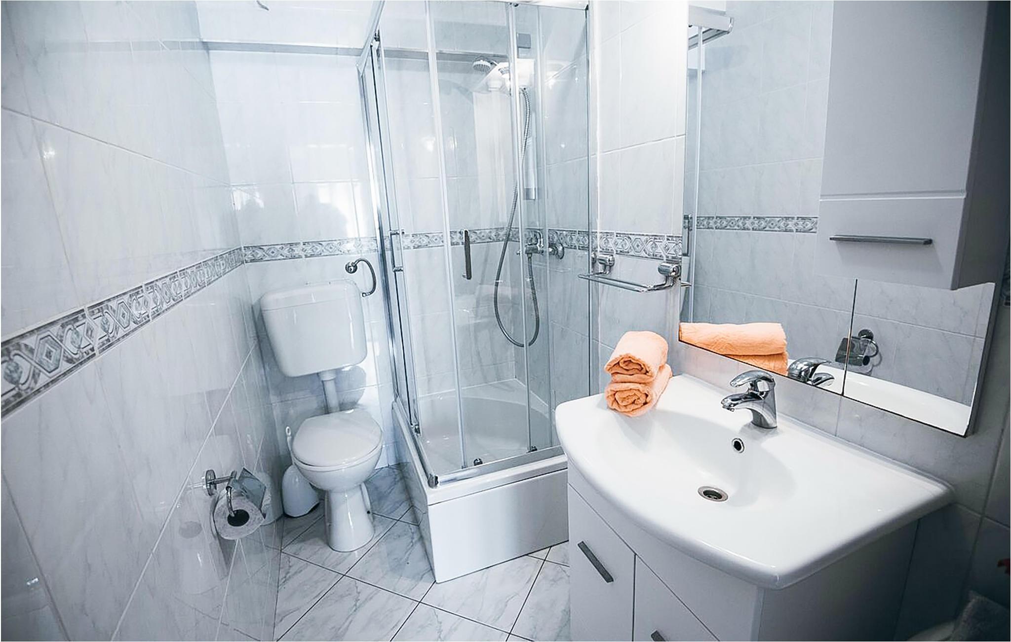 Badeværelse (nr. 2) - WC. Varmt og koldt vand. Bruser og badekar