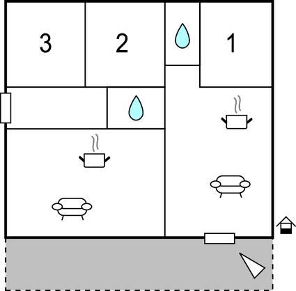Opholdsstue/køkken - 2 Sovepladser. (Sofa, madras eller lignende).