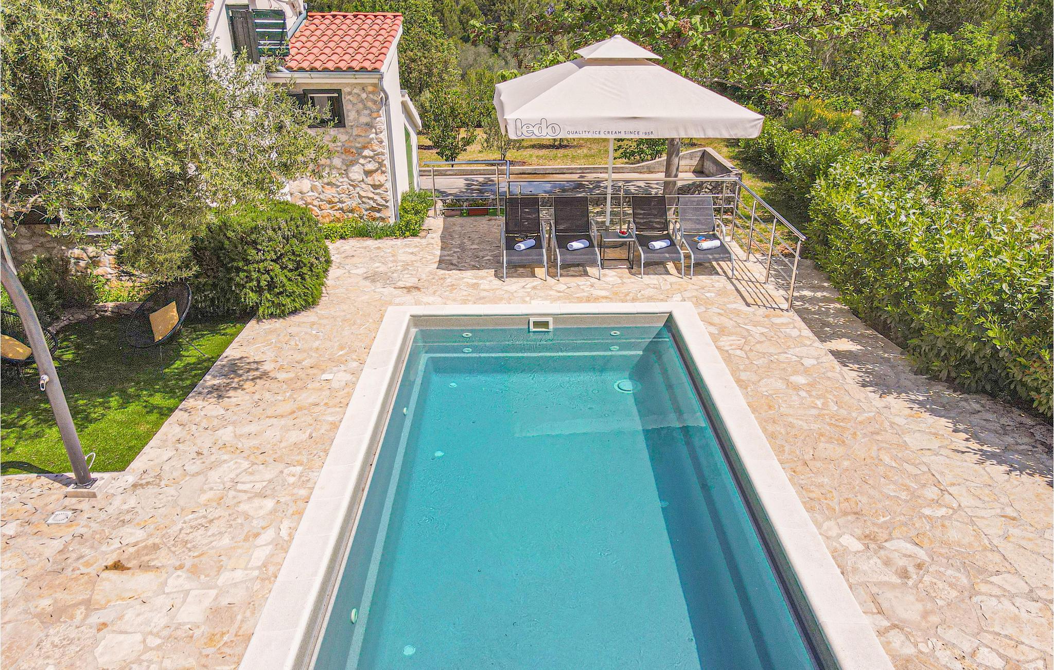 Dette vidunderlige dalmatiske feriehus ligger omgivet af oliventræernes grønne og falder vidunderligt ind i naturen. Det ligger i nærheden af den populære og maleriske by Vodice, der har mange tilbud om underholdning og mange dejlige strande. I feriehuset på hemsen er der to sovemuligheder. Hele det indre er smagfuldt indrettet, og i haven står den herlige pool. Hvis I søger originalitet, fred og komfort og alligevel vil være i nærheden af havet og sommerens underholdningsprogrammer, så er dette feriehus ideelt til jeres ferie.