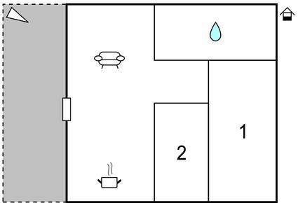 Opholdsstue/køkken - 1 Soveplads. (Sofa, madras eller lignende).