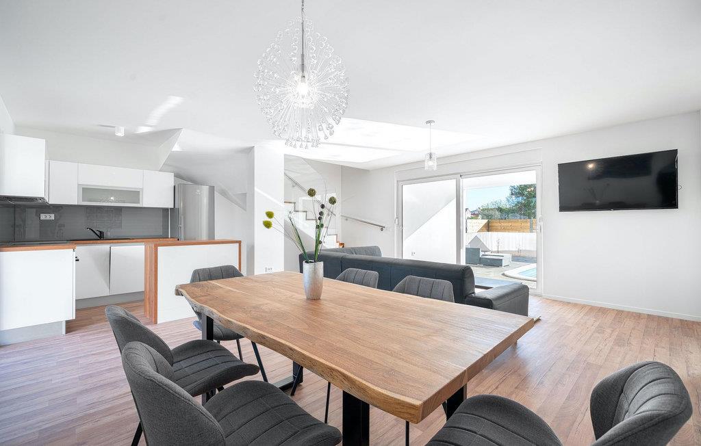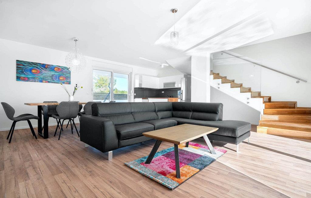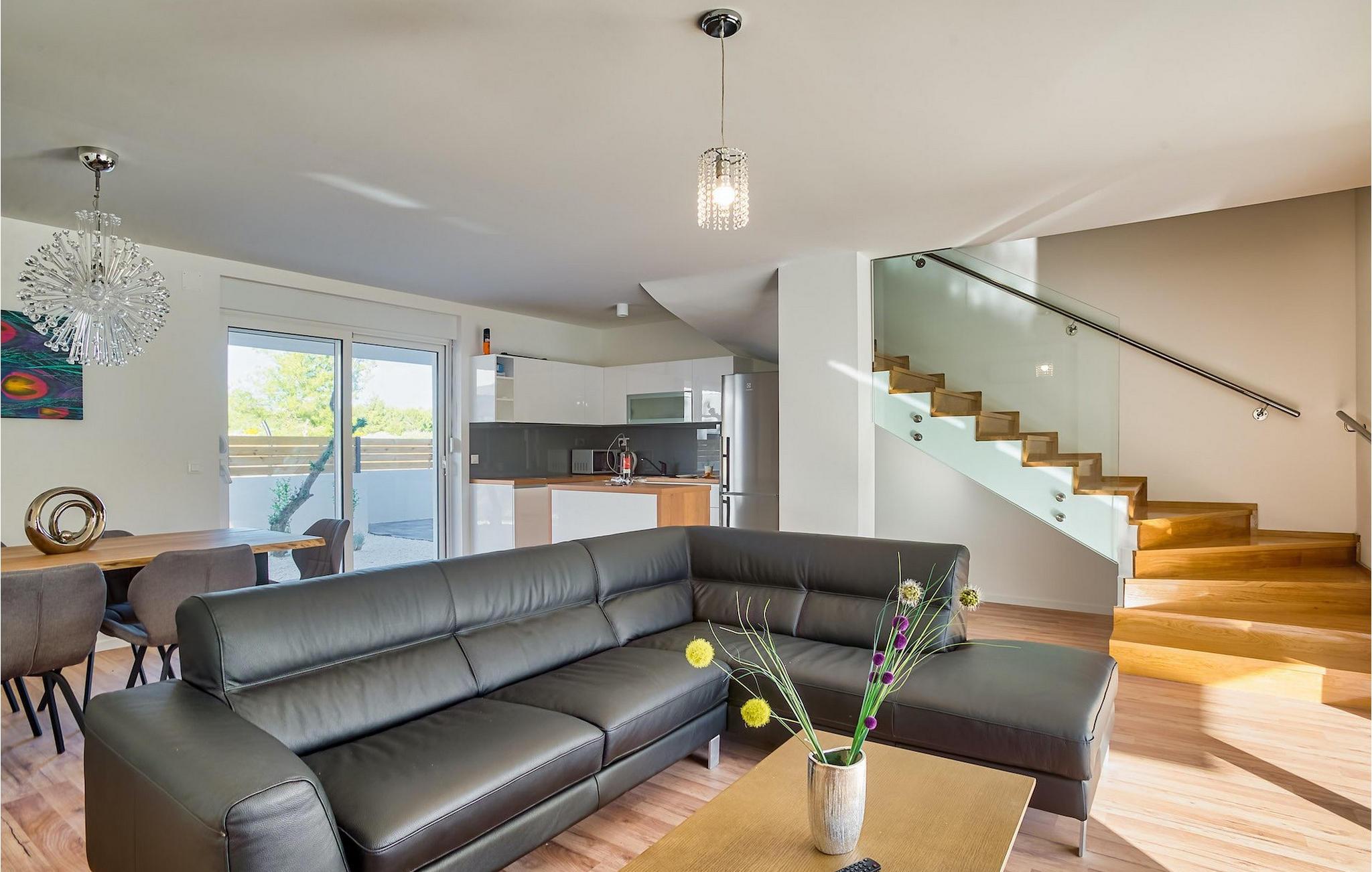 Die moderne Villa Vlahov II ist mit ihrem stilvollen, lichtdurchflutetem Interieur ein wahrer Genuss für die Augen. Die Villa ist nur 200 m vom ersten Strand entfernt und bietet Platz für bis zu sechs Personen. Ein komfortables Schlafzimmer mit direktem Zugang zum Pool befindet sich im Erdgeschoss sowie ein Badezimmer und ein geräumiger offener Wohn- / Essbereich mit völlig ausgestatteter Küche und farbenreichen Kunstwerken. Der Wohnbereich bietet enenfalls direkten Zugang zum Außenbereich, mit dem privaten Pool als Highlight. Der Lounge Bereich lädt zum Entspannen und einem kühlen Getränk ein, während die Sonnenliegen gut zum Aufnehmen von Vitamin D geeignet sind.