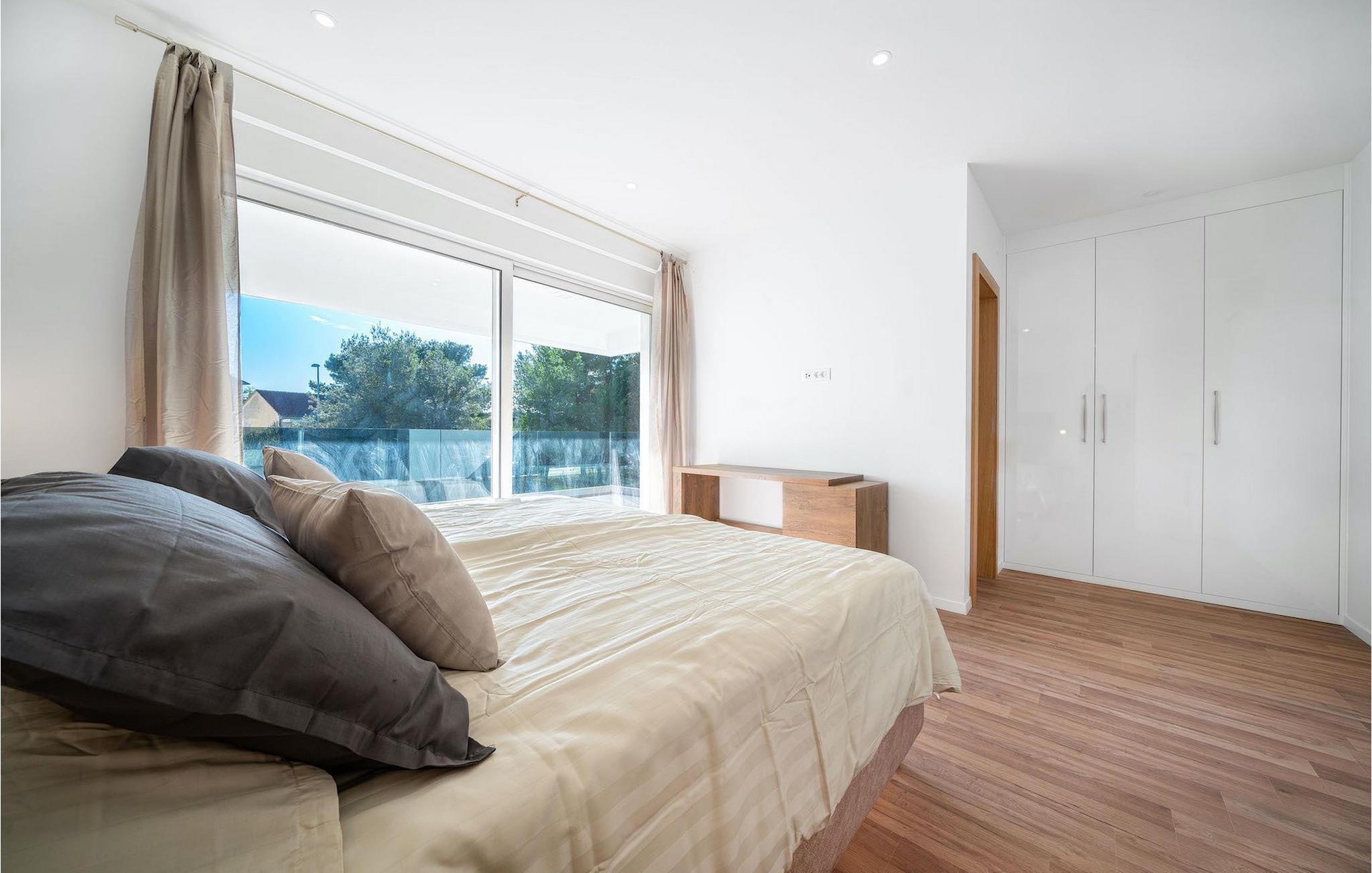 Die beiden anderen geräumigen Schlafzimmer mit eigenem Bad und Balkon befinden sich auf dem ersten Stock. Die Balkone bieten eine gute Gelegenheit, die Aussicht auf die Umgebung und den Pool Bereich zu genießen.