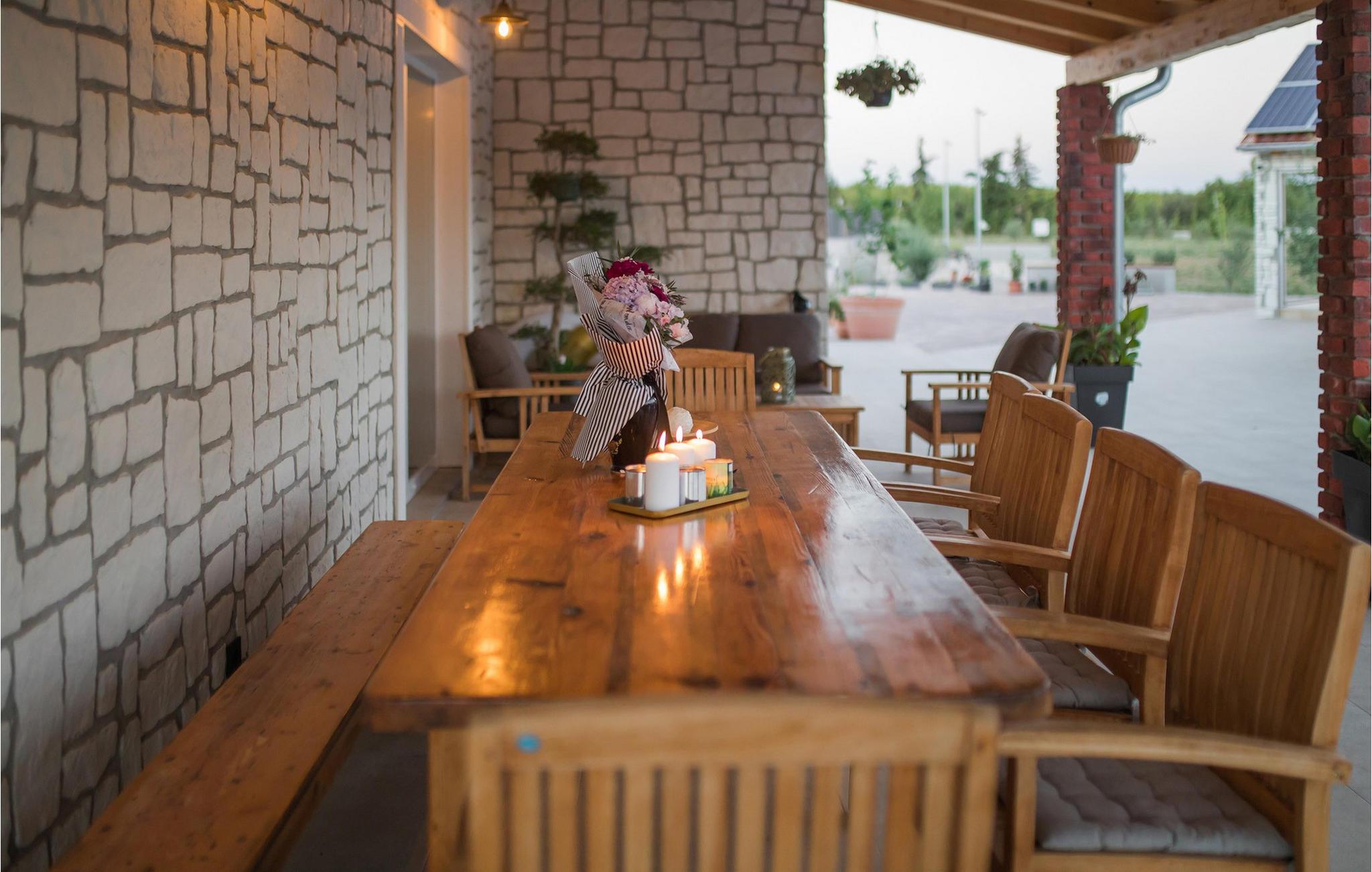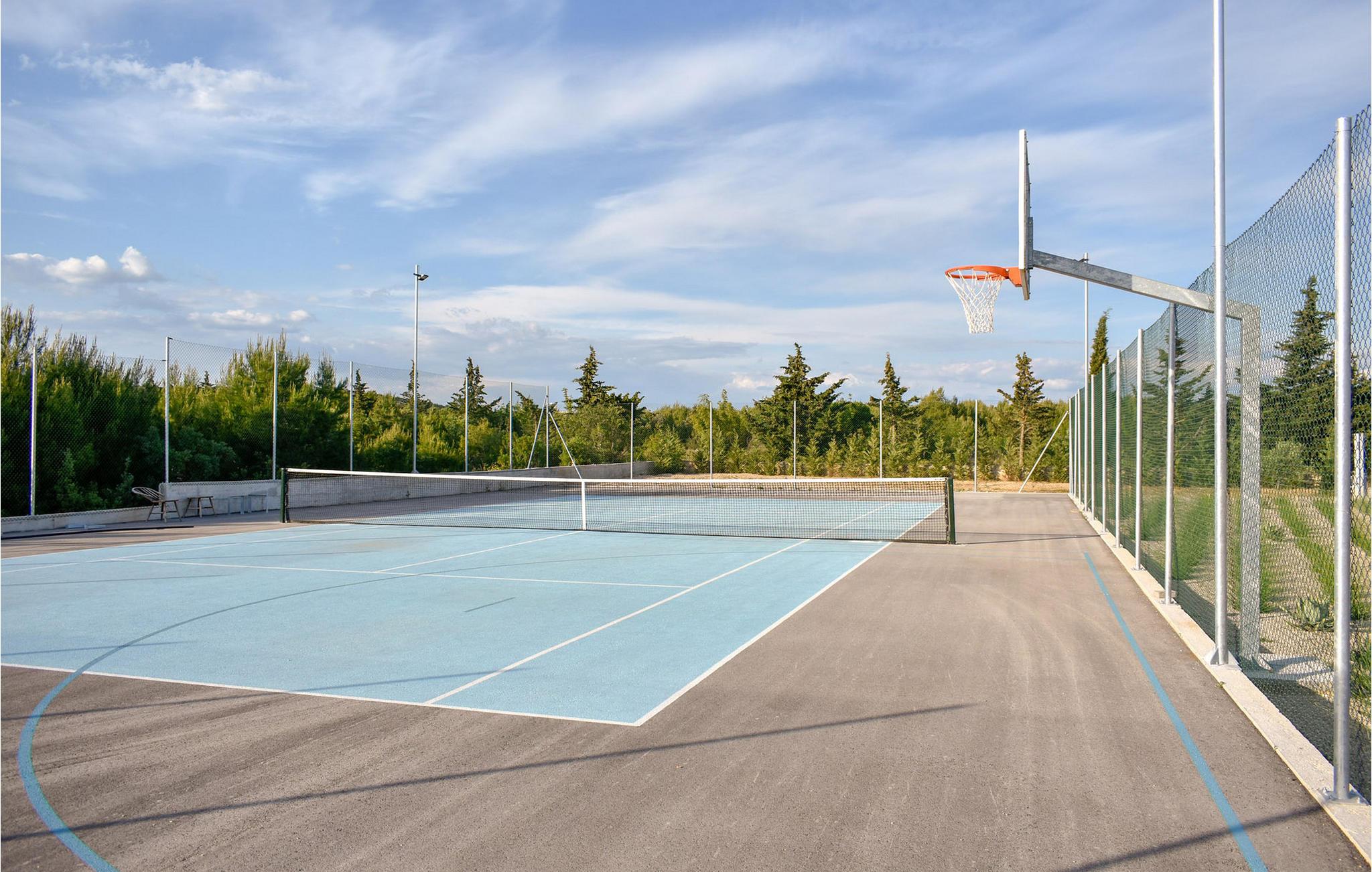 Begynd dagene udendørs med en afslappet svømmetur i poolen. Nyd den smukke og afslappede atmosfære. Slap af med en kølig drink på en liggestol, mens børnene morer sig i legehuset eller på trampolinen. Hvis I føler jer aktiv, kan I snuppe et spil tennis.