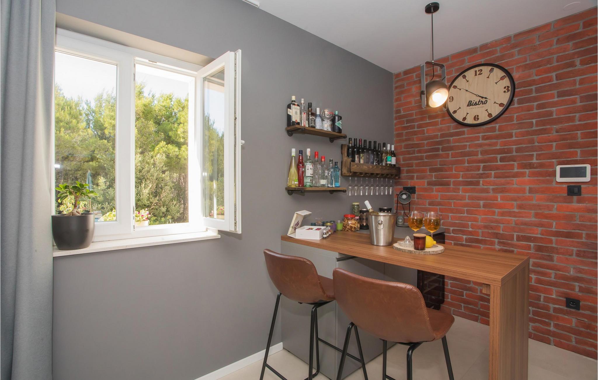 Omgivet af frodig skov byder dette hus jer velkommen med en stilfuld og moderne atmosfære. Lyse værelser, et smukt samspil af træ- og stenelementer og et veludstyret køkken sikrer, at I hurtigt falder i ferietilstand. Læn jer tilbage i den komfortable sofa, mens en ild knitrer i brændeovnen. Spil en runde dart eller se en spændende film, før I tilbringer hyggelige aftener med en flaske vin.