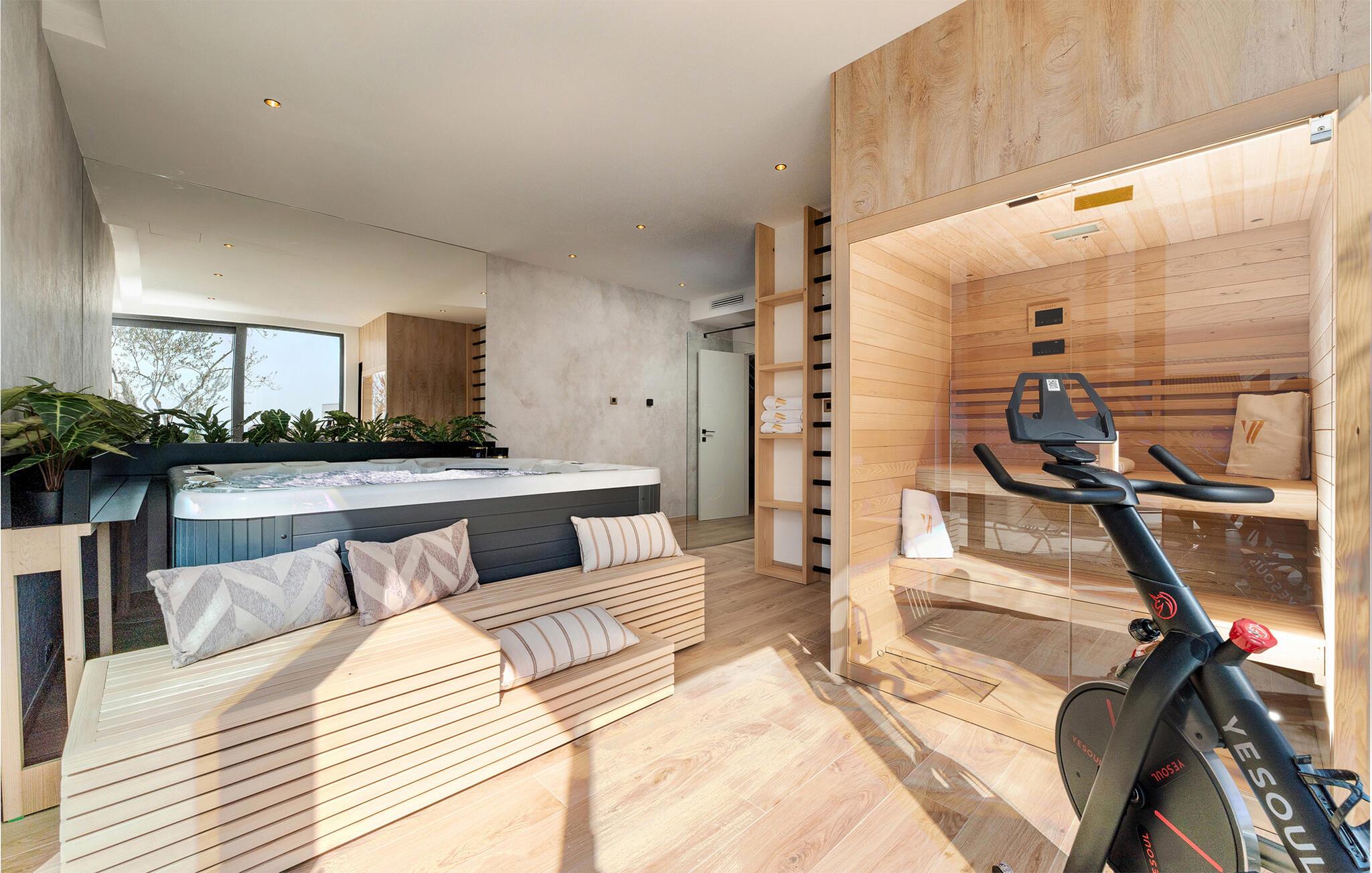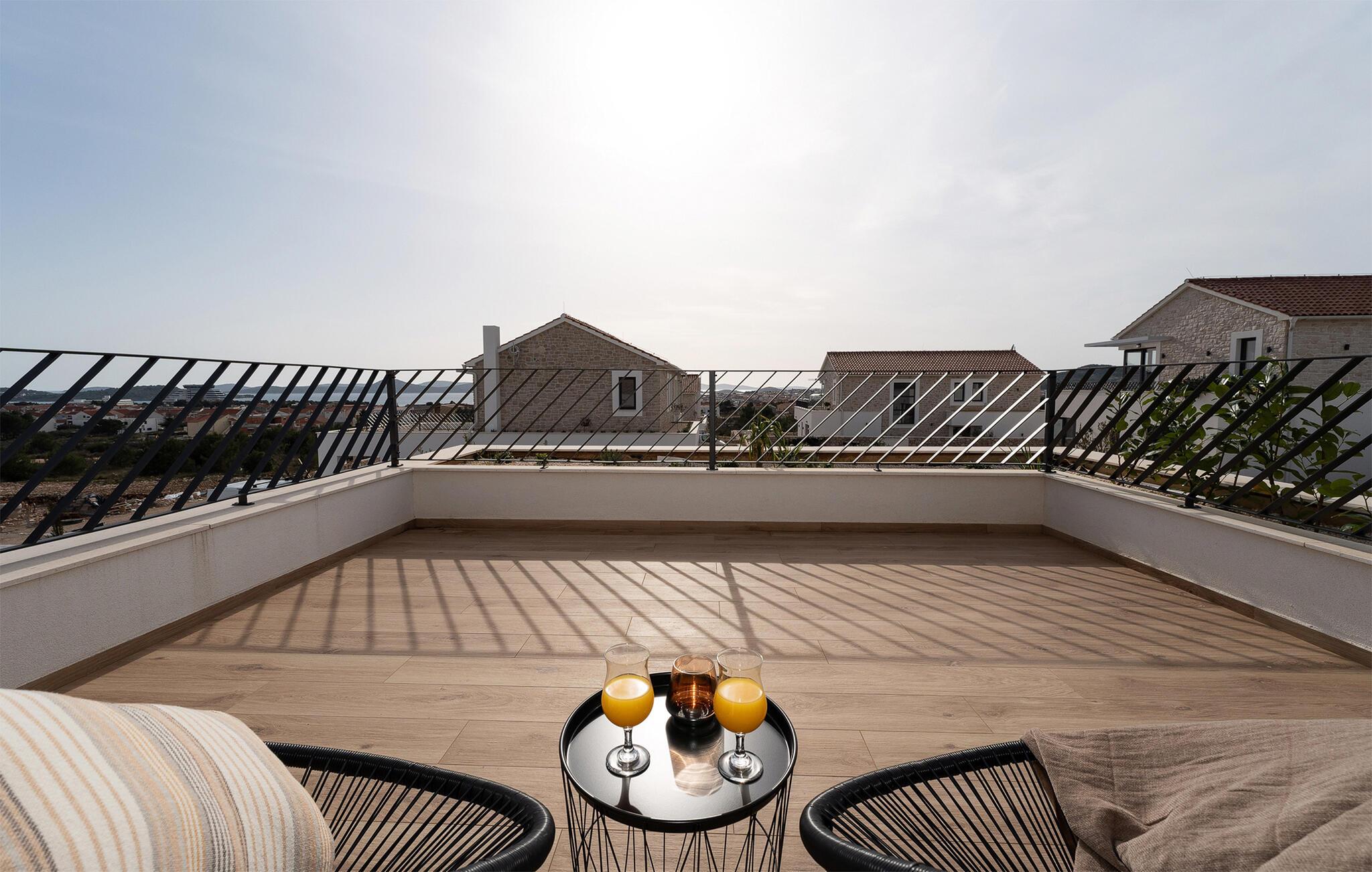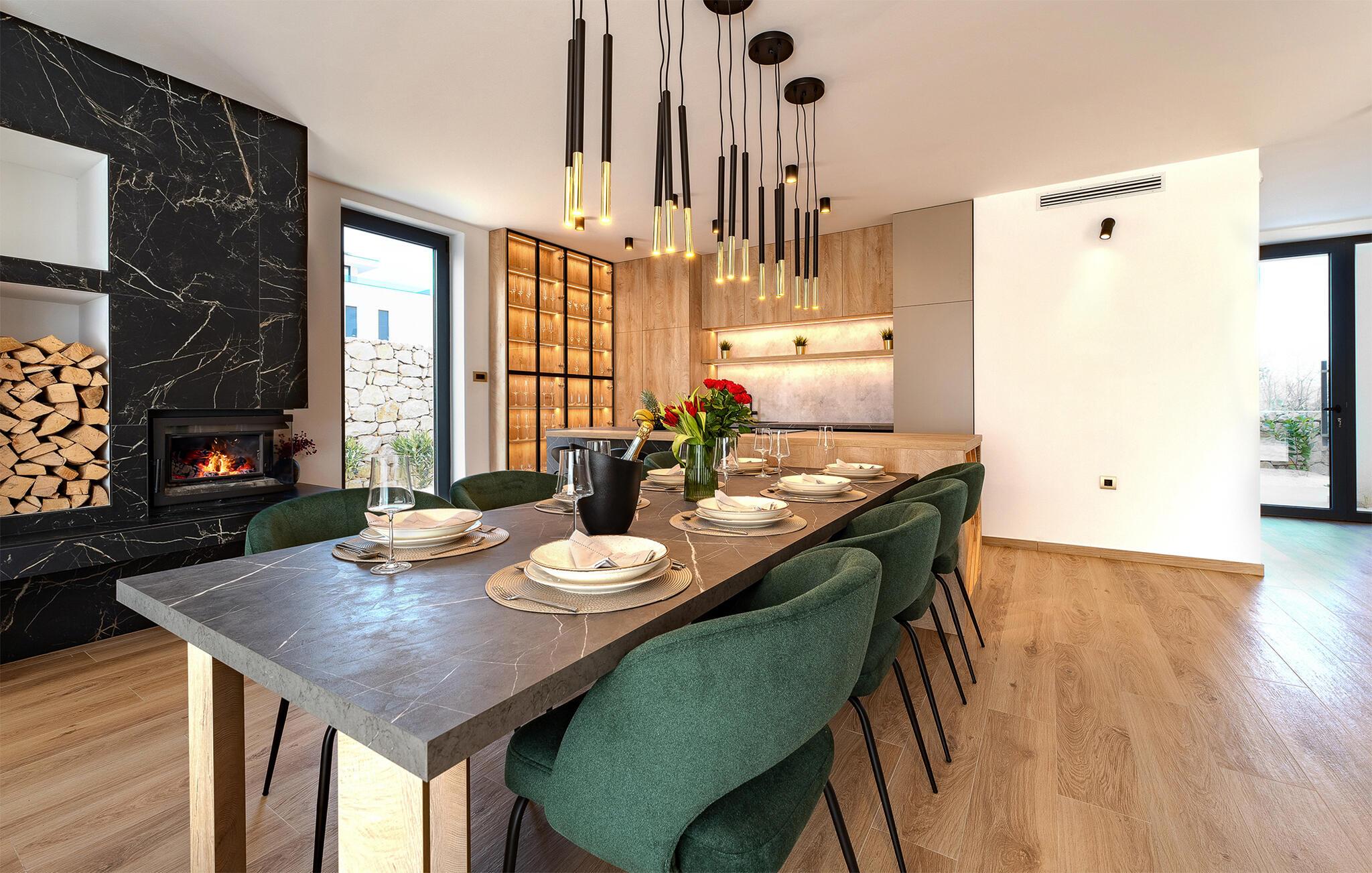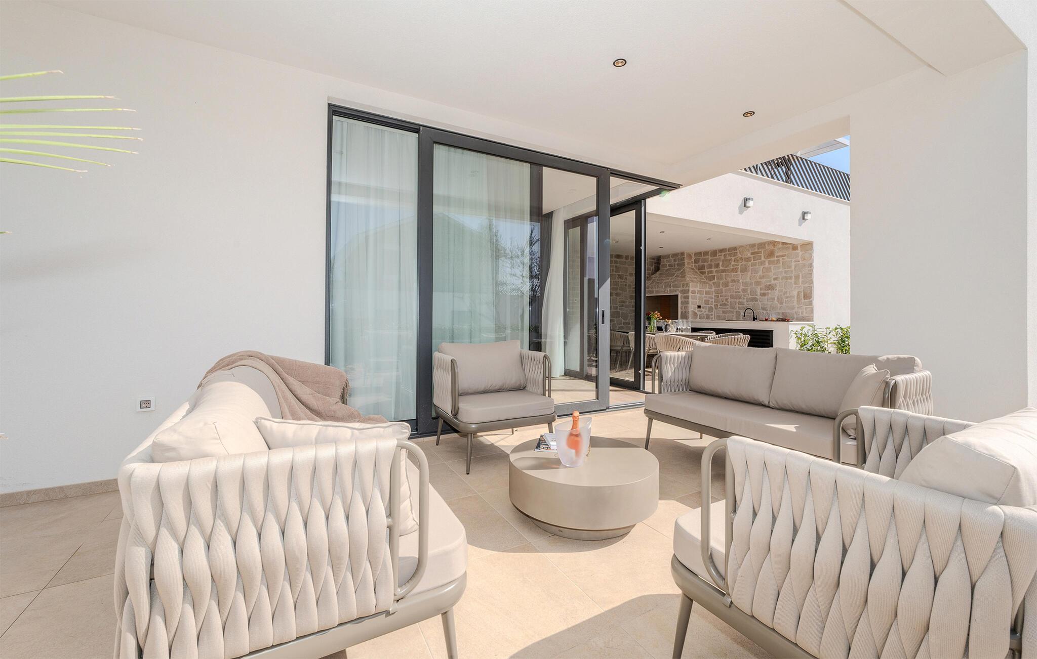 Der er lagt op til en ferie med alt, hvad hjerterne måtte begære, i denne rummelige luksusvilla ved Vodice. Med sine endog rigtig mange kvadratmeter og yderst komfortable er der lagt op til en ferie, hvor ingen kommer til at mangle noget; en ferie, hvor privatlivet kan nydes i soveværelserne med badeværelse en-suite, og hvor I kan nyde mange sociale stunder i de flot indrettede opholdsrum. Interiøret fremtræder virkelig lækkert med sans for detaljen, rene linjer og møbler af højeste kvalitet, så jeres ferie bliver til en både sjov og afslappende leg på tværs af generationerne. Sved igennem i saunaen, sæt jer godt til rette i spabadet eller udfordr hinanden ved bordtennisbordet, inden I sætter jer godt til rette med et glas vin i sofaen.